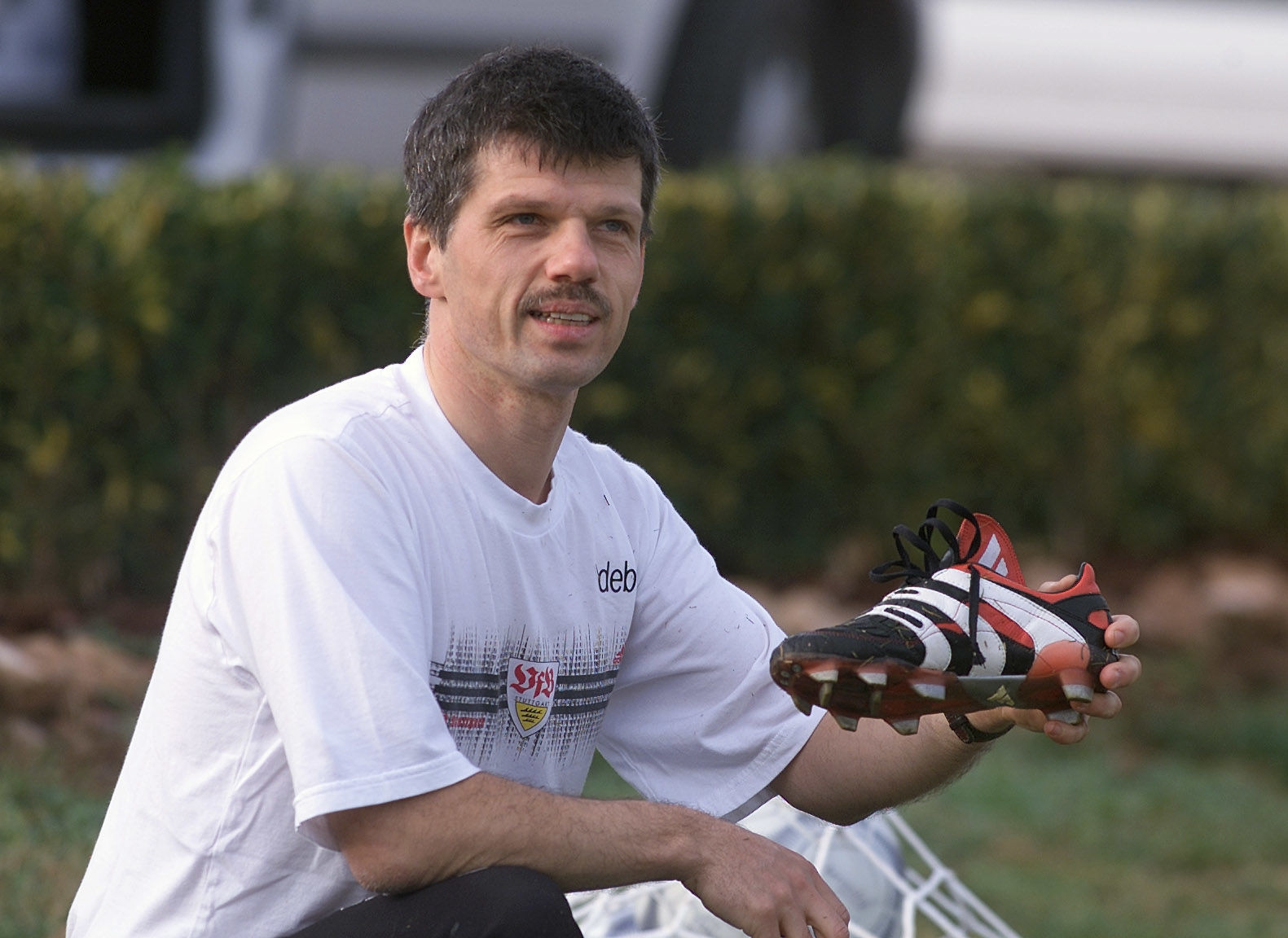 Michael Meusch – beim VfB allseits bekannt als „Meuschi“ – ist in der Regel der Erste am Platz und der Letzte, der ihn wieder verlässt. Als Zeugwart der Mannschaft mit dem roten Brustring sorgt er quasi rund um die Uhr dafür, dass es den VfB-Profis an nichts fehlt. Voller Akribie und Hingabe lässt der Jubilar die Spieler bei jeder Partie und jedem Training – egal ob auswärts oder daheim – tadellos ausgerüstet ihr Tagwerk vollbringen und gilt mit seinem ebenso herzlichen wie freundlichen Wesen auch abseits des Platzes weithin als großer Rückhalt des VfB Stuttgart.