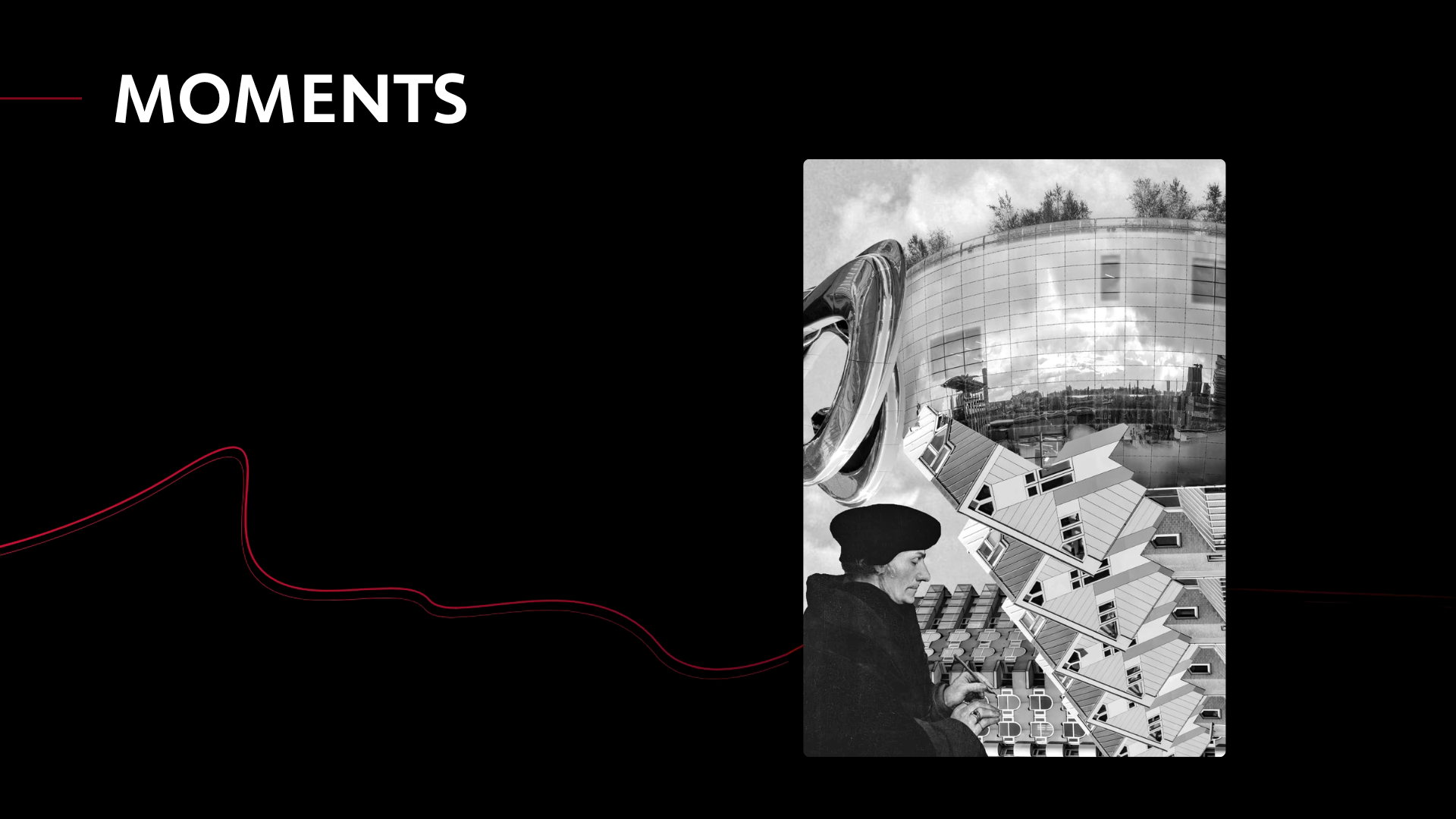 In dieser Graphitzeichnung begegnen sich Epochen in Spiegelungen. Rotterdam als Stadt des Wandels und der Wiederkehr. Erasmus im Kontrast zur pulsierenden Architektur der Gegenwart, welche er symbolisch miterschuf. Zusammen mit dem Kunstmuseum „Depot Boijmans Van Beuningen“ und dem „Museum für Migration Fenix“ wird nicht nur das Stadtbild, sondern auch die Identität aus Kunst und Migration widergespiegelt.