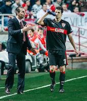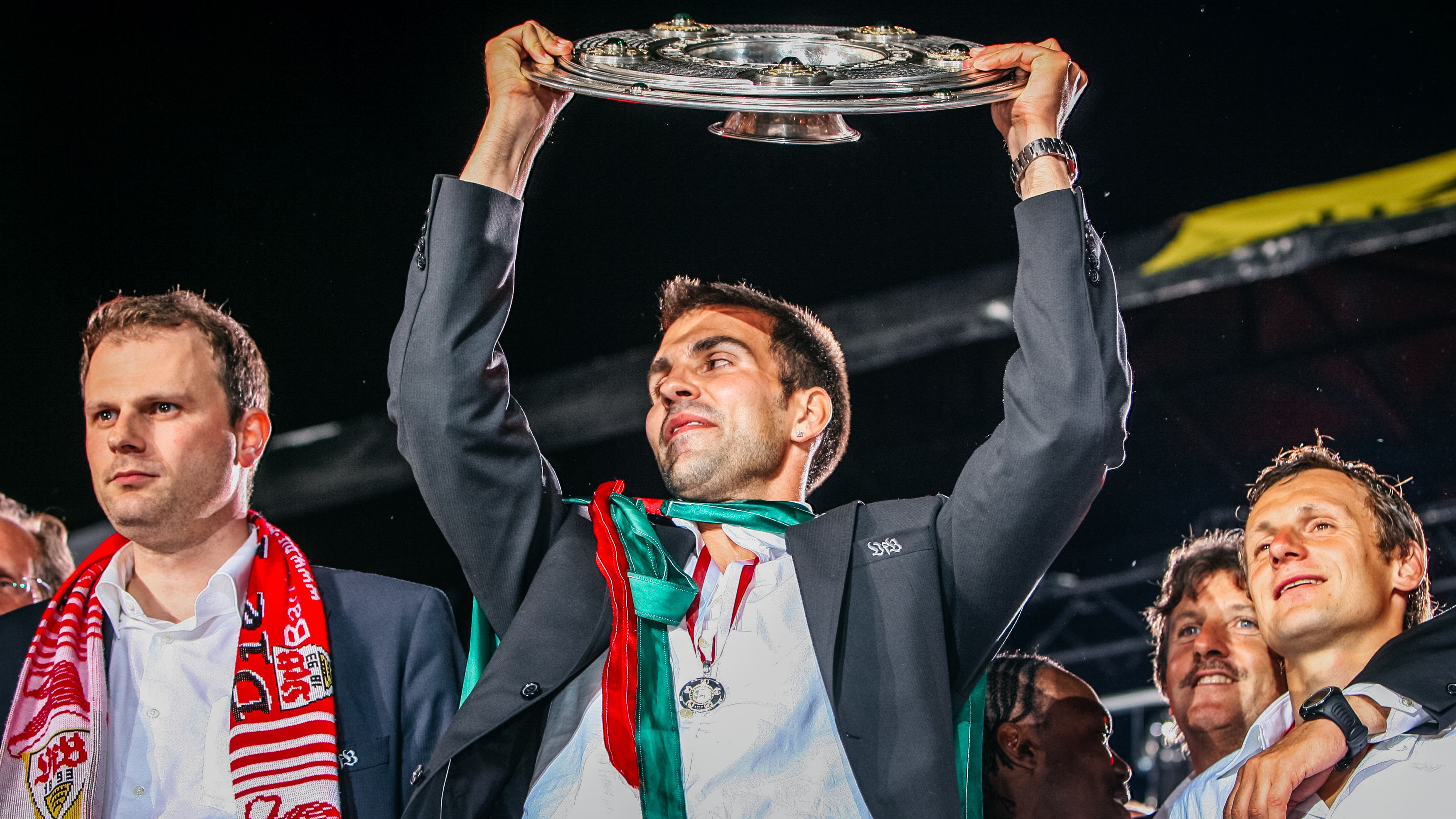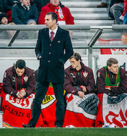 Markus Babbel: „Es war zumindest ganz anders. Die Meisterschaft war phänomenal, weil es nicht alle fünf Jahre passiert, dass der VfB Meister wird. Als Armin Veh damals zurücktrat, war das erst einmal ein großer Schock für mich, auch weil wir ein sehr gutes Verhältnis zueinander hatten. Als ich dann interimsweise bis zum Winter übernehmen sollte, wollte ich ihn erst einmal fragen, ob es für ihn in Ordnung ist. Ich habe ihn damals nicht erreichen können, aber von Horst Heldt erfahren, dass Armin selbst mich vorgeschlagen hatte. Mit Rainer Widmayer als Co-Trainer ist uns dann sowohl fachlich als auch menschlich ein absoluter Glücksgriff gelungen. Anschließend hat sich eine unaufhaltsame Dynamik entwickelt und es waren einige emotionale Höhepunkte dabei. Dass wir es geschafft haben, die Mannschaft vom elften auf den dritten Platz zu führen, war großartig. Aber es war ein anderes Gefühl als das bei der Meisterschaft als Spieler, weil du komplett in der Verantwortung und unter einem andauernden Druck stehst.“