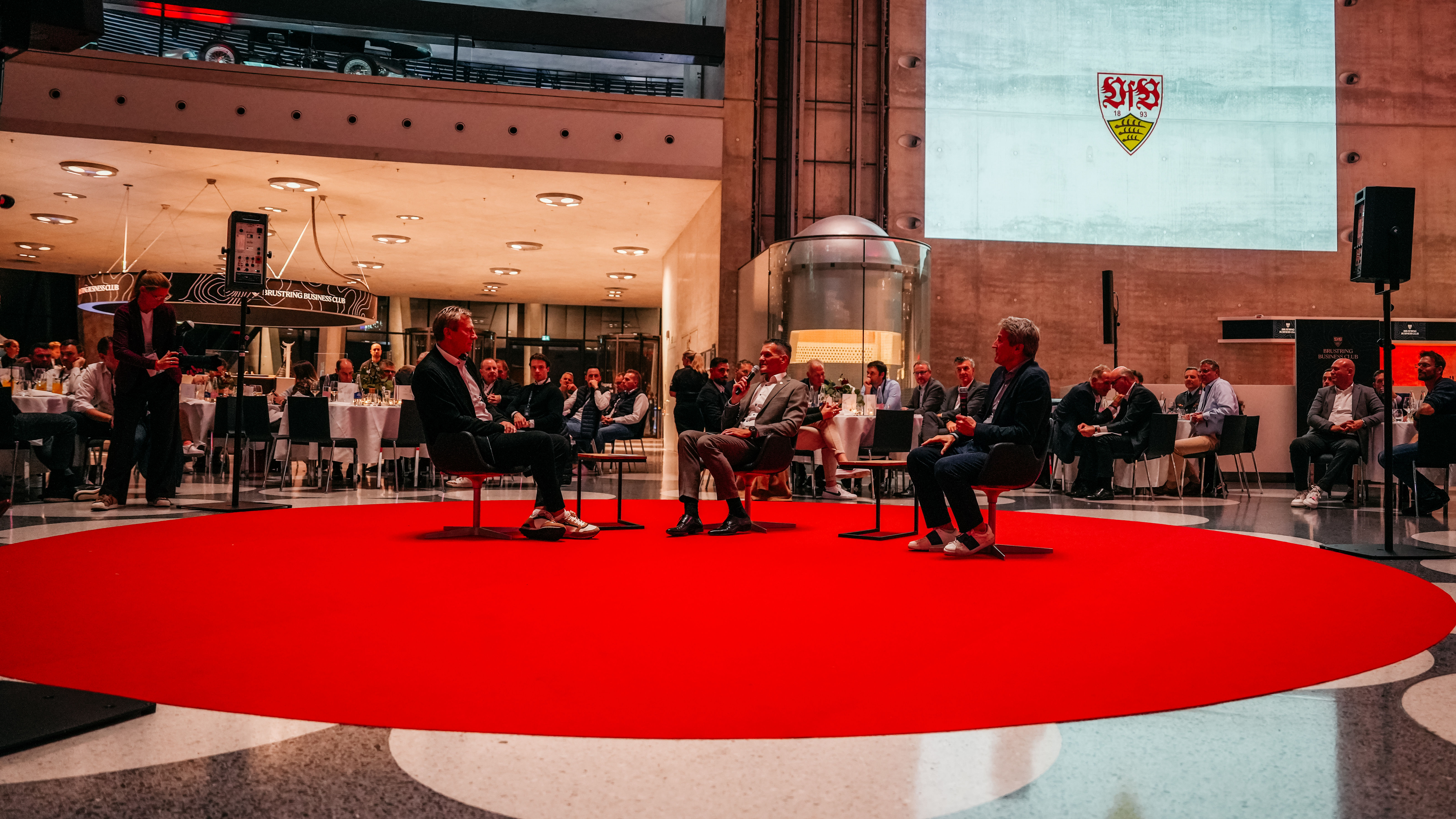 Der VfB-Vorstandsvorsitzende Alexander Wehrle läutete den Abend in einem Talk gemeinsam mit Marcus Breitschwerdt, Vorsitzender der Geschäftsführung der Mercedes-Benz Heritage GmbH, sowie Jan Kleibrink, dem Chief Growth Officer der Handelsblatt Media Group, ein – moderiert von Jens Zimmermann. Anschließend tauschten sich die Gäste beim Gang durch die sieben Ebenen des Mercedes-Benz Museums aus. Durch das innovative Konzept des Abends, das den fließenden Übergang zwischen Networking, Food, Drinks und Unterhaltung ermöglichte, entstanden auf allen Etagen intensive Gespräche und neue Kontakte.