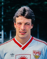 Der in Kehl geborene und zunächst beim dortigen FV spielende Jubilar hatte im Dress des Karlsruher SC die halbe Bundesliga auf sich aufmerksam gemacht, ehe er zur Spielzeit 1987/1988 im Alter von 21 Jahren zum VfB Stuttgart in die Landeshauptstadt wechselte.