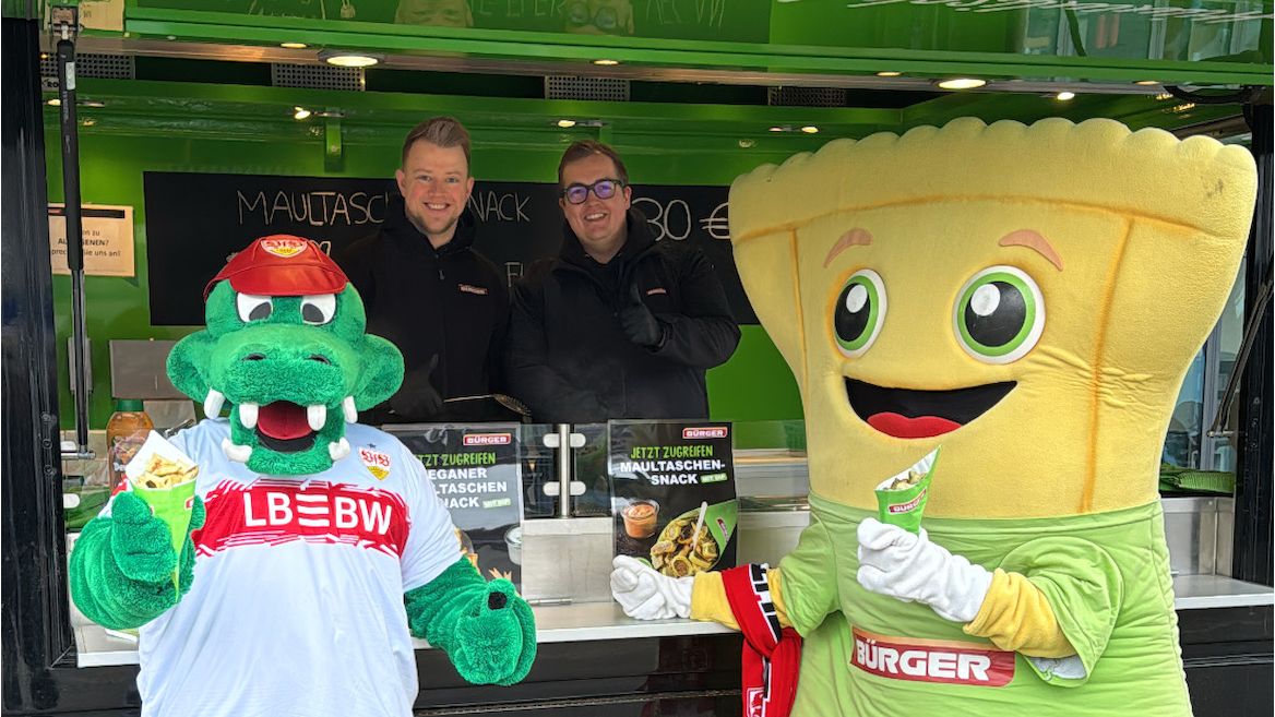 Rund um das Bundesliga-Heimspiel des VfB gegen den 1. FC Köln am 14.02. erscheint ein kleines Video, das zeigt, wie die BÜRGER Maultaschen ihren Weg in die MHP Arena finden – vom Zuhause der Marke bis an die Ausgabetheke. Bei der Gelegenheit haben sich die beiden natürlich auch persönlich getroffen: am BÜRGER-Mobil, mit einem kurzen Plausch – und einer spontanen Einladung von Erwin zum Probieren.