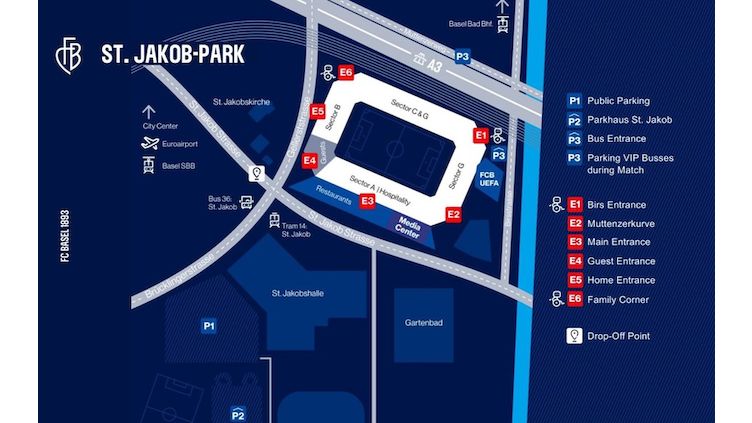 Alle Infos zur Anfahrt und zum Zutritt ins Stadion findet ihr außerdem in den Besucherinfos des FC Basel.