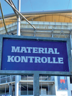 Für alle mitgebrachten Materialien ist der rechte Eingang vorgesehen. Die Materialkontrolle dürfen bis zu fünf Personen begleiten. Nicht erlaubt sind Sticker/Aufkleber und Stockschirme.
