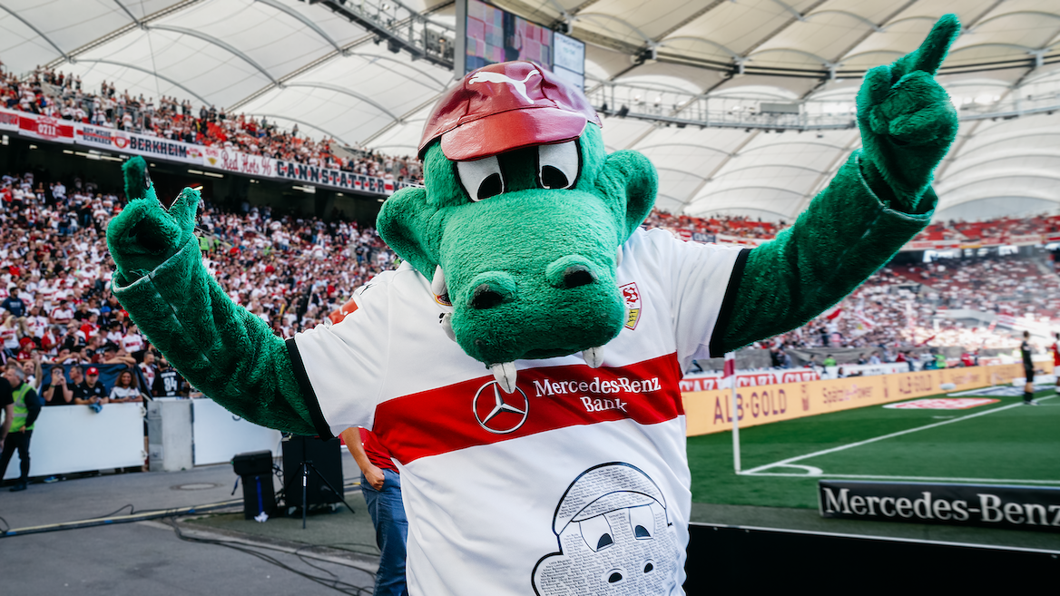 Eigentlich mögen es Krokodile heiß, sonnig und feucht. Die tropischen Regionen der Erde passen daher sehr gut zu ihnen. Denn die wechselwarmen Reptilien bevorzugen Temperaturen zwischen 25 und 32 Grad Celsius. Der 23. September 2017 in Stuttgart erreichte diese Temperaturmarke nicht ganz, kam aber zumindest nahe heran. Im „wilden Süden“ meldeten die Wetterbehörden in der Spitze bis zu 22 Grad Celsius, dazu reichlich Sonne. Ein (Spiel-)Tag wie nahezu gemacht für Krokodil „Fritzle“ – das VfB-Maskottchen rückte in den Mittelpunkt bzw. auf die Fußballtrikots.