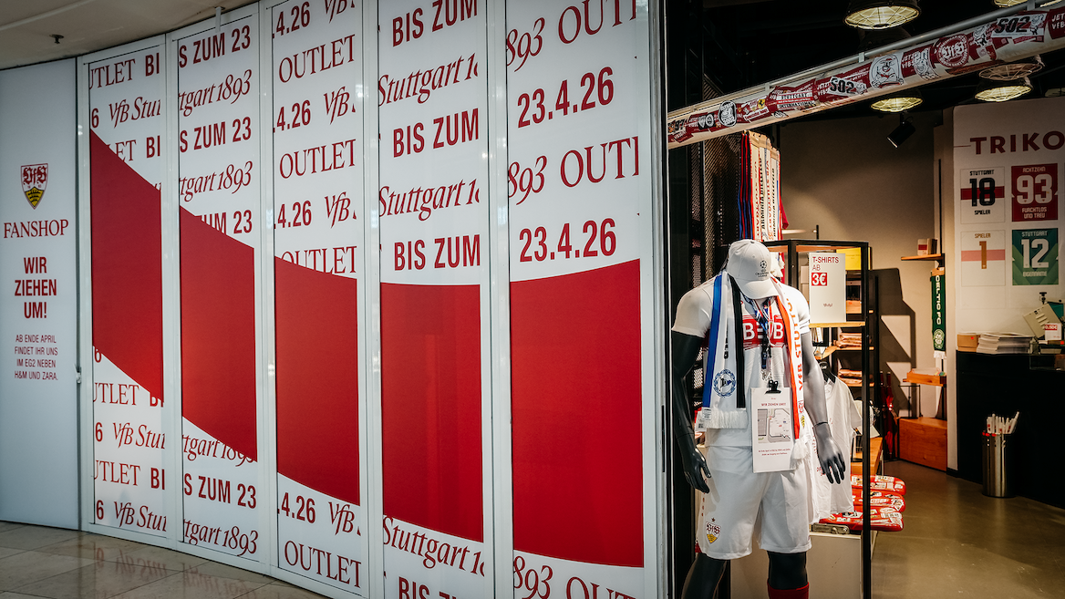 Seit 2020 ist der VfB Stuttgart mit einem Fanshop im BreuningerLAND Ludwigsburg vertreten. Auf rund 86 Quadratmetern konnten sich Besucher bislang mit allem ausstatten, was das weiß-rote Herz begehrt. Ursprünglich als Pop-Up-Store geplant, etablierte sich das Angebot ob des großen Zuspruchs schnell als feste Anlaufstelle im Ludwigsburger Einkaufszentrum. Aufgrund der großen Nachfrage und des stetig wachsenden Angebotsspektrums folgt nun der nächste Schritt: Ab Ende April 2026 ist der VfB Fanshop in der Ebene EG2 des BreuningerLAND auf einer deutlich größeren Fläche und in noch attraktiverer Lage zu finden.