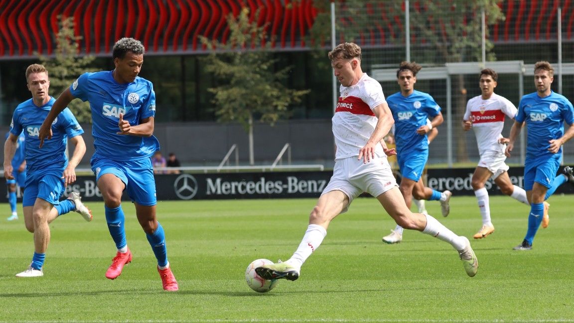 Die U17 setzt ihre Erfolgsserie in der B-Junioren-Bundesliga Süd/Südwest weiter fort. Am Freitag gewann das Team von Trainer Jan Kirchhoff beim Tabellenletzten TSV 1860 München klar mit 5:0. Matthaios Tsigkas (12.) und Tuncay Durna (14.) brachten den überlegenen VfB früh auf die Siegerstraße, Salvatore Mule legte kurz vor der Pause mit einem schönen Fernschuss das 3:0 nach (42.). In der zweiten Hälfte ließen beide Mannschaften gute Chancen liegen, ehe Matthaios Tsigkas in Minute 76 mit seinem sechsten Saisontreffer das 4:0 erzielte. Der eingewechselte Maksim Klickovic setzte mit dem 5:0 in Minute 88 den Schlusspunkt. Somit steht der VfB in der Tabelle weiterhin an der Spitze, einen Punkt dahinter folgen der 1. FC Nürnberg und Eintracht Frankfurt. Nach der Länderspielpause geht es am Sonntag, den 17. September, um 13 Uhr zuhause gegen den 1. FSV Mainz 05 weiter.