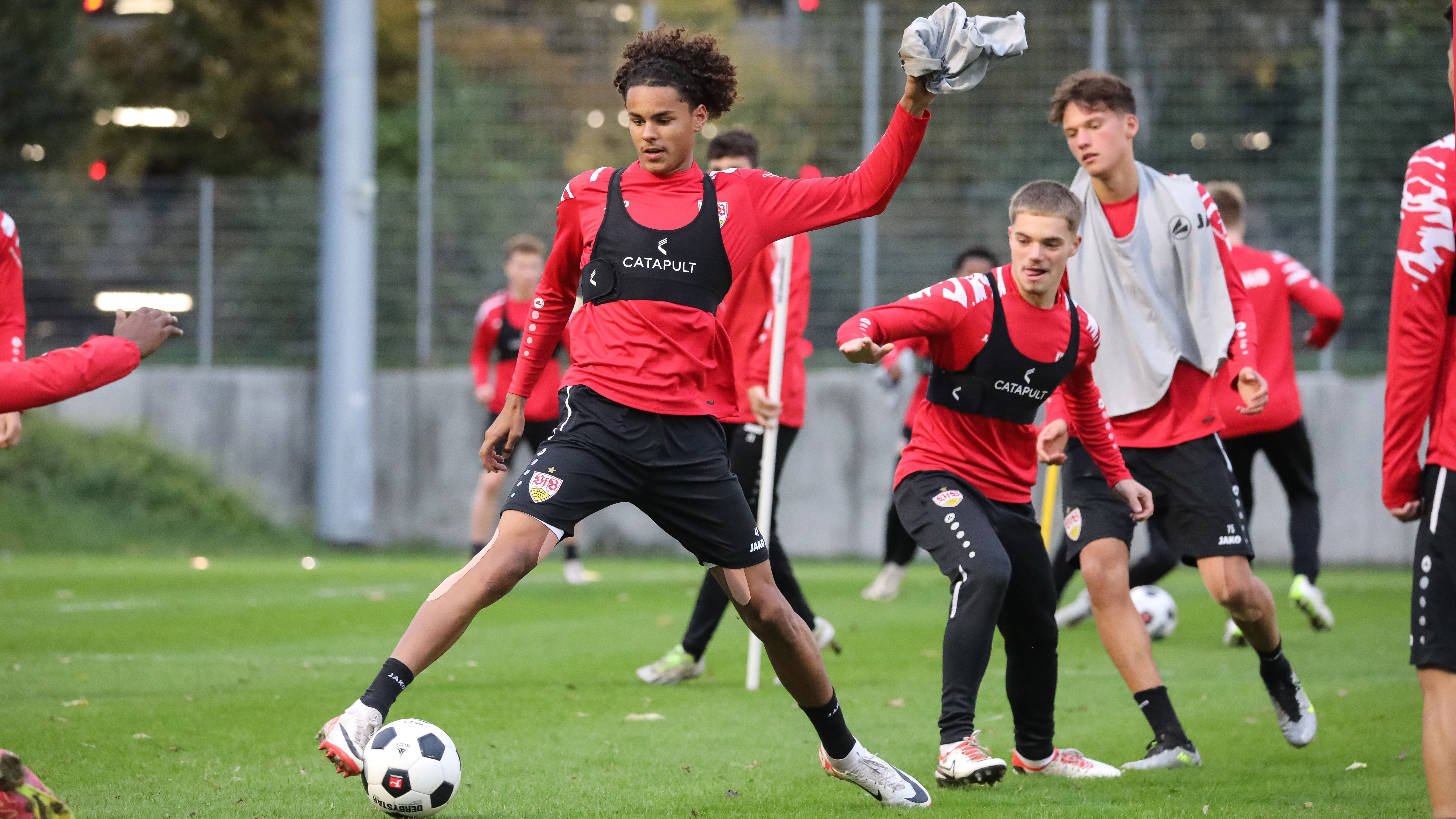 Die Hinrunde in der B-Junioren-Bundesliga Süd/Südwest neigt sich dem Ende entgegen. Auf die VfB-Talente warten mit dem Derby am Samstag (13 Uhr) beim Karlsruher SC sowie mit dem Heimspiel gegen den aktuellen Tabellenvierten FC Bayern München am 5. November zwei anspruchsvolle Partien. Das Ziel für Samstag ist klar: Derbysieg, ungeschlagen bleiben und die Tabellenführung festigen. Dies wird gegen den KSC nicht einfach, schließlich weist der Tabellensechste mit nur 13 Gegentoren eine stabile Hintermannschaft auf. Dafür ist der VfB in der Offensive mit 42 erzielten Toren im Vergleich zu den 15 Karlsruher Treffern klar im Vorteil. „Das ist eine gut organisierte Mannschaft, die wenig zulässt. Es ist sehr schwer, gegen Karlsruhe Tore zu schießen“, analysiert Trainer Jan Kirchhoff. „Wir sind gerade aber in einem guten Flow und sind dazu in der Lage, uns Chancen herauszuspielen.“ Bis auf den Langzeitverletzten Tom Santos (Kreuzbandriss) kann Jan Kirchhoff auf den gesamten Kader zurückgreifen.