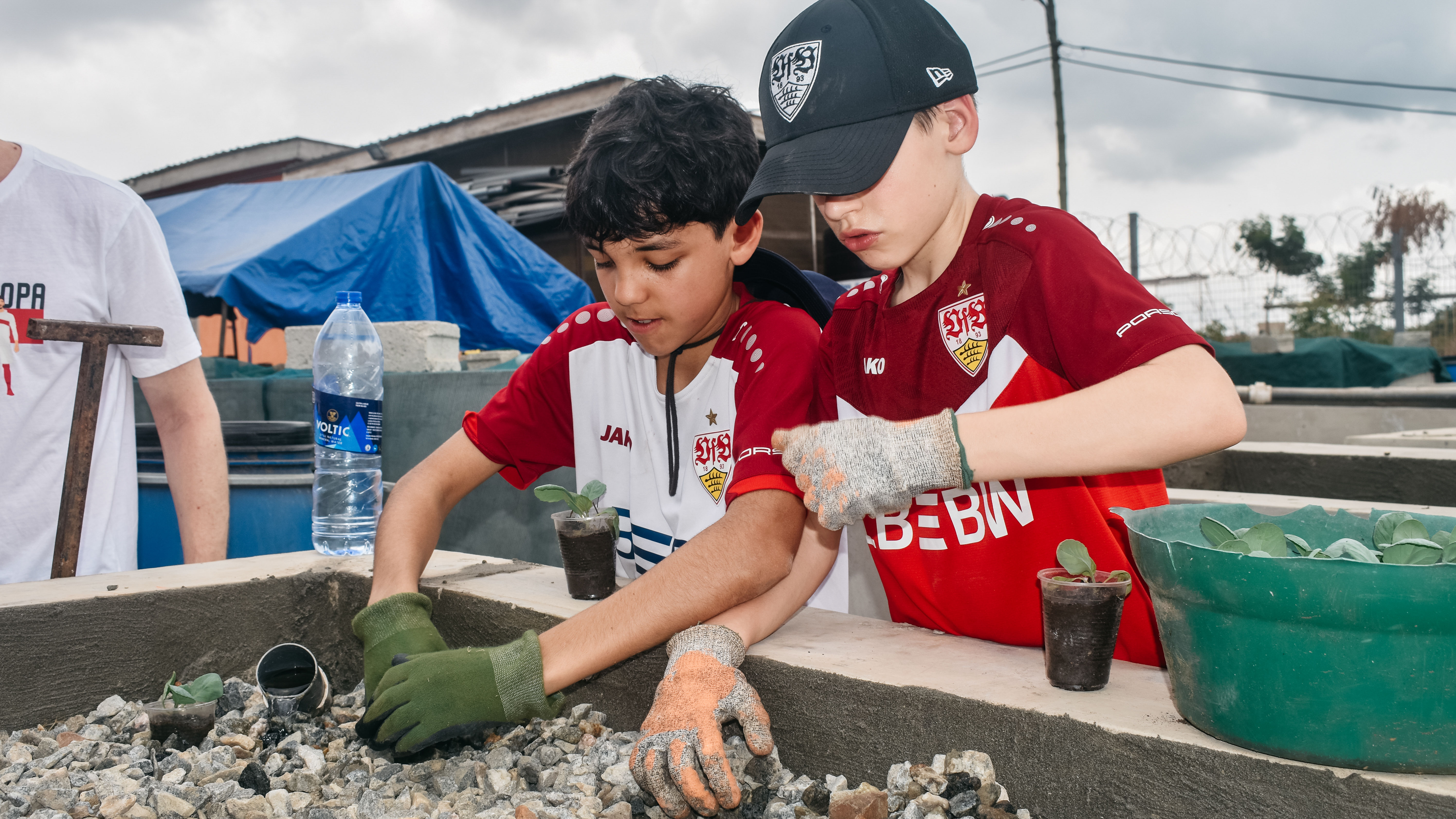 Die zentrale Aufgabe während der neun Tage in Kokrobite war es, an der Weiterentwicklung des „Kokrobite Chiltern Center“, einem Lernzentrum für Kinder, zu arbeiten. Hierfür füllten die Kinder Sand in Plastikflaschen, um damit sogenannte „Aquaponic Tanks“ zu bauen. Diese großen Wasserbecken dienen beispielsweise der Reinigung von Wasser, zum Anbau von Gemüse oder zur Fischzucht und tragen zur Selbstversorgung der Menschen in Kokrobite bei. Zudem standen Schulbesuche, kulturelle Aktivitäten und der Besuch des Cape Coast Castle auf dem Programm. In diesem ausgedienten Küstenfort lernten die Jungs viel über Sklaverei in Afrika. Auch der Fußball kam nicht zu kurz: In einem Turnier duellierten sich die Jungs aus Cannstatt mit dem örtlichen Verein Little Rock FC sowie einer regionalen Auswahl. Zudem besuchte Ghanas Nationaltrainer Otto Addo die Gruppe und stand bei einer Fragerunde Rede und Antwort.