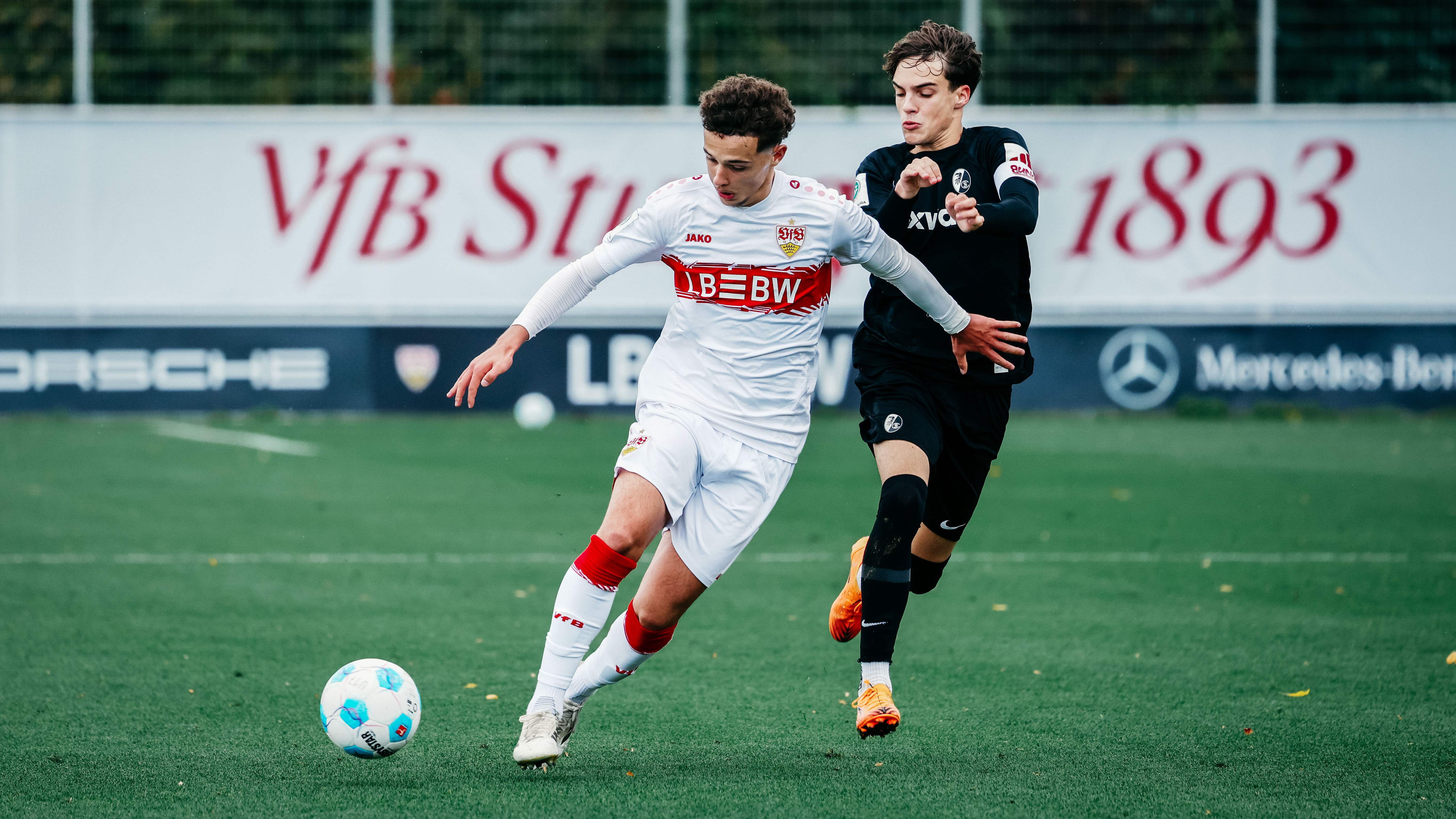 Im Duell mit den Breisgauern begann der VfB druckvoll und hatte in der achten Minute durch einen Freistoß von Tom Brenner die erste gute Möglichkeit, der Ball ging allerdings knapp drüber. Auch danach hatte das Team von Trainer Daniel Jungwirth mehr vom Spiel und belohnte sich in Minute 25 mit der verdienten Führung durch Kiril Serdiuk, der den Ball nur noch über die Linie drücken musste. Die Führung hielt allerdings nur vier Minuten lang, da die Gäste durch einen Fernschuss von Tim Plattner (29.) prompt den Ausgleich erzielten. Wiederum nur sechs Minuten später klingelte es wieder im Freiburger Tor, diesmal war es allerdings ein Eigentor nach einer Ecke, das den VfB wieder in Führung brachte.