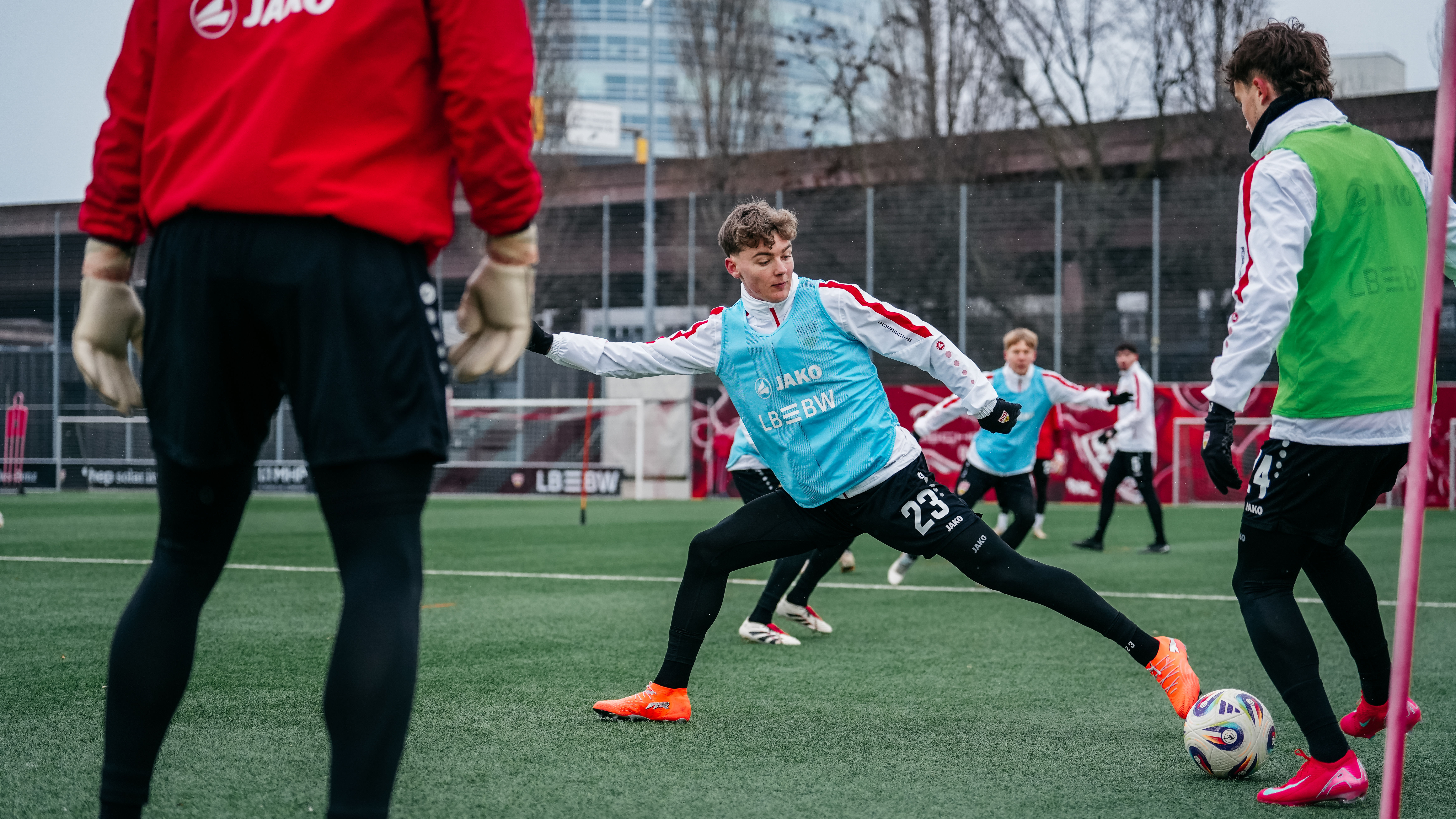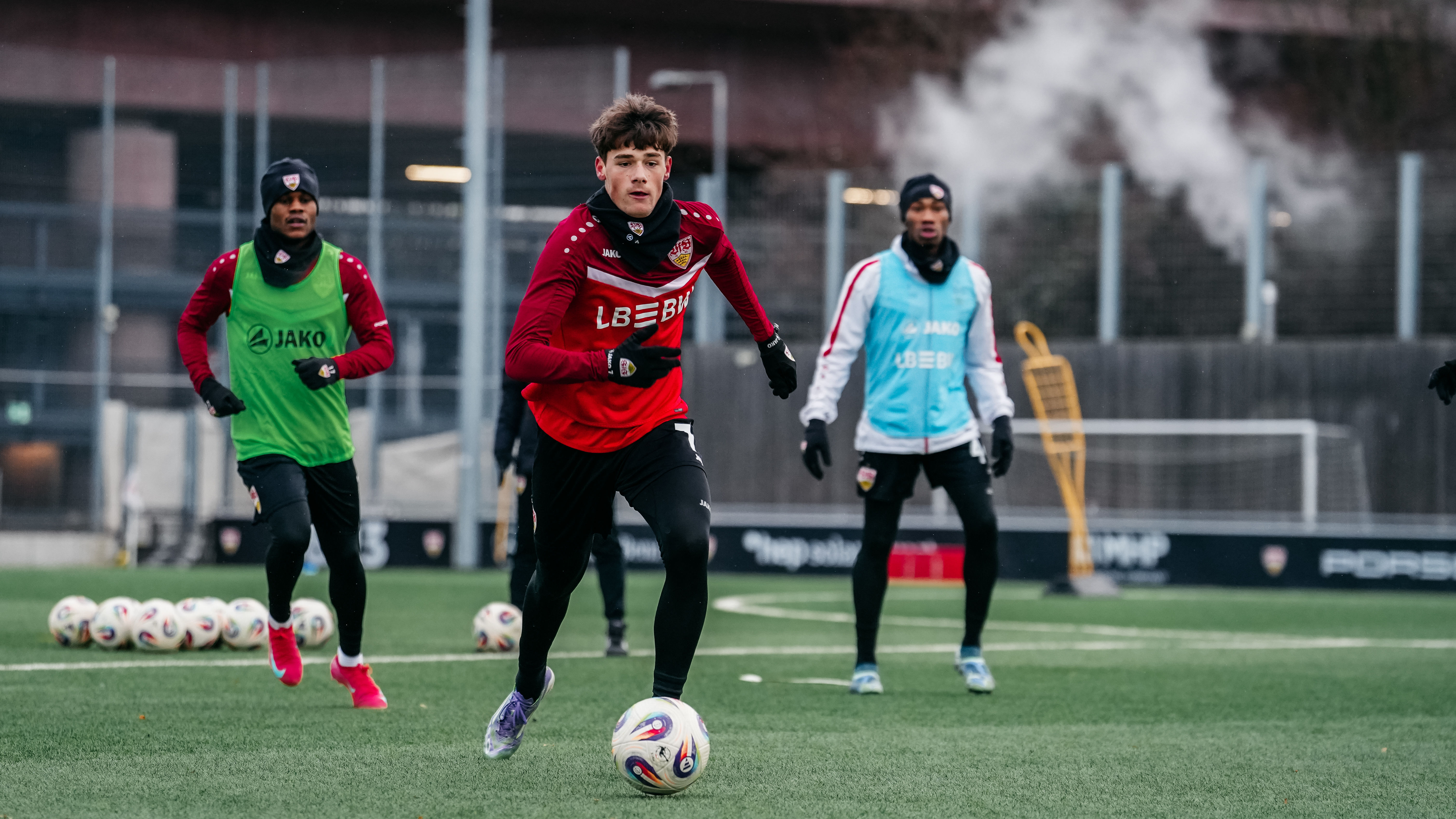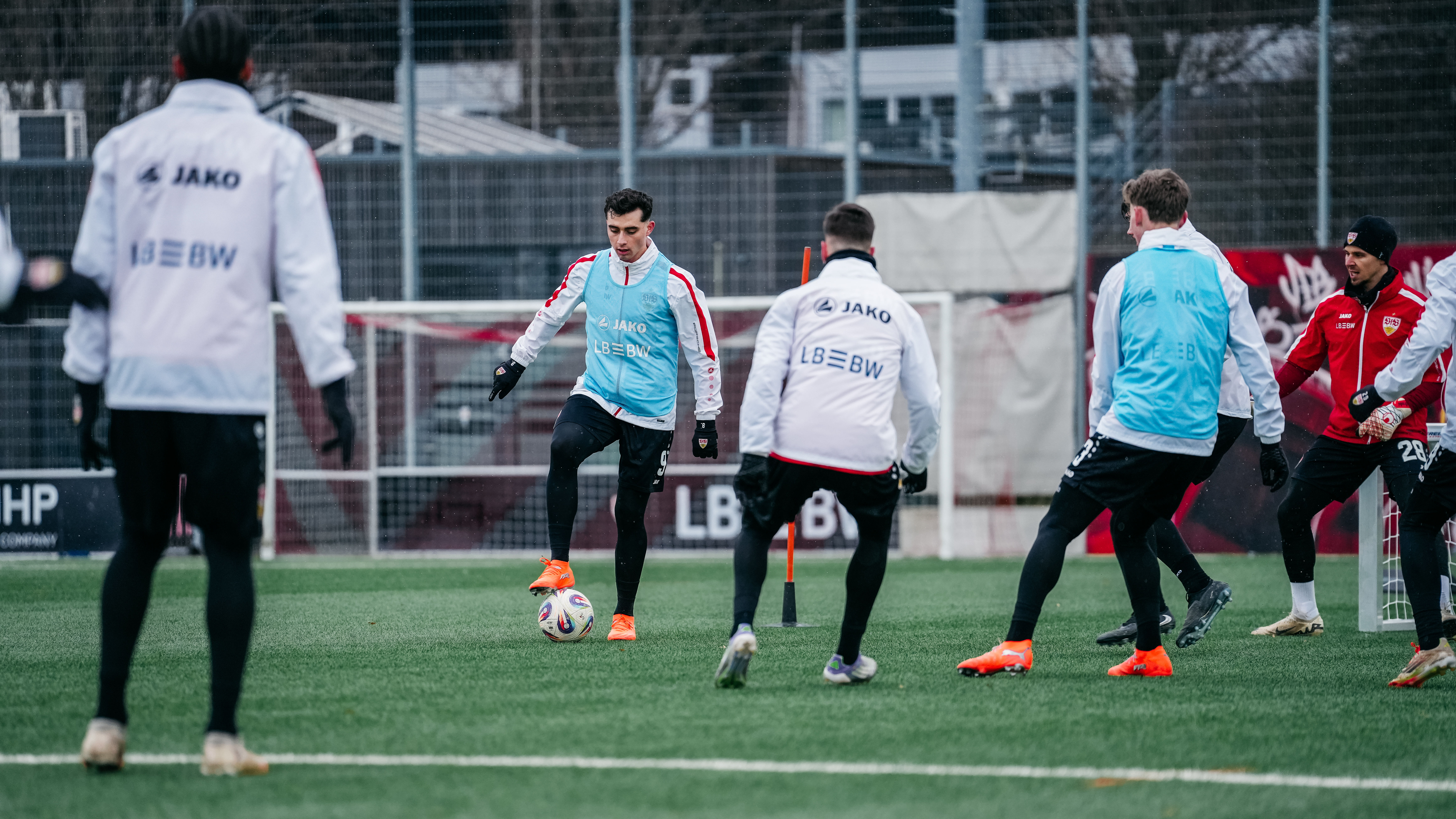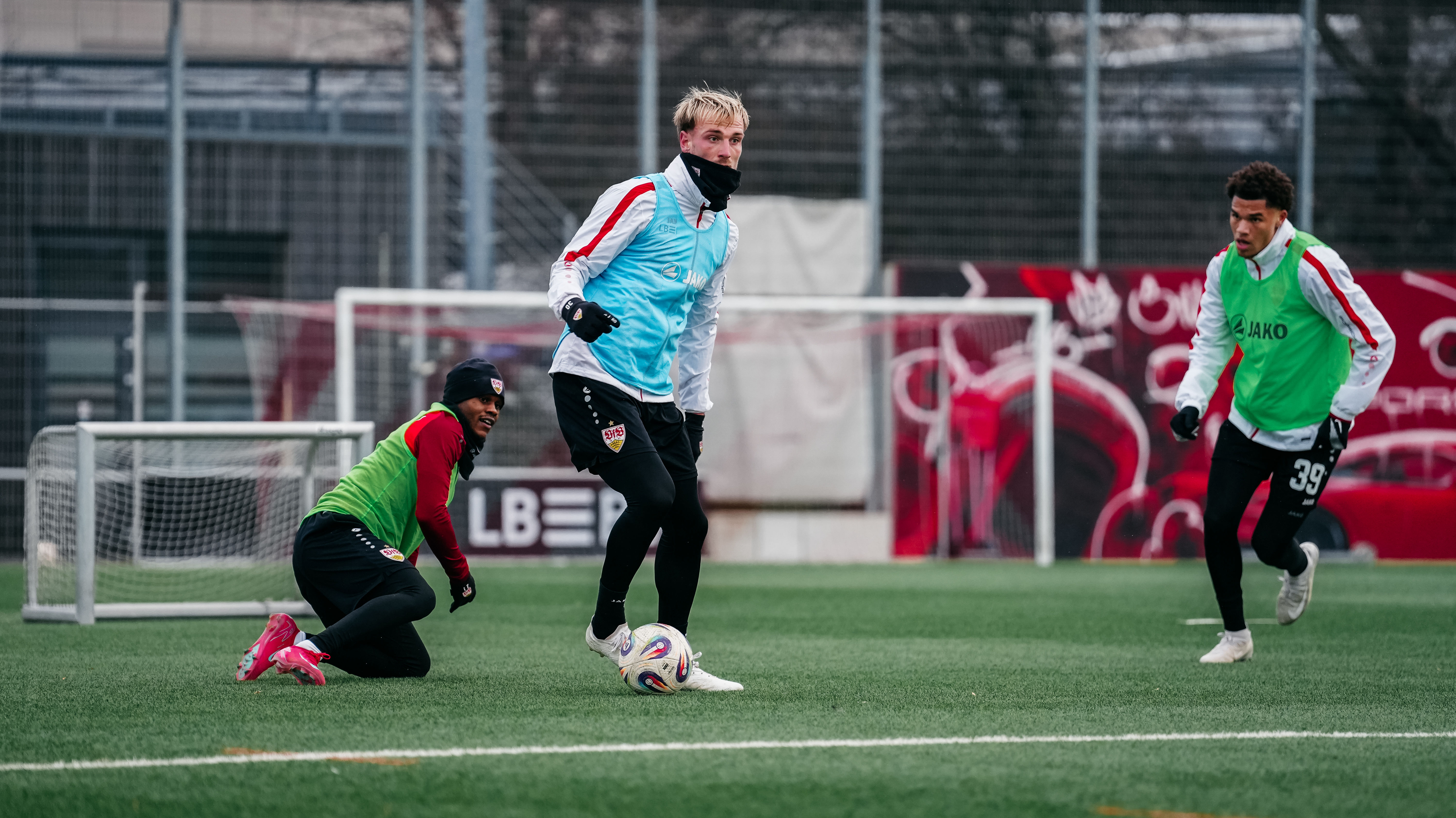 Mit einem nahezu kompletten Kader und guter Laune startete die U21 am Samstagnachmittag in die zweite Saisonhälfte. Mit einer Aktivierung im Kraftraum und einer Trainingseinheit bei frostigen Temperaturen auf dem Kunstrasen des VfB-Clubzentrums machte das Team von Trainer Nico Willig den Aufgalopp. Verstärkt wurde die U21 von den drei U19-Spielern Matthaios Tsigkas, Antonijo Janjic und Robin Dittrich. Bereits am Sonntagmorgen geht es raus aus der Kälte und gen Süden: Bis zum Sonntag, 11. Januar, absolviert der VfB sein Trainingslager im türkischen Manavgat, wo am 10. Januar das einzige Testspiel der Vorbereitung gegen den rumänischen Erstliga-Tabellenführer und UEFA Conference League-Teilnehmer Universitatea Craiova geplant ist. Torhüter Dominik Draband wird die Reise in die Türkei nicht antreten, sondern die kommende Woche im Training der Lizenzmannschaft teilnehmen. Die Rückrunde in der 3. Liga startet für die U21 mit einem Heimspiel am 18. Januar gegen den MSV Duisburg (zu den Tickets).