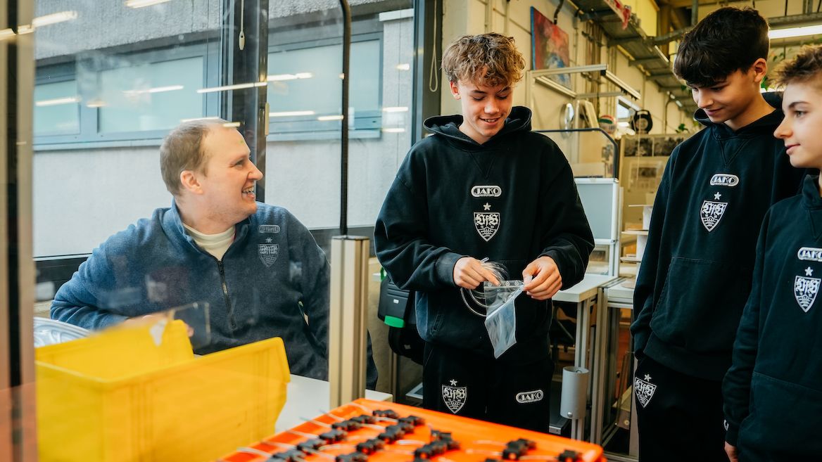 „Uns ist es wichtig, dass unsere Jungs aus dem Kosmos Fußball rauskommen und neue Eindrücke sammeln. Sie bekommen einen Eindruck davon, was Menschen mit Beeinträchtigungen leisten, wo sie noch Unterstützung benötigen und erhalten dadurch einen Einblick in eine andere Lebensrealität“, sagt U14-Trainer Marcel Pfeiffer. „Außerdem ist es toll zu sehen, wie sehr sich die Mitarbeiter hier über unseren Besuch freuen. Viele sind große VfB-Fans und gehen regelmäßig ins Stadion. Dadurch entstand direkt ein Anknüpfungspunkt.“ So wurde der Besuch der U14 in den Neckartalwerkstätten eine Win-Win-Situation für alle Beteiligten.