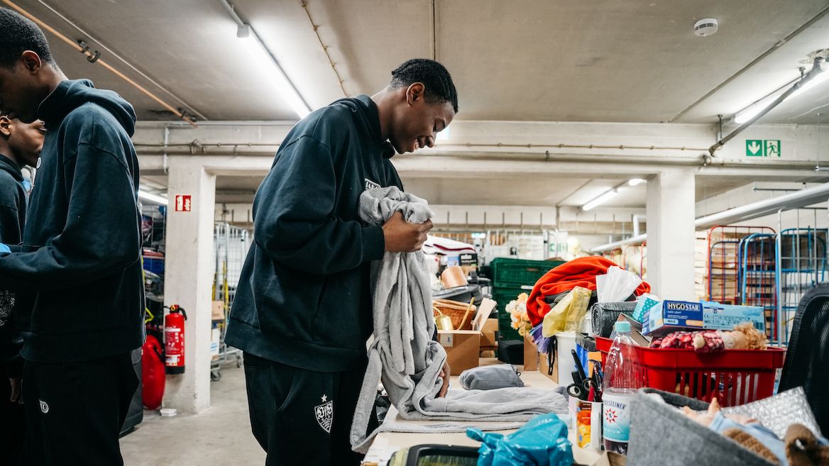 Tüten knoten statt Tore knipsen – die U15 erlebte am Montag und Dienstag eine willkommene Abwechslung zum Alltag und packte jeweils einen Vormittag lang bei der Schwäbischen Tafel in Bad Cannstatt und Fellbach mit an. Dabei halfen die Jungs beim Sortieren und Verpacken der Lebensmittel und Kleidung, zudem unterstützen die Gäste bei ihrem Einkauf. Die Schwäbische Tafel Stuttgart e.V. hat es sich zur Aufgabe gemacht, Lebensmittel, die in Supermärkten aussortiert wurden, aber weiterhin genießbar sind, sowie gespendete Kleidung einzusammeln und in eigenen Tafelläden an bedürftige Menschen gegen einen kleinen Preis weiterzugeben.