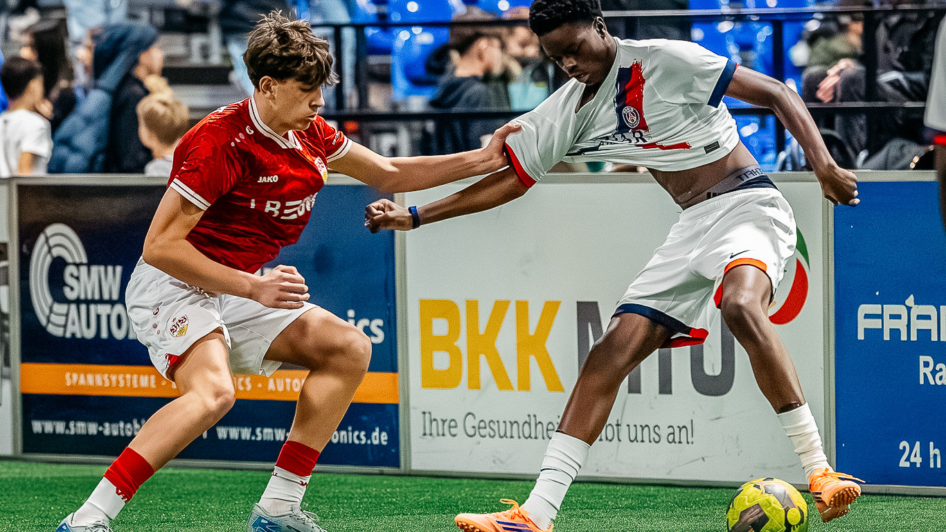 Temporeicher Hallenfußball, ein hochkarätiges, internationales Teilnehmerfeld mit 24 Mannschaften und bis zu 5.000 Zuschauer in der Messehalle zeichnen den MTU-Cup des VfB Friedrichshafen, einem der Partnervereine des VfB, aus. Die Jungen Wilden traten als amtierender Titelverteidiger an und erwischten eine anspruchsvolle Gruppe. Neben den beiden Siegen gegen die beiden Amateurvereine TSV Tettnang (5:0) und VfB Friedrichshafen (7:0) setzte sich das Team von Trainer Mathias Urbani auch gegen Paris Saint-Germain (5:1) durch. Dass es in der Abschlusstabelle der Gruppe „nur“ für Platz drei reichte, lag an den beiden Niederlagen gegen den FC Barcelona „Grana“ (1:3) und Manchester United (2:3).