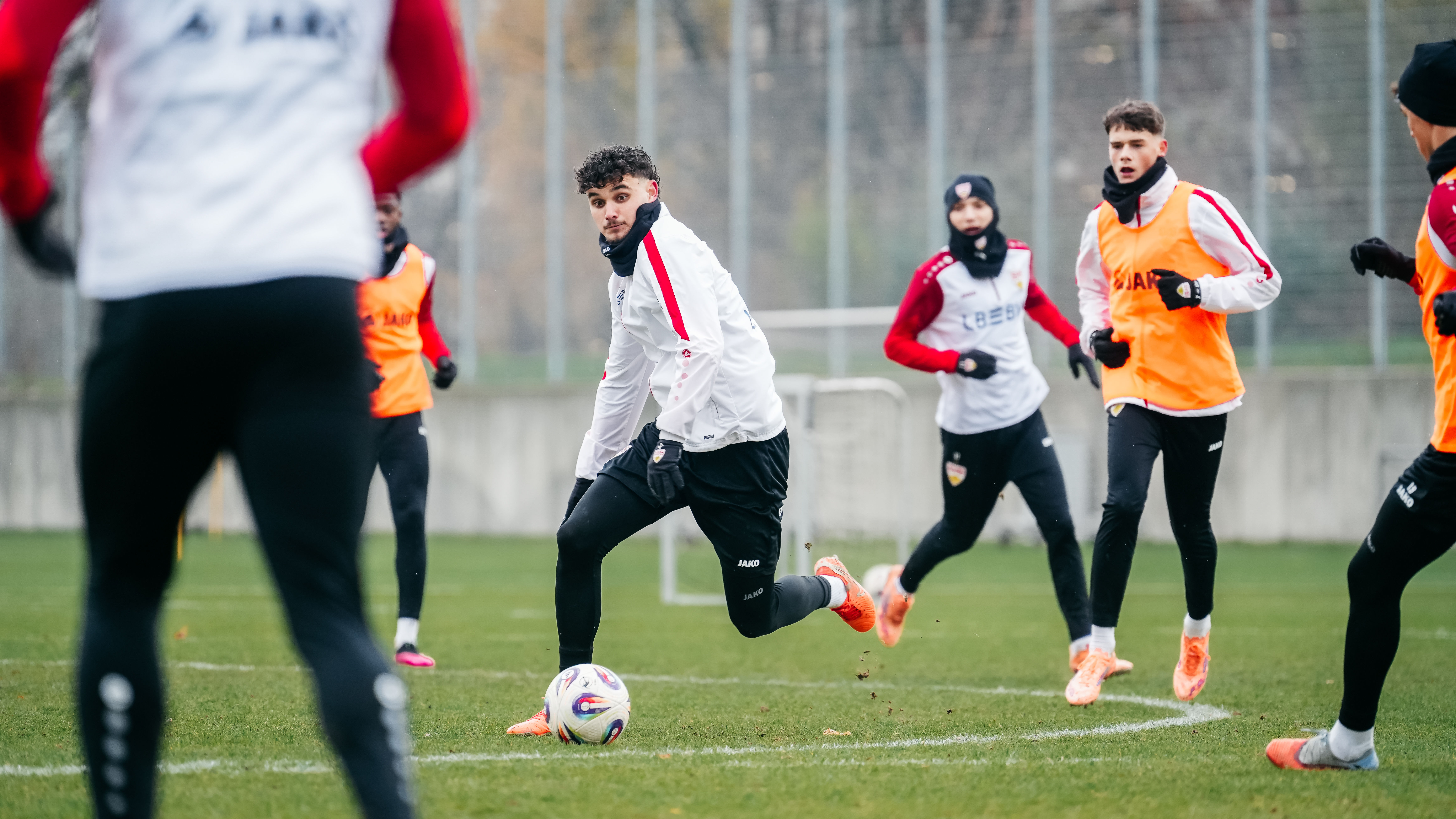 Zwei Tage später kommt in der DFB-Nachwuchsliga der gleiche Gegner noch einmal ans VfB-Clubzentrum. Um 13 Uhr beginnt das Heimspiel gegen den SSV. Es ist der Abschluss der Vorrunde. Während Ulm bereits seit mehreren Spielen keine Chance mehr auf die Qualifikation für Liga A hat und mit zehn Punkten auf dem vorletzten Rang steht, liefert sich der VfB mit dem FC Bayern noch ein Fernduell um den Gruppensieg. Aktuell liegen die Münchener mit zwei Punkten Vorsprung auf Rang eins und haben das um ein Tor bessere Torverhältnis. Der FCB trifft parallel auf den SC Freiburg, der seinerseits gewinnen muss, um die Chance auf Liga A zu wahren. Als Gruppensieger einer Vorrundengruppe kann man in den Hauptrundengruppen, die aus je sechs Vereinen bestehen, nur maximal einem weiteren Gruppensieger zugeordnet werden.