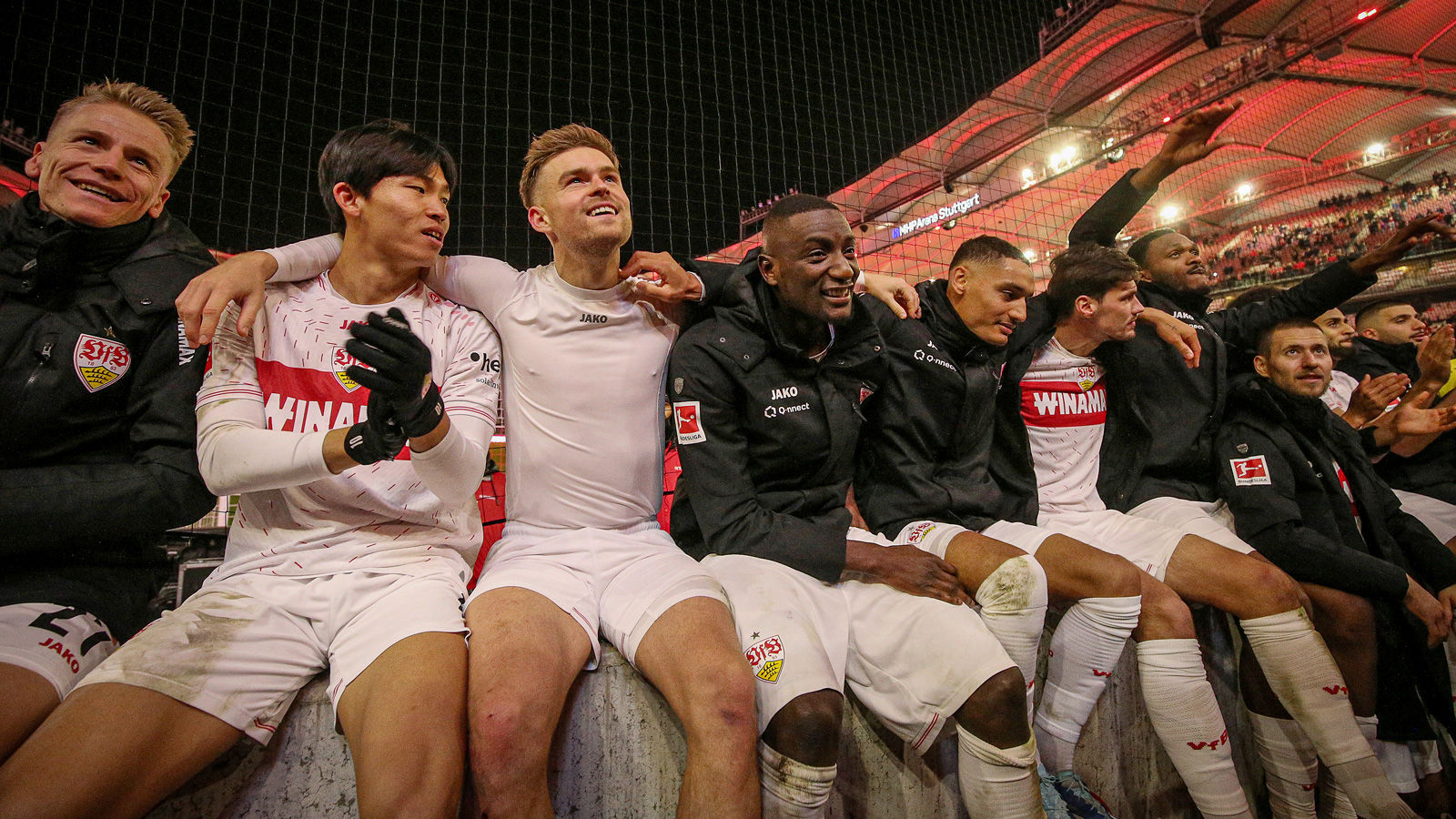 Das VfB-Team beschloss den erfolgreichen Abend gegen Augsburg mit einer Runde durch die MHPArena, bei der sie sich bei ihren Fans für die Unterstützung bedankten und Mini-Bälle des Ausrüsters Jako verteilten. Am 2. Januar geht es für Waldemar Anton & Co. dann mit der Vorbereitung auf die Rest-Saison weiter.