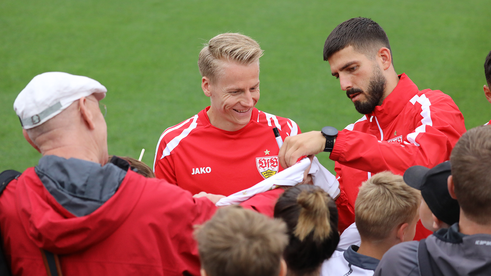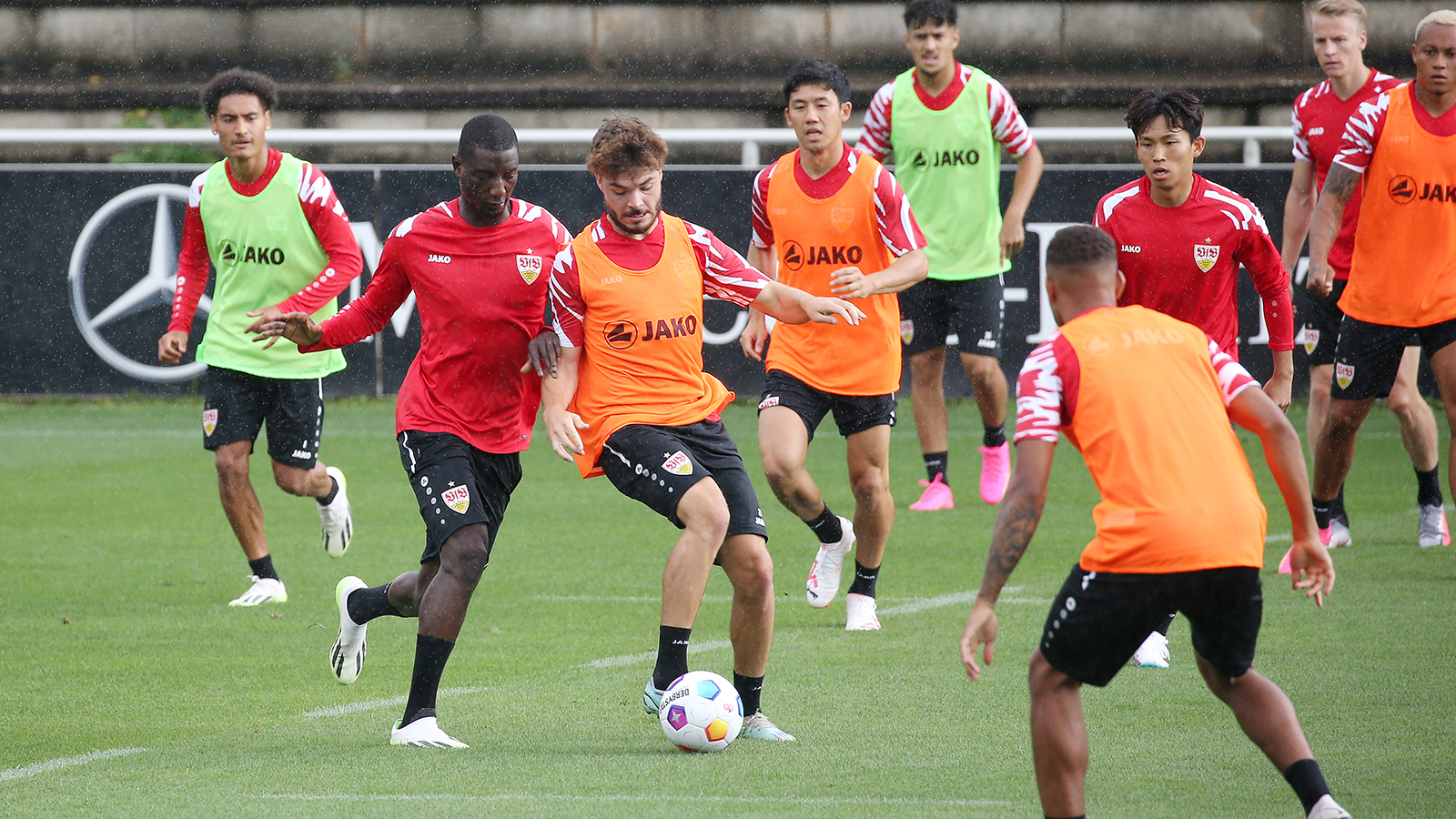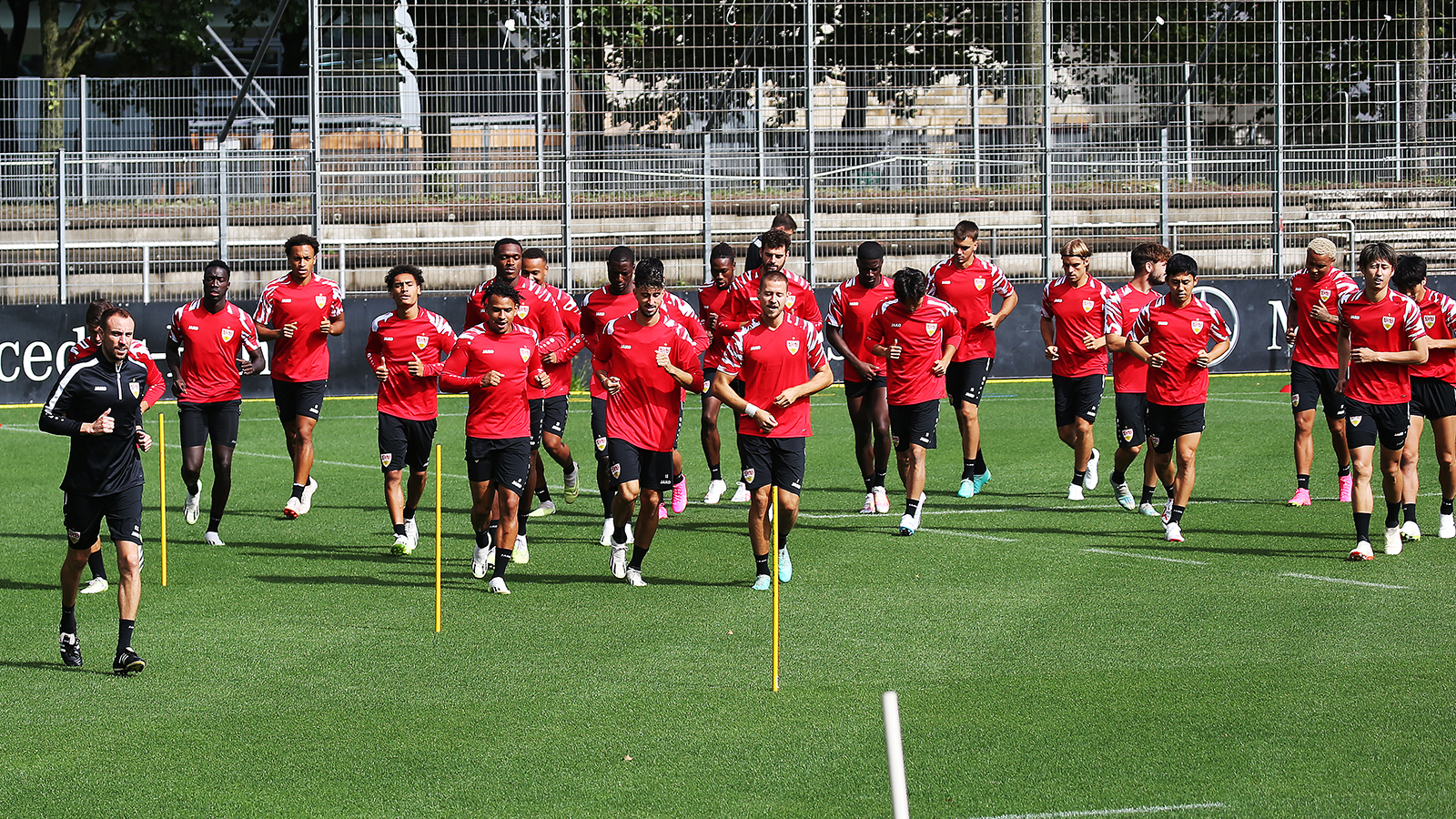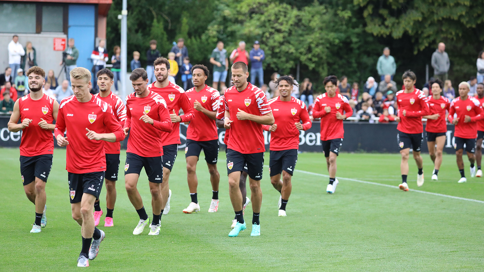 Am Donnerstagnachmittag machen die VfB-Profis den Haken an die fünfte Einheit der Woche. In zwei öffentlichen Einheiten am Dienstag- und Donnerstagvormittag sowie weiteren intensiven Trainings- und Laufeinheiten in Cannstatt wird dieser Tage der Feinschliff für das erste Pflichtspiel in gut zwei Wochen (12. August, 1. Runde DFB-Pokal gegen TSG Balingen) betrieben. So standen für Borna Sosa und Co. am Donnerstagvormittag beispielsweise Standards und Spielformen auf dem Programm, die von rund 500 anwesenden Zuschauern aus nächster Nähe verfolgt wurden – darunter unterschiedliche Freistoß- oder Eckballvarianten, die am Wochenende direkt erprobt werden können.