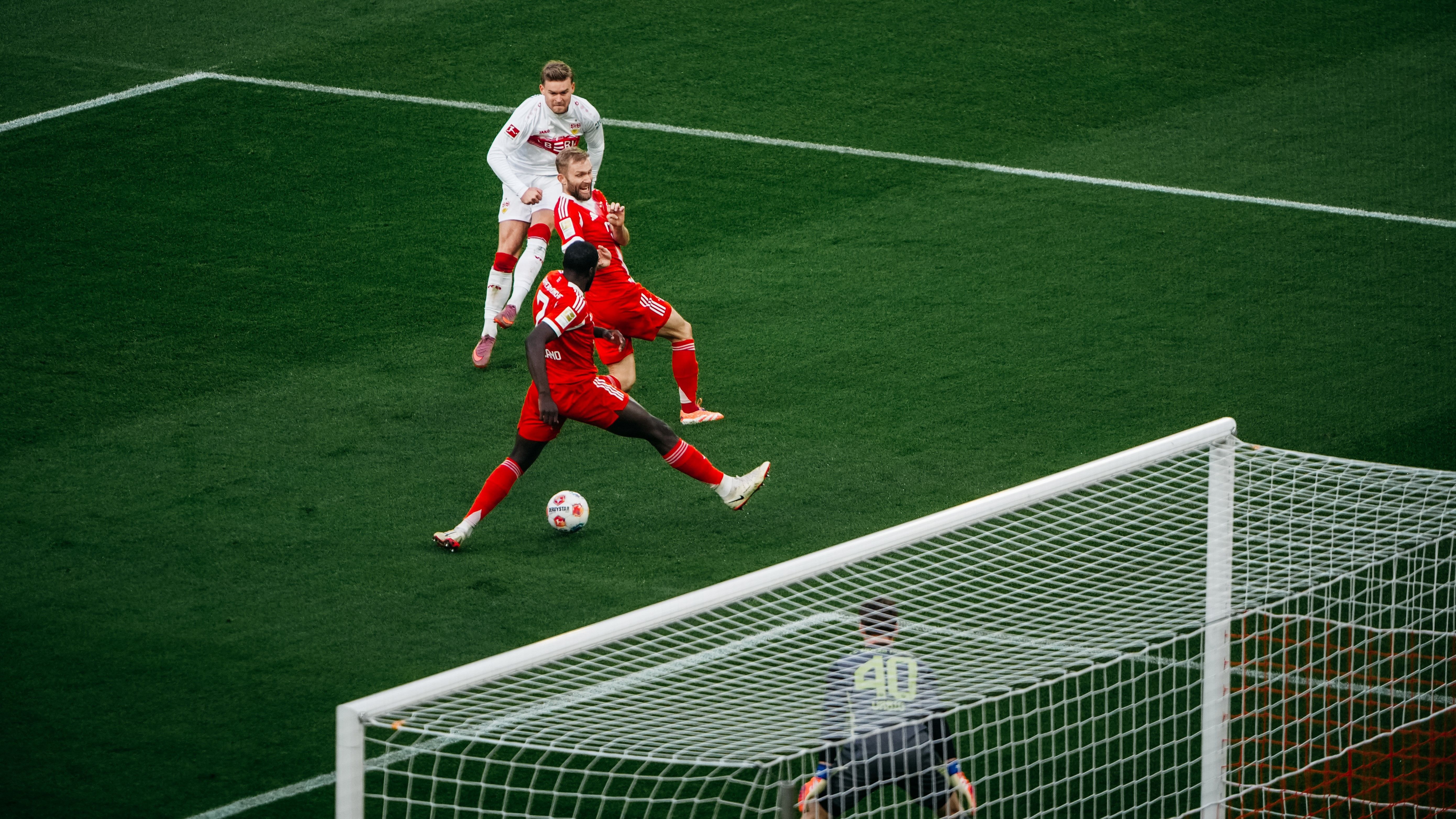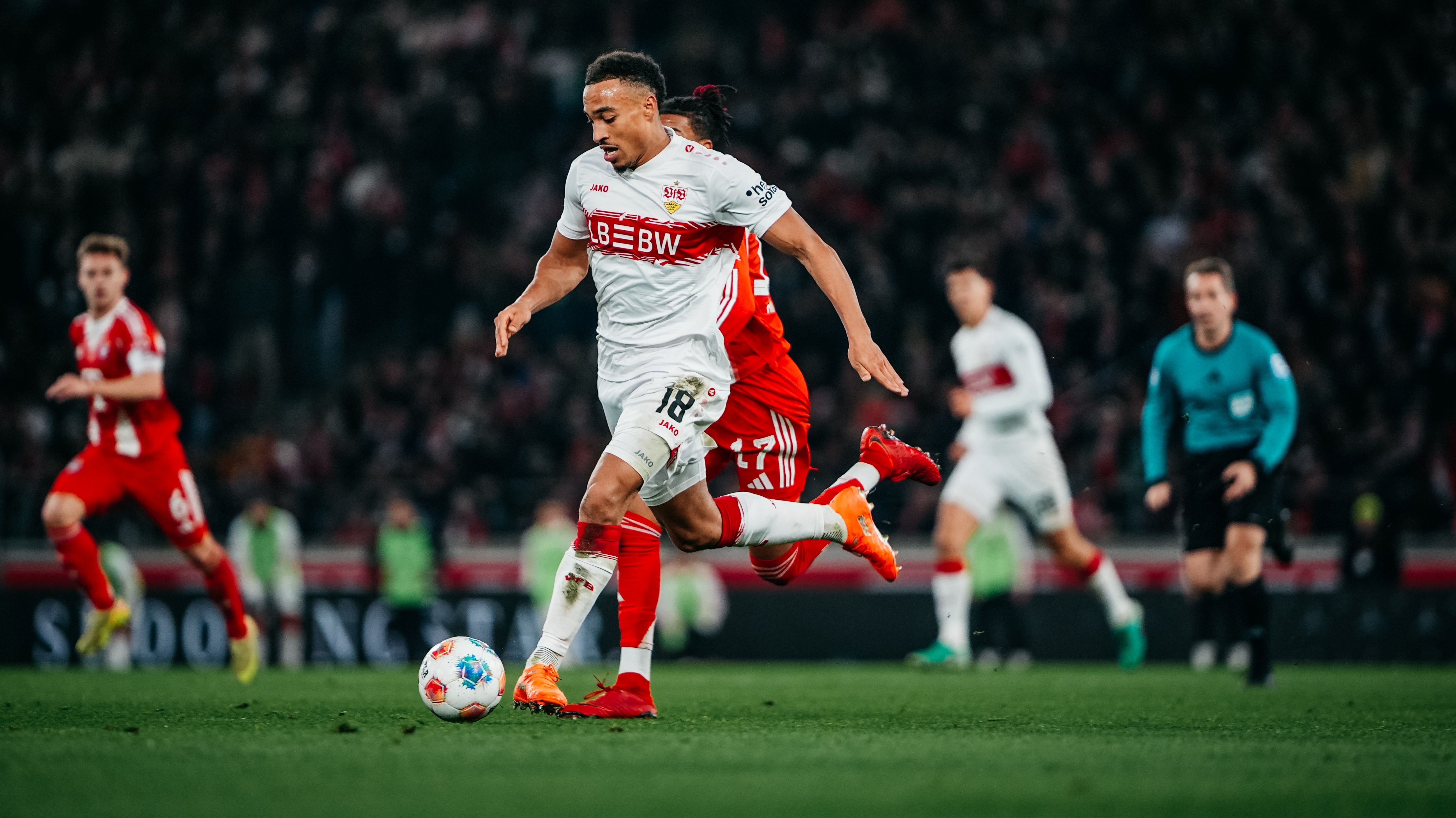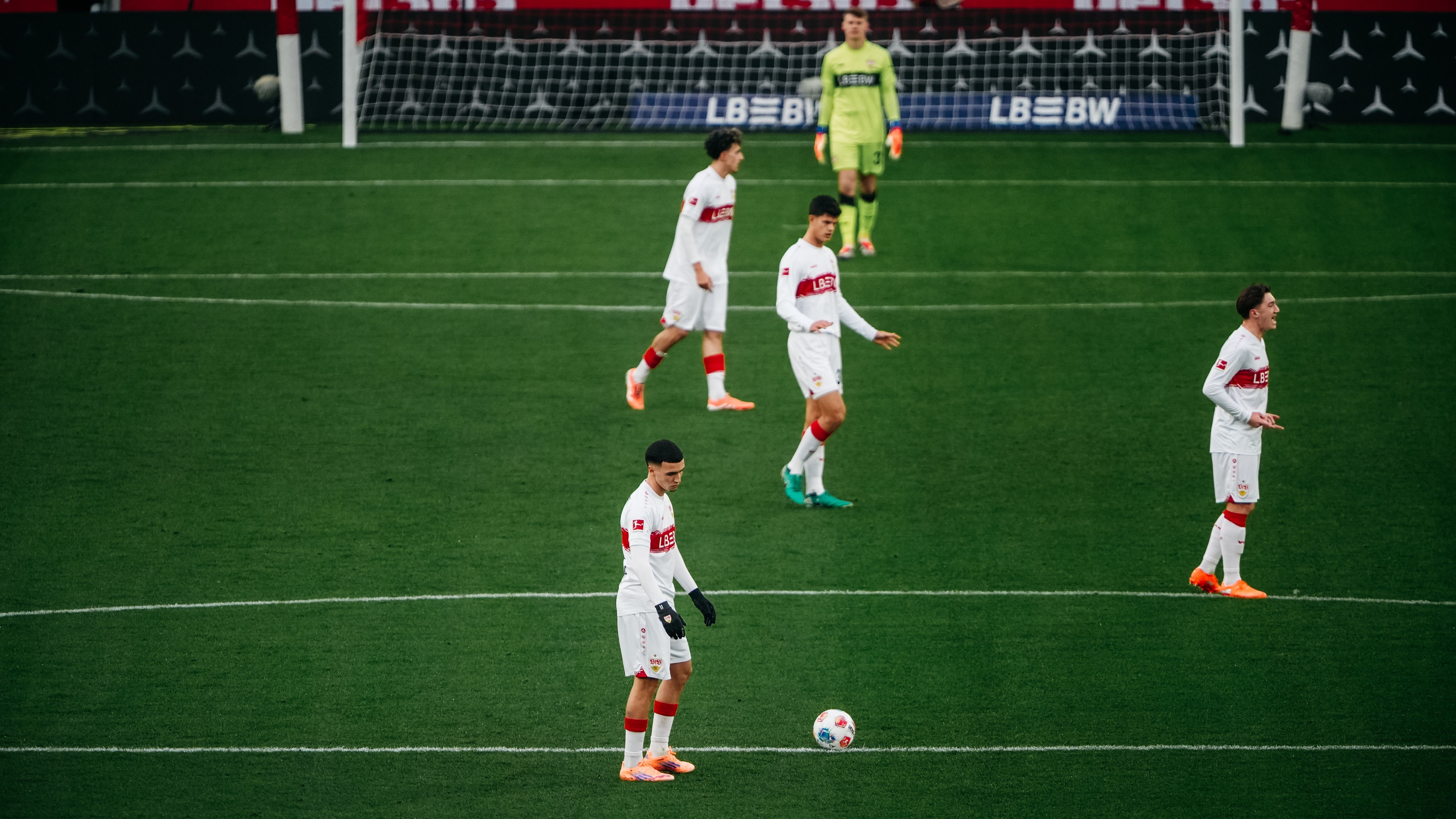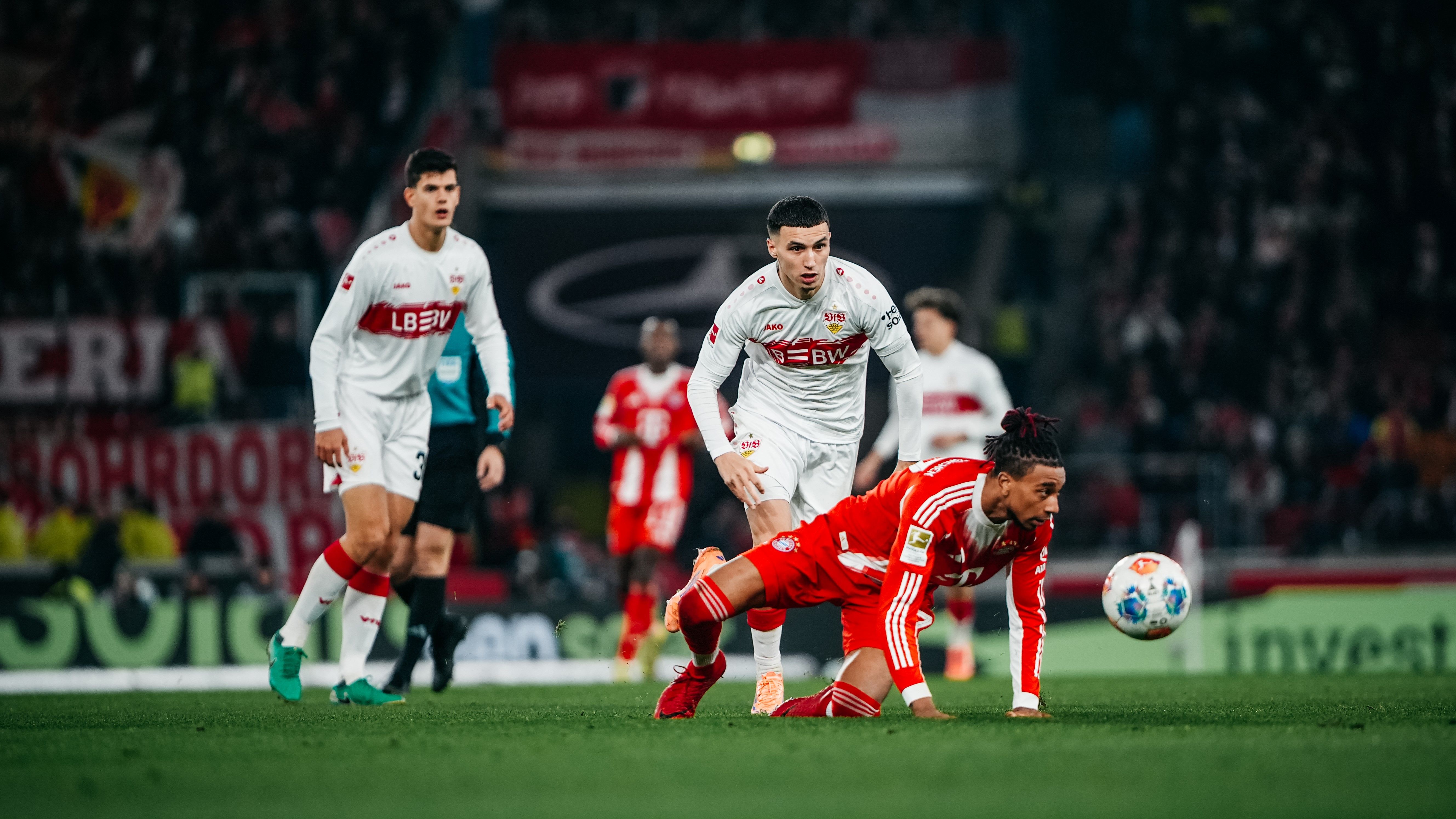 Ein Knackpunkt: der frühe Rückstand, der FCB führte nach elf Minuten in der MHP Arena. „Wir können das erste Gegentor besser verteidigen – es war definitiv nicht der Start, den wir haben wollten“, sagte Chefcoach Sebastian Hoeneß und sah, wie sein Team anschließend eine starke Reaktion zeigte: „Die Mannschaft hat sich in die Partie hereingearbeitet, hat Leidenschaft gezeigt, kam zu Chancen, hat viel probiert.“ Es passte zu diesem Nachmittag, dass das Pendel in engen Situationen kaum zugunsten des VfB ausschlug. Beispiele? Nikolas Nartey stand bei seinem Treffer in der 42. Minute wenige Zentimeter im Abseits, Chema schoss nach einer tollen Kombination in der 45. Minute haarscharf neben den rechten Pfosten und generell rieb die Jungs aus Cannstatt auf, dass nach harten Einsteigens gegen Angelo Stiller und Bilal El Khannouss der Pfiff von Schiedsrichter Tobias Stieler ausblieb.