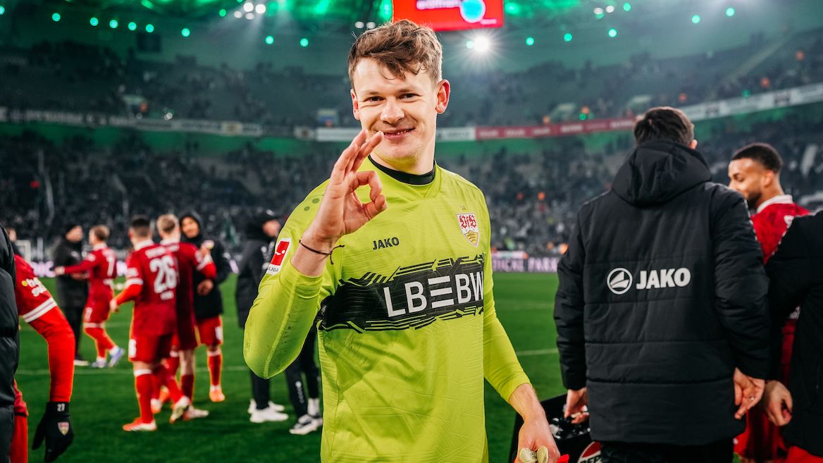 Es war unbestritten die Schlüsselszene des Spiels – und stand am Ende sinnbildlich für den verdienten Sieg des VfB in Mönchengladbach: Nachdem Schiedsrichter Sören Storks in der elften Minute infolge eines unabsichtlichen Handspiels von Jamie Leweling auf den Elfmeterpunkt gezeigt hatte, parierte zunächst Alexander Nübel stark gegen Schütze Haris Tabakovic, ehe Ramon Hendriks mit einer beherzten Abwehraktion den Nachschuss von Philipp Sander verhinderte. „Es hätte ein anderes Spiel werden können, wenn der Strafstoß verwandelt worden wäre“, befand Cheftrainer Sebastian Hoeneß im Anschluss an das Spiel, während Jamie Leweling lobende Worte, vor allem für seine beiden Defensivkollegen, aber auch für den Rest der Mannschaft fand. „Alex und Ramon haben mich heute gerettet, dafür bin ich ihnen dankbar. Es war nach diesen anstrengenden Wochen ein Sieg, an dem das ganze Team seinen Anteil hat.“