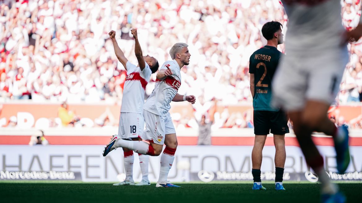 Alle Energie auf dem Platz gelassen, den Ausgleich verdient und weiterhin alles in der eigenen Hand: Auch wenn der VfB sein 1000. Bundesliga-Heimspiel gegen den SV Werder Bremen nicht mit dem zwölften Heimsieg der Saison krönte, musste sich die Mannschaft von Sebastian Hoeneß nach dem Spiel wenig vorwerfen lassen. „Wir haben gemischte Gefühle, weil es unser Ziel war, das Spiel zu gewinnen“, äußerte der Cheftrainer nach dem Spiel. „Es war der Mannschaft anzumerken, dass die Minuten aus dem DFB-Pokal noch in den Beinen steckten. In der ersten Halbzeit waren wir nicht handlungsschnell genug, trotzdem kamen wir zu ein, zwei guten Möglichkeiten.“ Sportvorstand Fabian Wohlgemuth fügte an: „Wir mussten den Fokus und die Schärfe erst wiederfinden.“