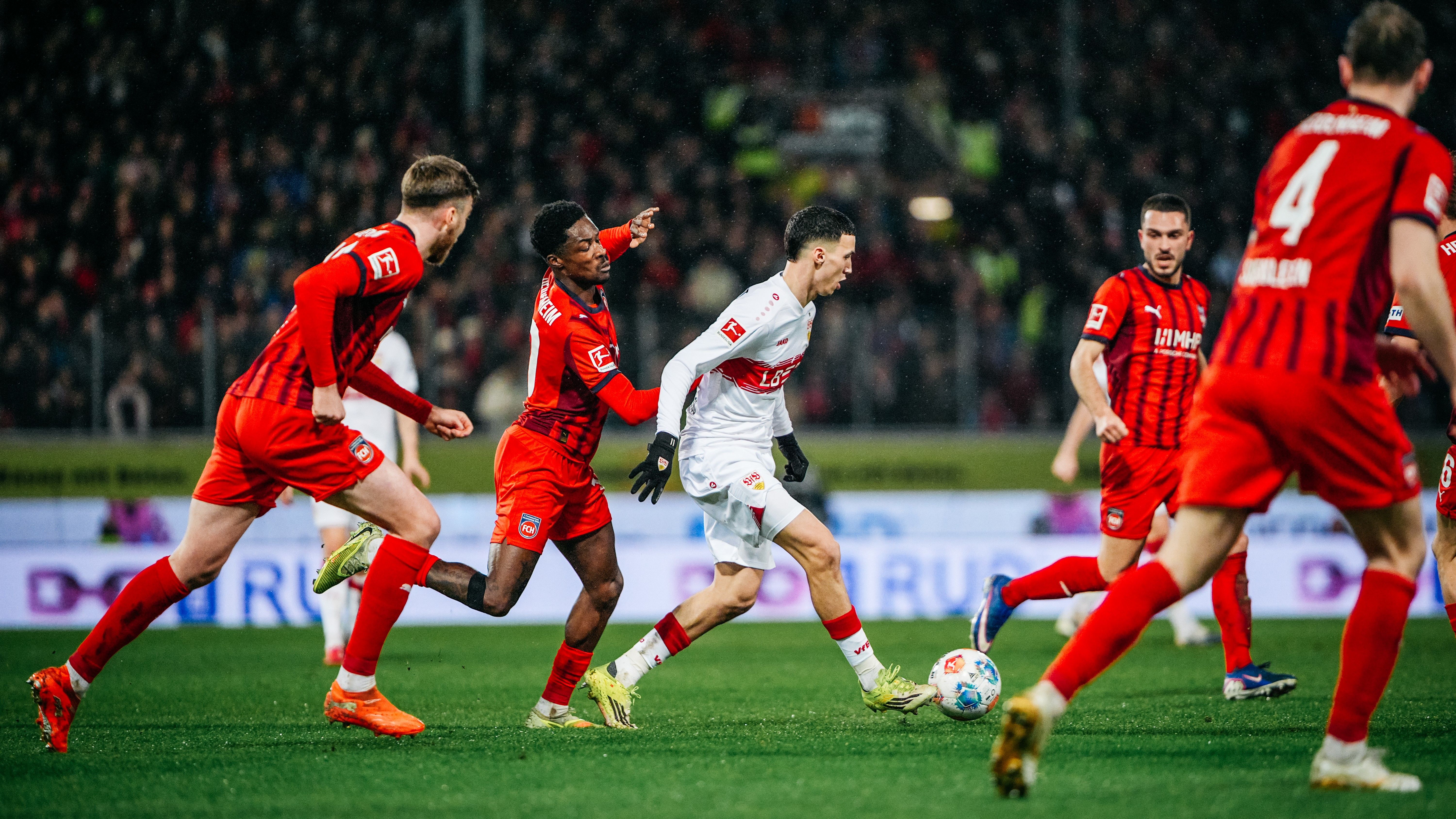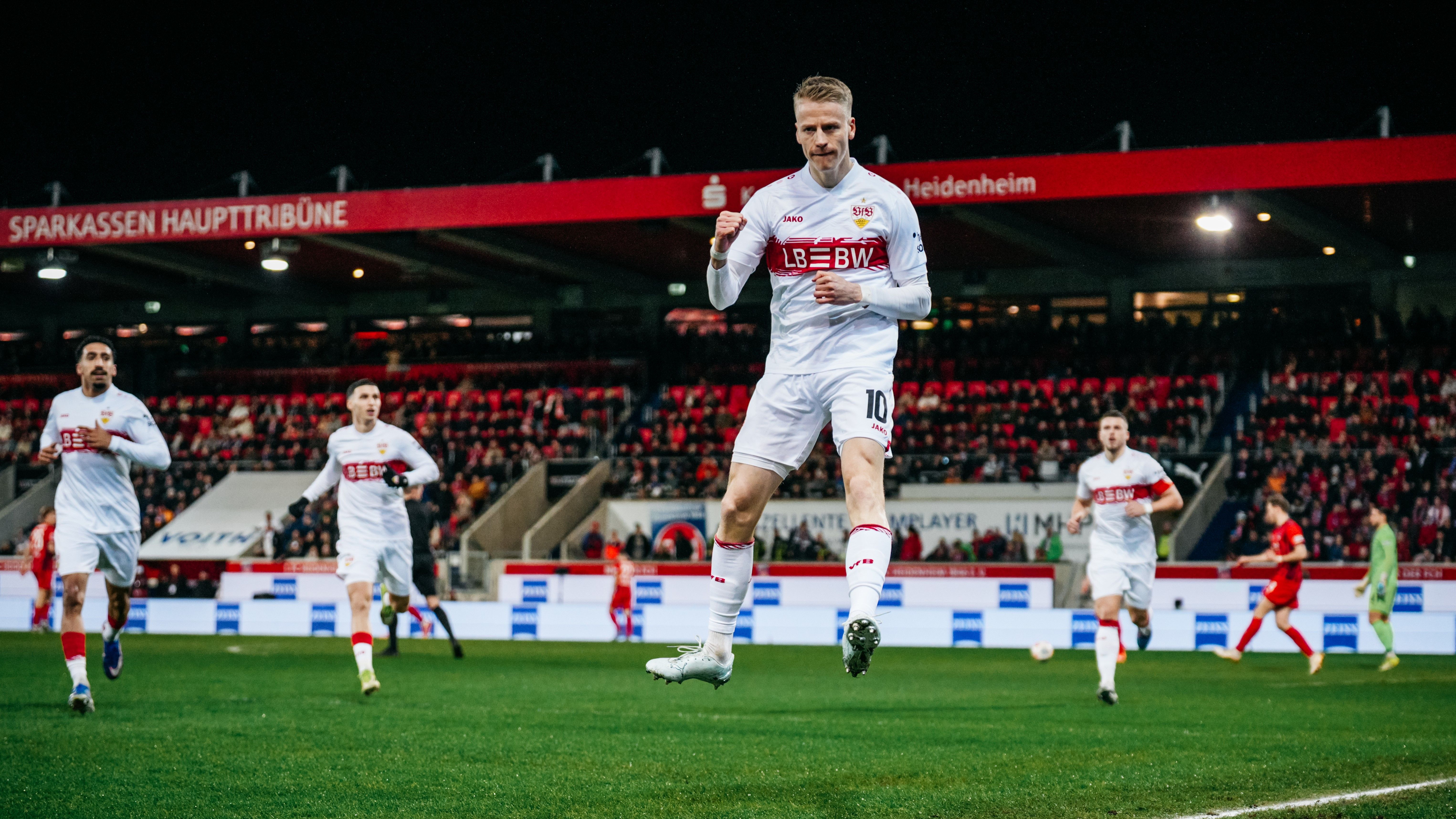 „Es ist ein Unentschieden, über das sich wahrscheinlich keine der beiden Mannschaften so richtig freuen kann“, bilanziert Cheftrainer Sebastian Hoeneß. Zunächst zeigte der VfB von der ersten Minute an, dass er von UEFA Europa League auf Bundesliga umgeschaltet hatte. Das Team mit dem roten Brustring, unterstützt von mehr als 2.100 mitgereisten Fans, gewann insgesamt 58 Prozent aller Zweikämpfe und spulte in Summe 125 Kilometer ab. Auch der Gastgeber trug mit seinem leidenschaftlichen Vortrag dazu bei, dass sich eine enorm spannende Begegnung entwickelte. „Gegen die Heidenheimer Manndeckung war es oft herausfordernd, wir haben es trotzdem geschafft, uns mehr und mehr in der gegnerischen Hälfte festzusetzen“, lobt Sebastian Hoeneß sein Team.