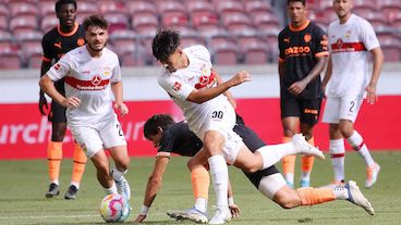 Als eine „Generalprobe gegen einen echten Kracher“ hat VfB-Chefcoach Pellegrino Matarazzo das letzte Testspiel auf heimischem Rasen ausgerufen – und die Jungs aus Cannstatt gehen diese Generalprobe sehr konzentriert an. In der ersten Viertelstunde setzt sich das Team um VfB-Kapitän Wataru Endo in der Hälfte des spanischen Erstligisten fest. In Minute fünf und neun scheitern Konstantinos Mavropanos und Sasa Kalajdzic noch knapp – wenig später bringt Tiago Tomás den VfB dann in Führung (siehe „die Tore“). Gefährlich wird es für den VfB in der 26. Minute, als Flo Müller per Flugeinlage den Freistoß von Jose Gaya entschärft. Marcos André zielt wenig später besser (1:1) – doch Tiago Tomás schnürt per Fernschuss seinen Doppelback. Es geht mit einer 2:1-Führung für unsere Jungs in die Pause.