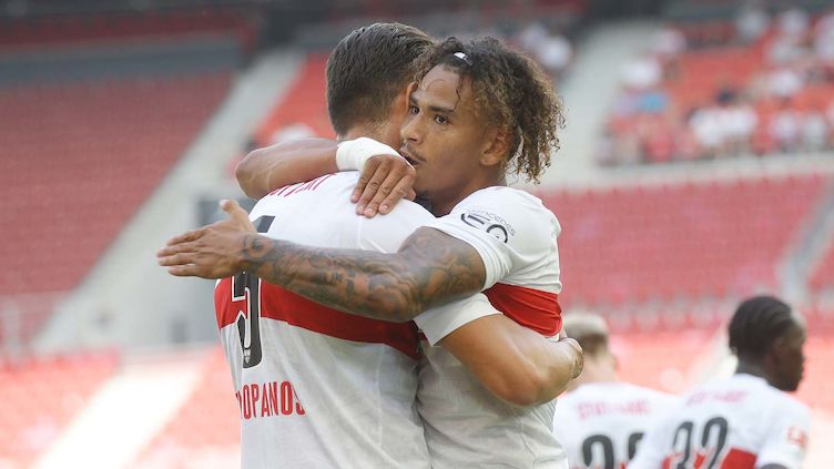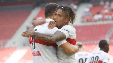 16. Minute: Silas kommt über die linke Seite und spielt den Gegner schwindelig, flankt und findet Tiago Tomás auf rechts, der überlegt einnetzt. Der VfB führt 1:0.