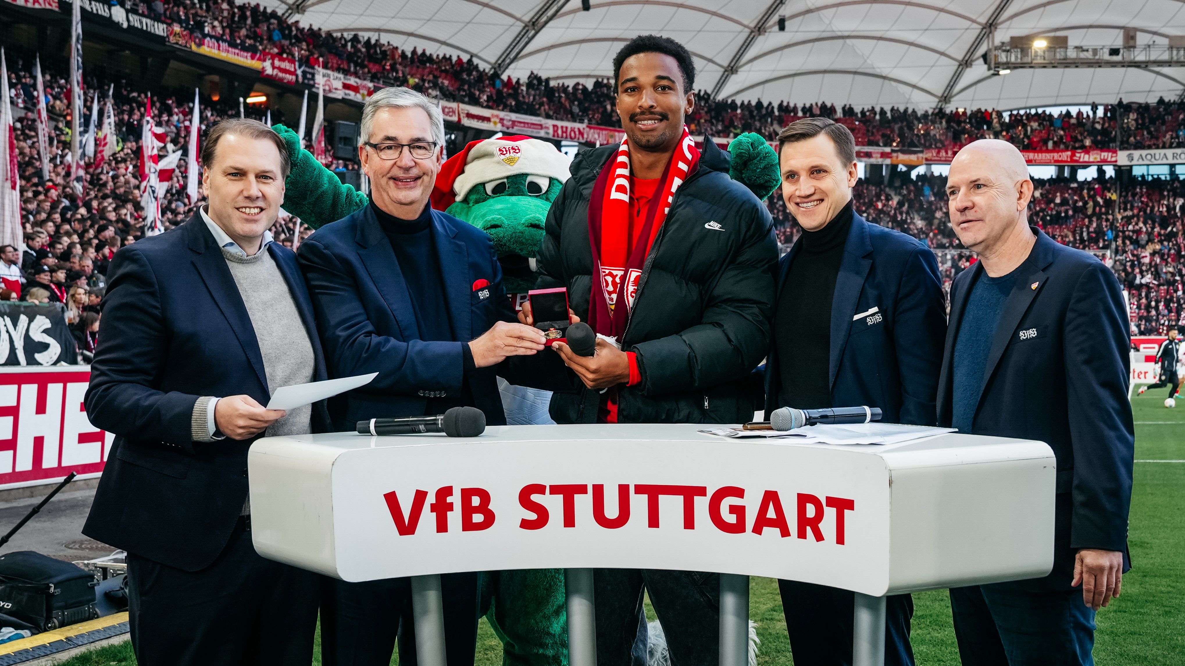 Leo Neugebauer startet weiterhin für den VfB. Der Zehnkampf-Weltmeister, der im September 2025 im japanischen Tokio den Titel gewann, bleibt der weiß-roten Leichtathletik-Abteilung des Vereins weiterhin erhalten und hat seinen Vertrag beim VfB Stuttgart verlängert. Das hat Präsident Dietmar Allgaier am Samstagnachmittag in der mit 60.000 Fans ausverkauften MHP Arena vor Anpfiff des Bundesligaspiels gegen den FC Bayern München verkündet. In Zuge dessen erhielt der „König der Athleten“ aus der Hand von Präsidium und Vereinsbeirat zudem die Verdienstmedaille in Gold mit Rubin, die höchste Auszeichnung des Vereins.