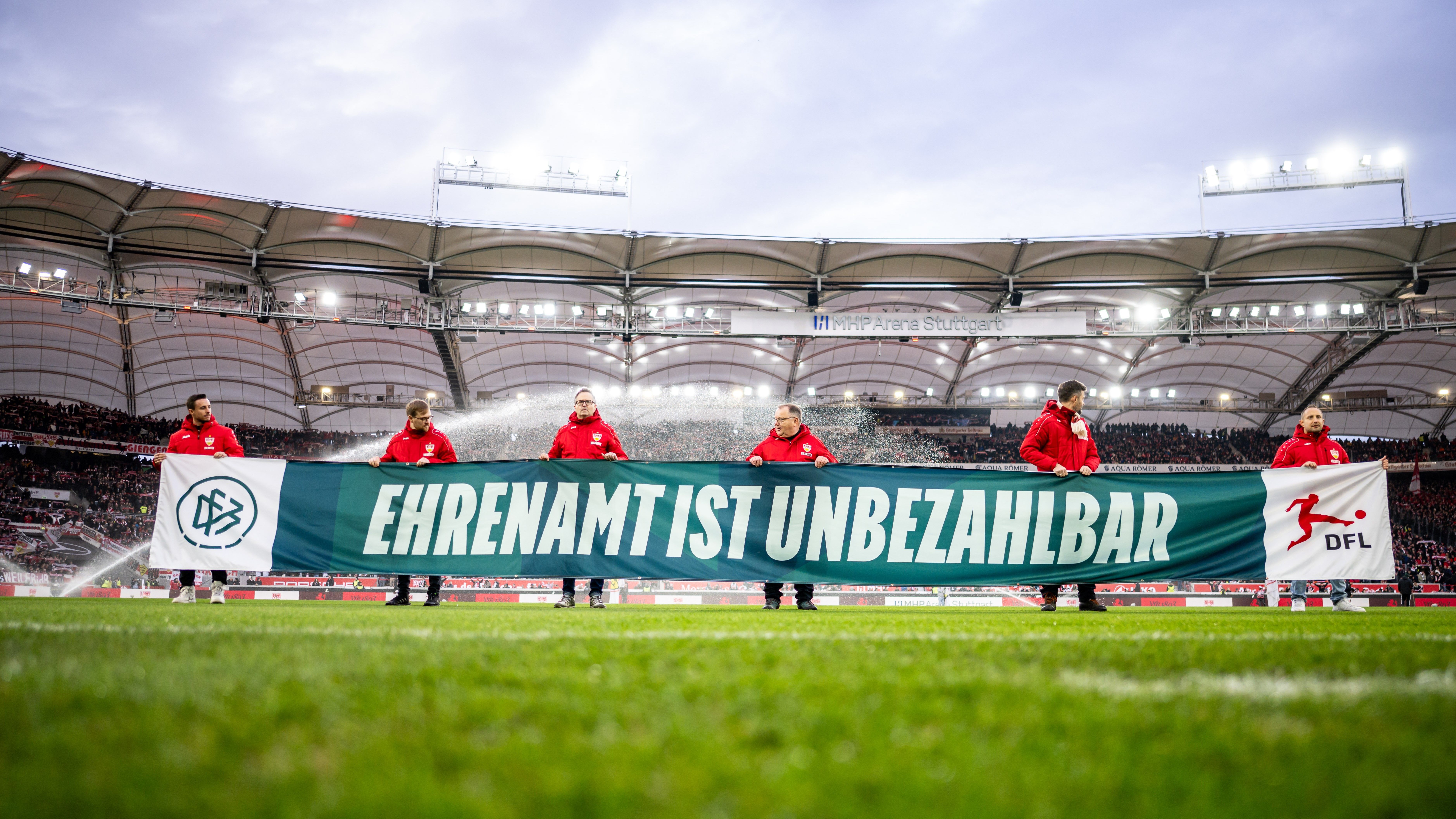 Rund um den bundesweiten „Tag des Ehrenamtes“ hat der VfB Stuttgart einmal mehr seine Wertschätzung für freiwillig Engagierte zum Ausdruck gebracht. In diesem Jahr standen gleich drei Aktionen beim Club aus Cannstatt im Mittelpunkt: Die VfB-Stiftung gab am Freitag, 5. Dezember 2025, bekannt, dass sie auch 2026 die Gerhard-Mayer-Vorfelder-Medaille verleihen und auf diese Weise ehrenamtliches Engagement würdigen wird – Bewerbungen sind bis zum 31. Januar 2026 möglich. Zudem unterstützte der VfB die bundesweite Initiative „DANKE ans Ehrenamt“ von DFB und DFL zum 13. Bundesliga-Spieltag, bei der ein eigens angefertigtes Banner beim Einlaufen der Mannschaften in der MHP Arena platziert wurde. Die dritte Aktion würdigte die Arbeit der Engagierten im Verein selbst.