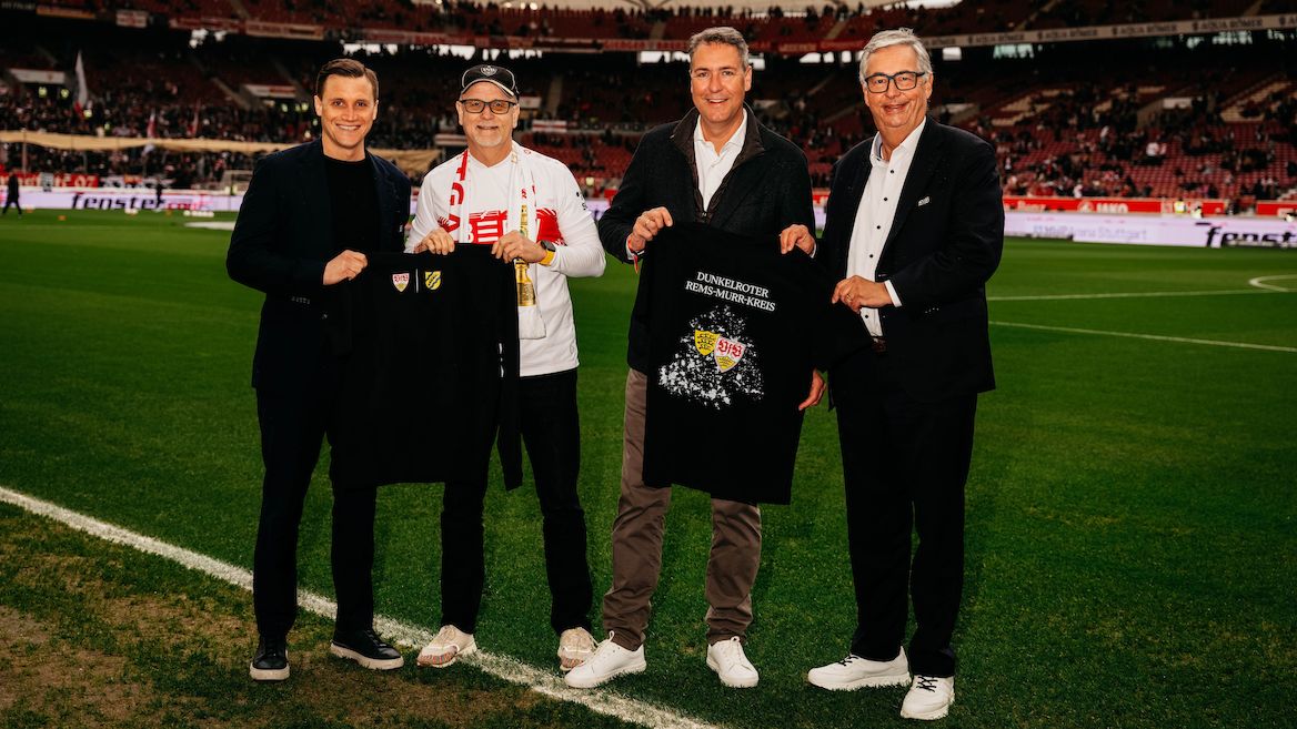 Beim 4:0-Heimerfolg gegen den Hamburger SV durften sich der Landrat des Rems-Murr-Kreises Dr. Richard Sigel und Reinhold Sczuka, Präsident des Sportkreises Rems-Murr, gleich doppelt als Sieger fühlen. Denn neben einem souveränen VfB-Sieg freute sich das Duo auch über den Preis für den zweiten Platz beim VfB im Ländle-Landkreis-Wettbewerb 2024, den sie jetzt einlösten. Der Landkreis Rems-Murr erhielt 300 T- und Sweatshirts des VfB, die exklusiv für den Rems-Murr-Kreis gestaltet wurden. Diese Landkreis-Kollektion kam bei den Kreisverantwortlichen so gut an, dass weitere 450 Shirts sowie Hoodies erworben wurden.