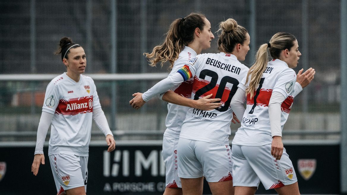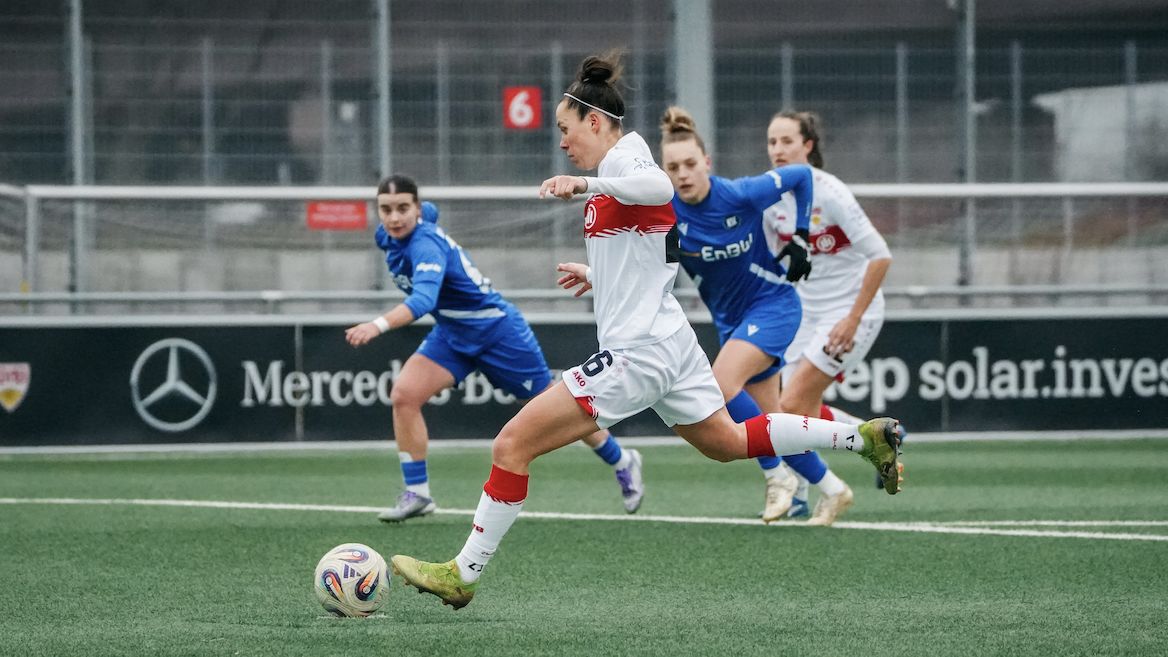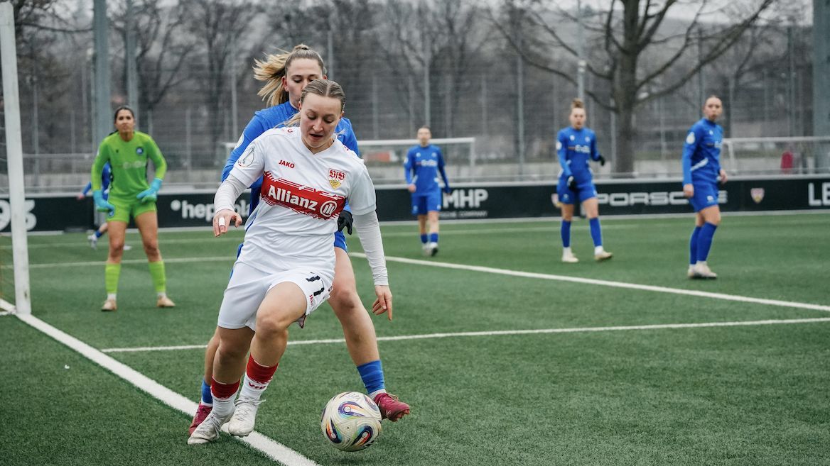 Von Beginn an bestimmten die VfB Frauen das Geschehen und erspielten sich früh zahlreiche Torchancen. Jana Beuschlein, Nicole Billa und Fabienne Dongus scheiterten zunächst noch an der Torhüterin des KSC, Maxi Rall am Pfosten. In der 23. Minute fiel jedoch die verdiente Führung: Jana Beuschlein staubte einen Lattenschuss von Fabienne Dongus zum 1:0 ab. Nach einem von Maxi Rall herausgeholten Foulelfmeter erhöhte Nicole Billa souverän auf 2:0 (35.). Maxi Rall sorgte im Anschluss für den 3:0-Halbzeitstand (45.).