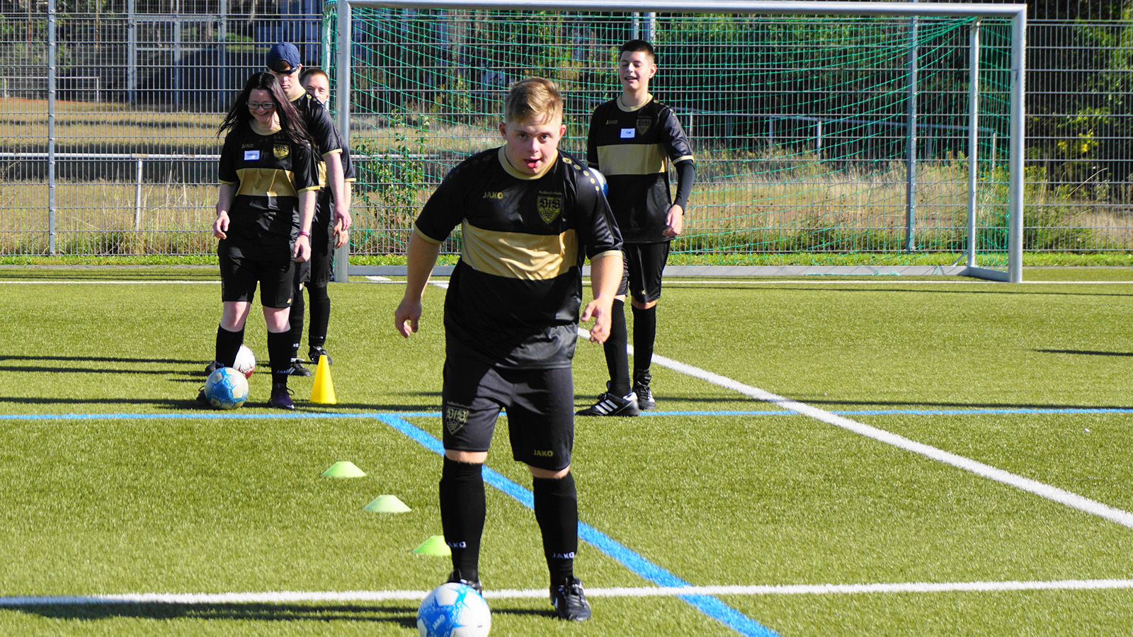 Am 23. und 24. September fand das 8. Inklusions-Camp in Kornwestheim statt und brachte 40 begeisterte Teilnehmerinnen und Teilnehmer zusammen, darunter Menschen mit und ohne Beeinträchtigung. Das Camp, durchgeführt vom PFIFF-Trainer Manuel Bierig und dem Team der VfB-Fußballschule, wurde vom Verein 46plus Down-Syndrom e.V. perfekt unterstützt und bot ein Wochenende voller sonniger Momente und positiver Energie.