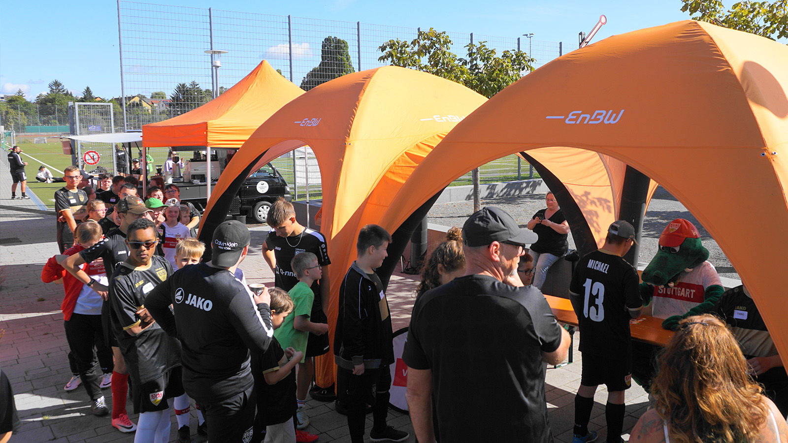 Das Highlight des Wochenendes war zweifellos Fritzle, der am Samstag für beste Stimmung sorgte. Doch auch der Sonntag hatte einiges zu bieten, insbesondere dank Fußball Dart, Tischkicker und Bolzbox, organisiert von EnBW. Die Teilnehmenden hatten die Gelegenheit, ihre fußballerischen Fähigkeiten unter Beweis zu stellen und dabei eine Menge Spaß.