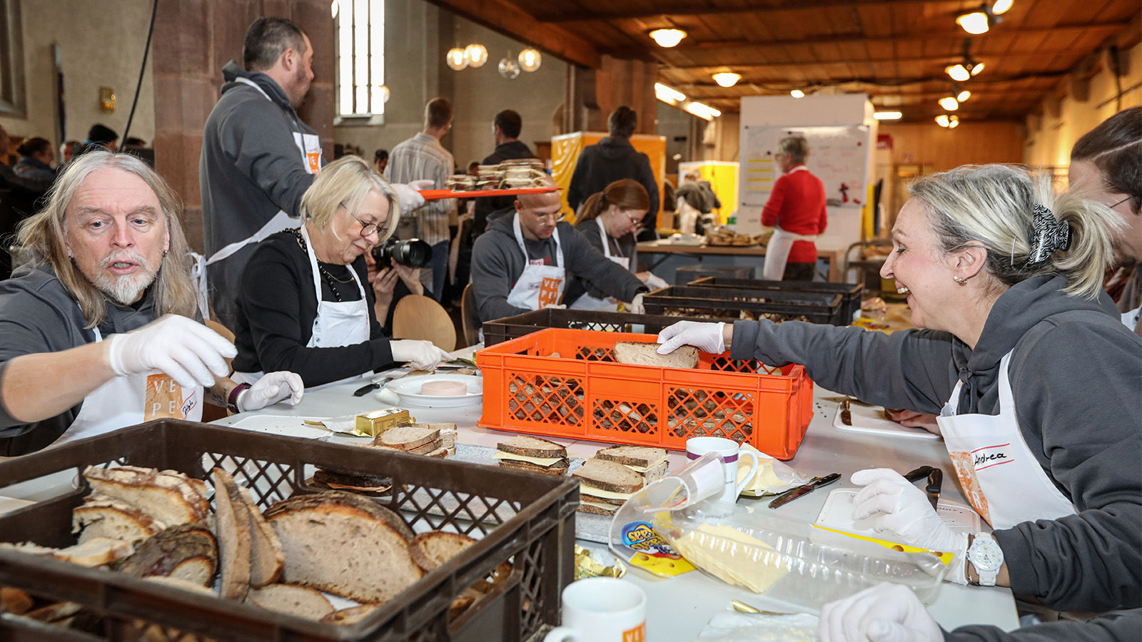 Der Besuch des VfB Stuttgart ist mittlerweile Tradition und ein fester Termin im weiß-roten Kalender, in diesem Jahr erstmals unter dem Dach der VfB-Stiftung Brustring der Herzen. Diakoniepfarrerin Gabriele Ehrmann und ihr Team freuten sich über das Treffen mit alten und neuen Bekannten vom Club aus Cannstatt. Das Engagement von Privatpersonen und Unternehmen der Region ist ein wichtiger Bestandteil für die Durchführung der Vesperkirche. Und der VfB-Tag ist für alle etwas ganz Besonderes.