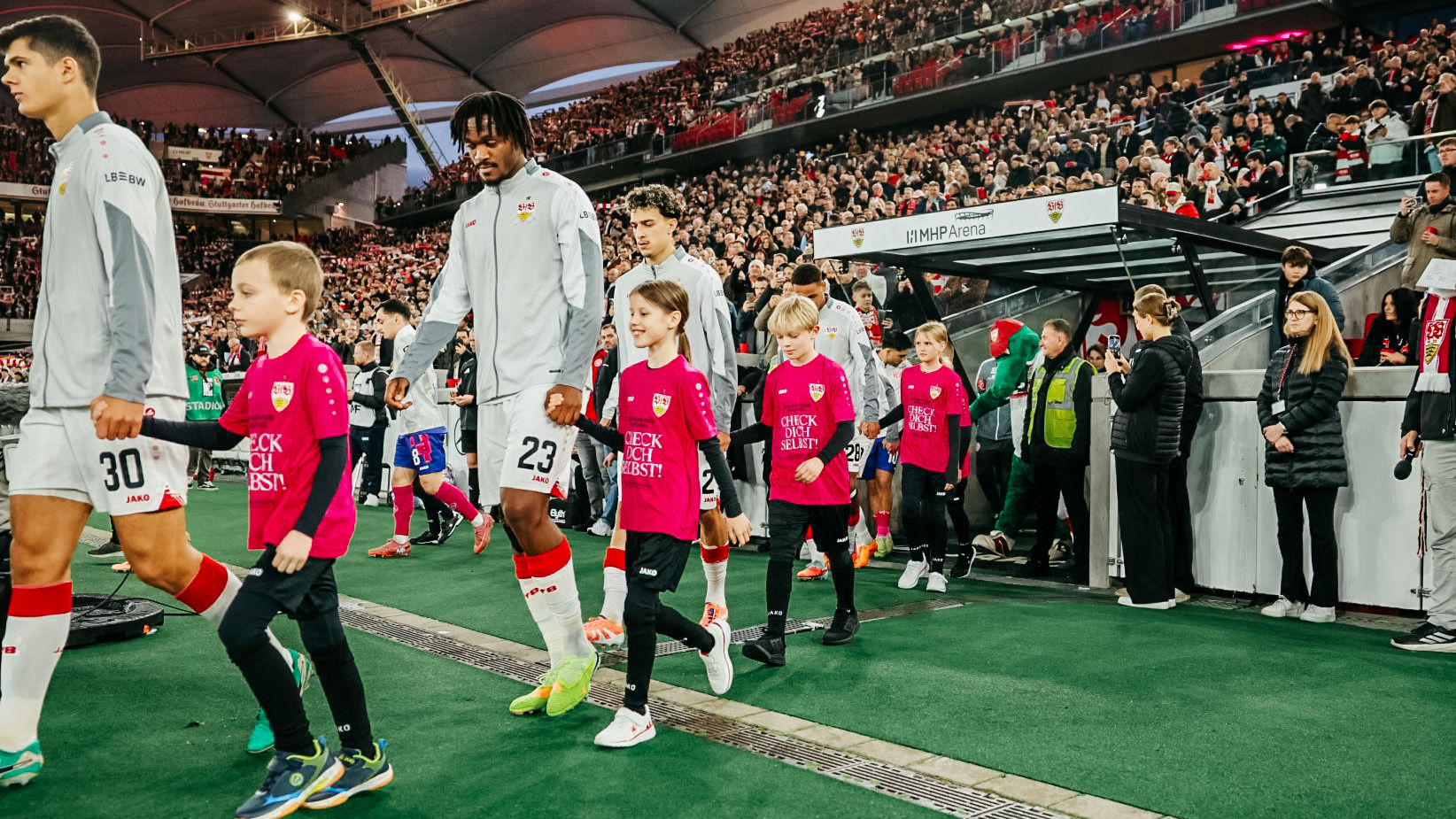 Die VfB-Stiftung verband den Spieltag mit einem Dank an ihre Projektpartner, Unterstützer, Partner, Förderer und Sponsoren. Rund 400 Gäste aus sozialen Einrichtungen, Förderprojekten und Partnerorganisationen verfolgten das Spiel auf Einladung der Stiftung – und feierten beim 2:1-Sieg des VfB einen besonderen Fußballabend. Kinder aus Stiftungsprojekten liefen gemeinsam mit Maskottchen Fritzle die Stadionrunde, winkten ins Publikum und genossen ihren großen Moment. Auch die Mitglieder des Kuratoriums, die sich am Nachmittag zu aktuellen Projekten ausgetauscht hatten, verfolgten das Spiel gemeinsam in der Arena.
