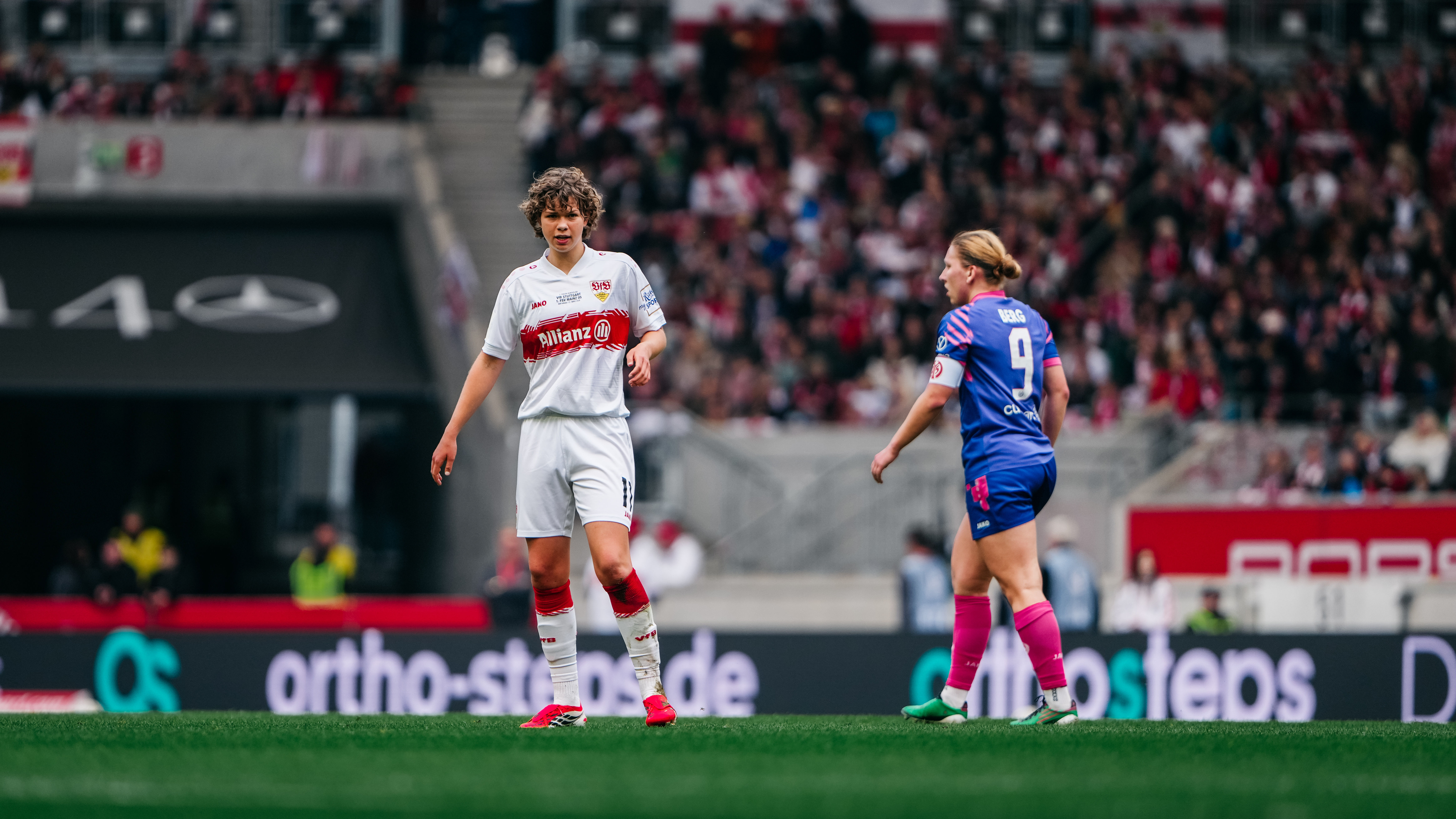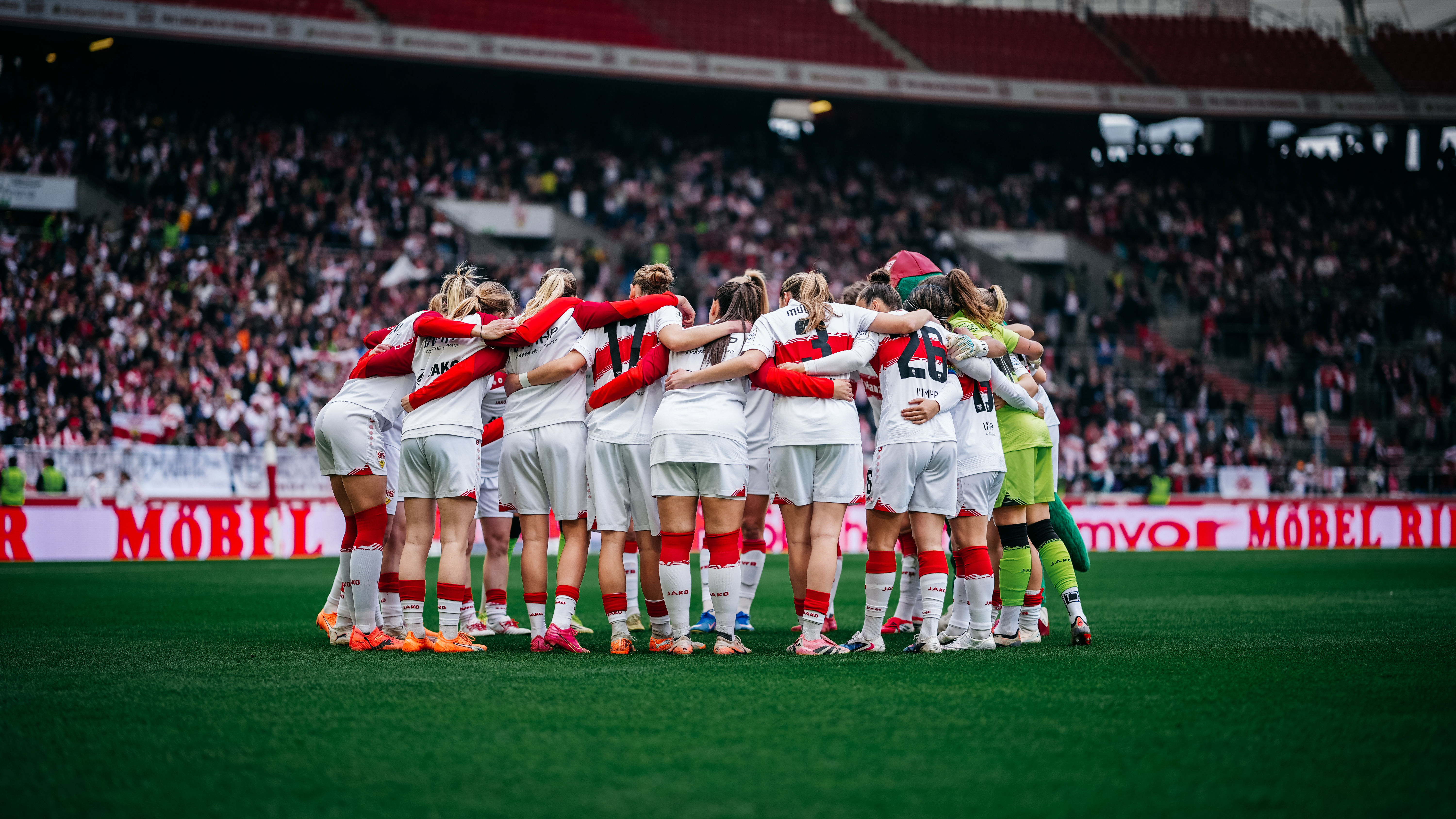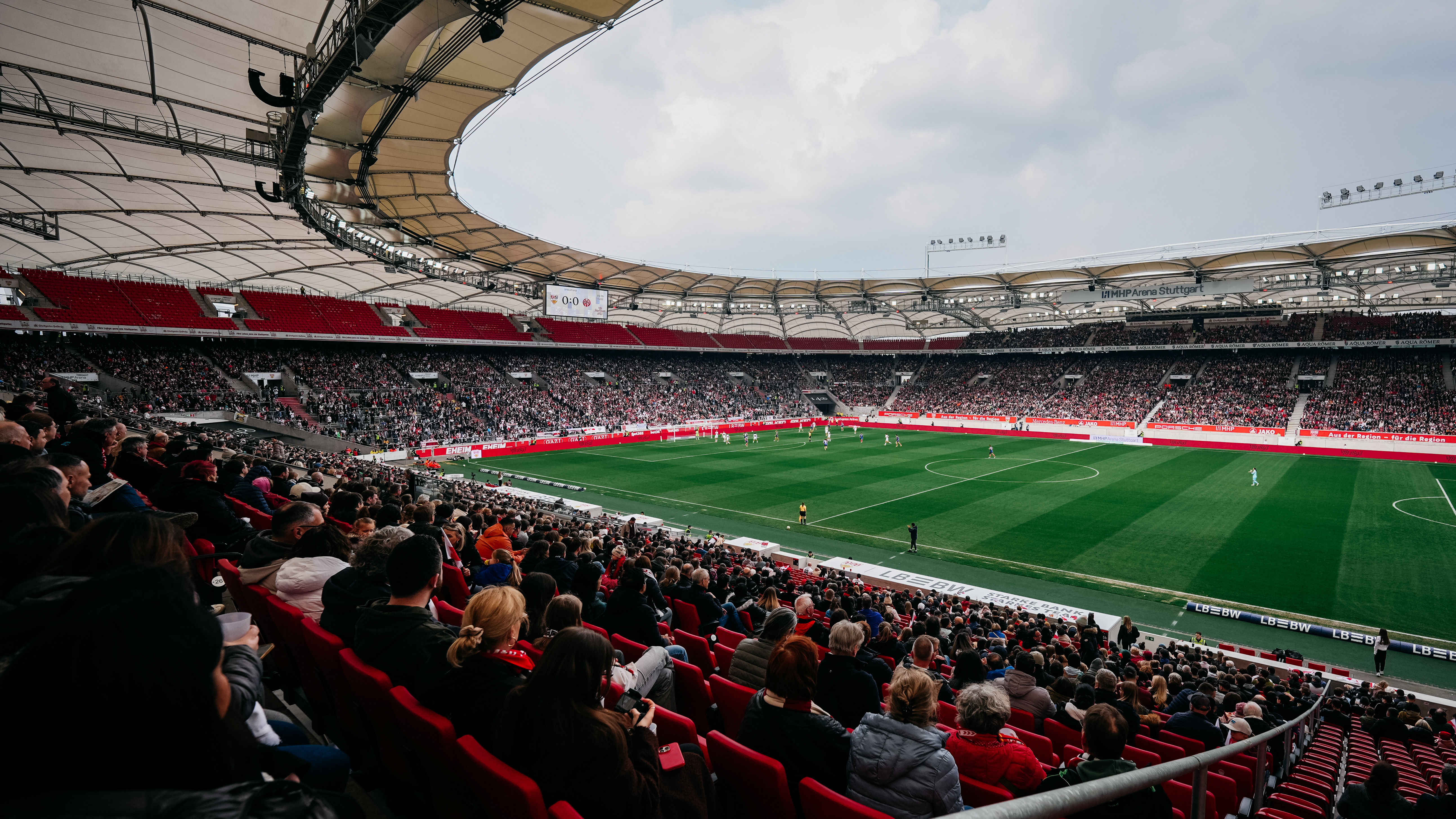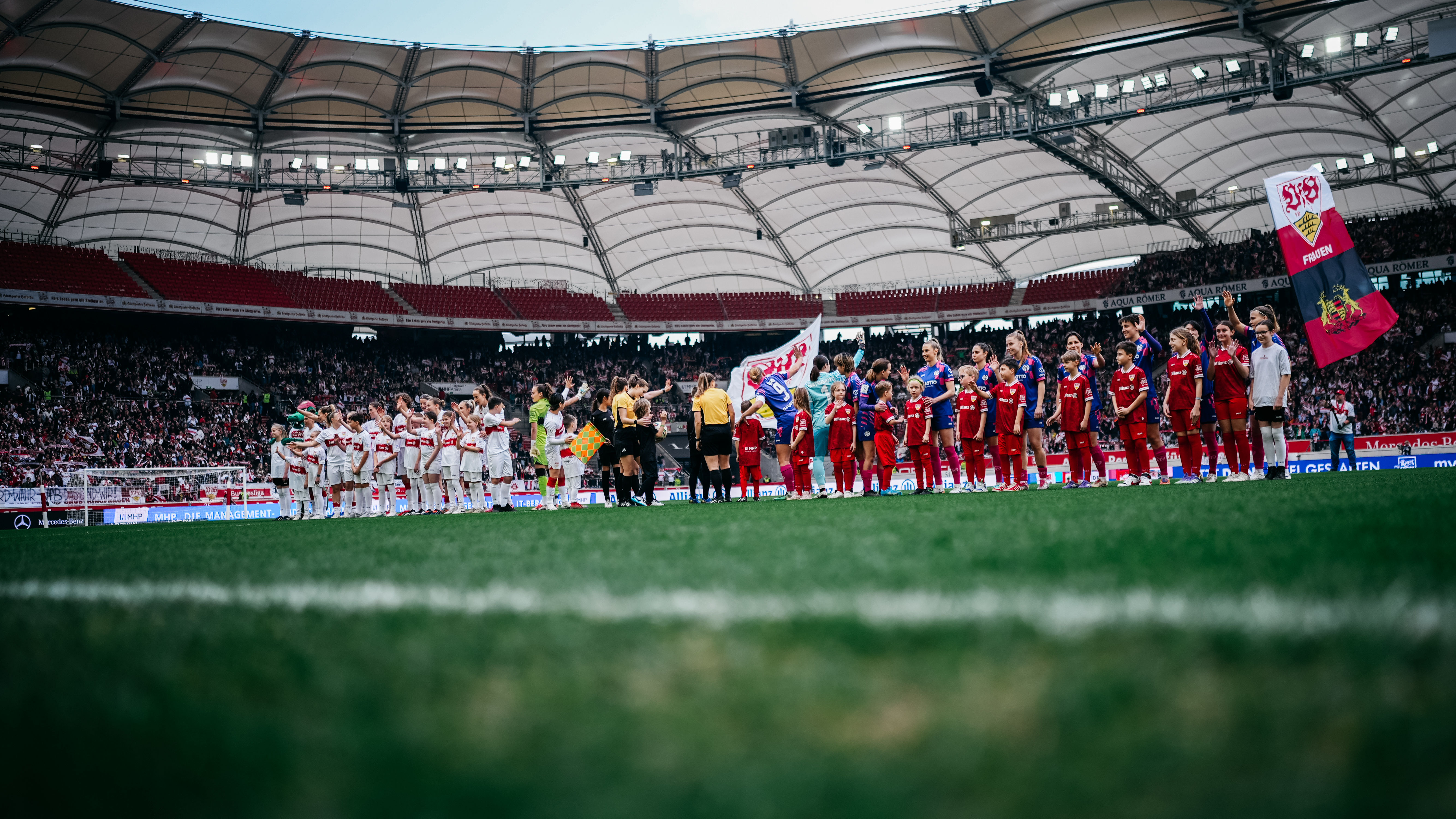 Premiere in der MHP Arena: Erstmals seit ihrer Gründung liefen die VfB Frauen am Samstagnachmittag im größten Stadion Baden-Württembergs auf. Cheftrainer Heiko Gerber nahm drei Startelf-Wechsel im Vergleich zum 3:2-Auswärtssieg in Ingolstadt am vergangenen Wochenende vor. Kiara Beck, die zuletzt aufgrund einer Rotsperre gefehlt hatte, kehrte anstelle von Eve Boettcher ins VfB-Tor zurück, außerdem rückten Reena Wichmann für Julia Glaser sowie Rosa Rückert für Daphina Rezepi ins erste Aufgebot.