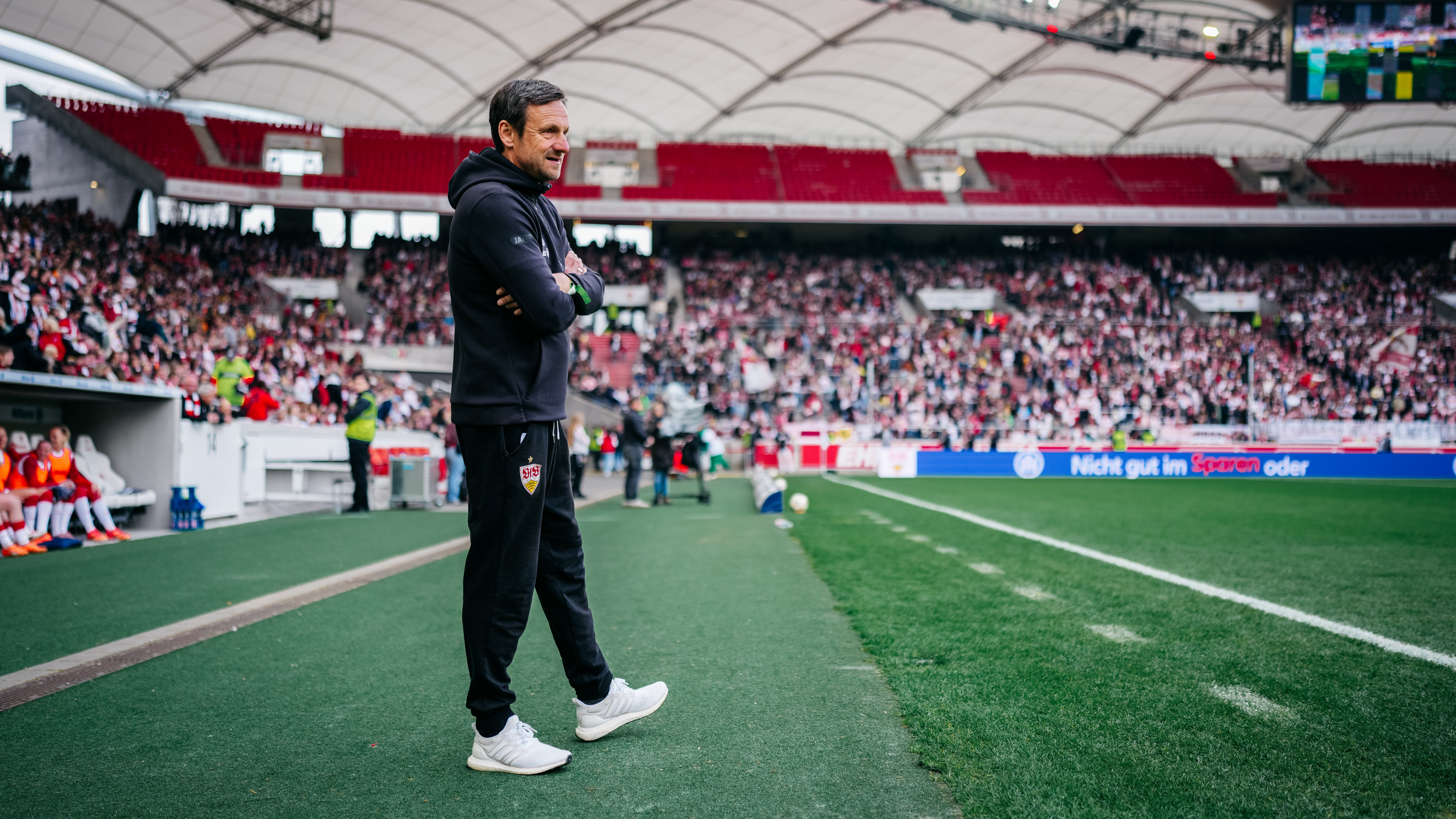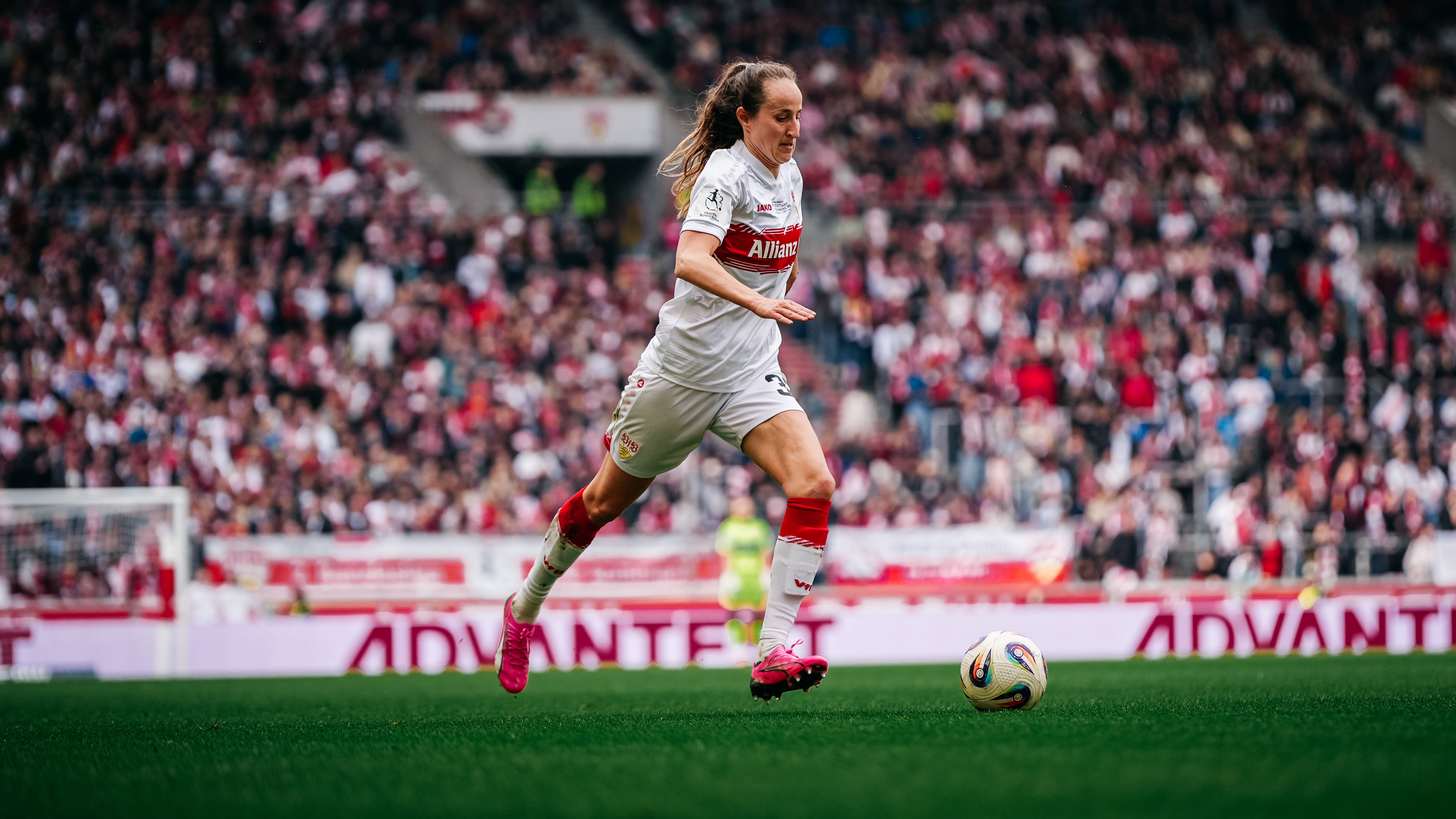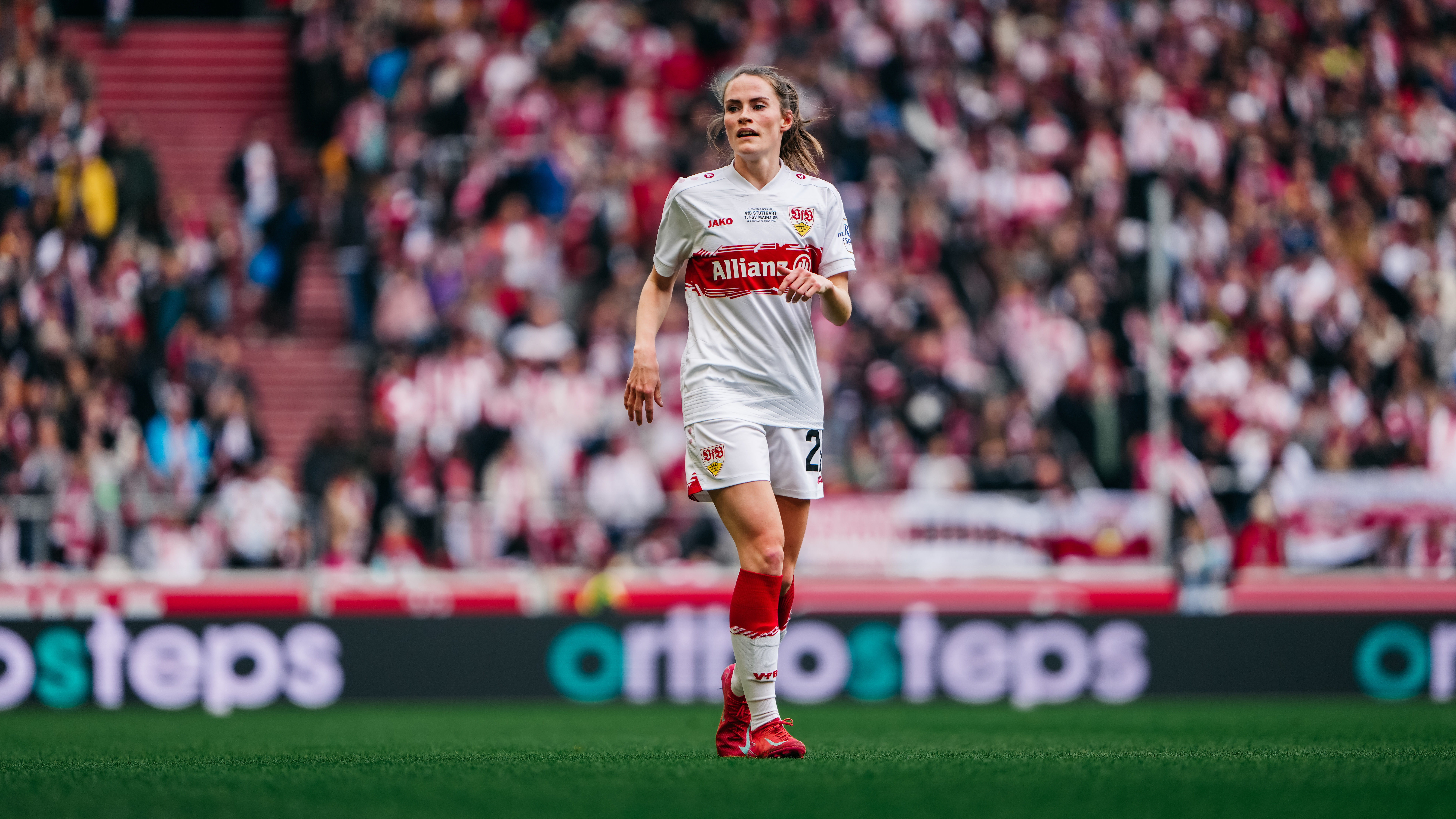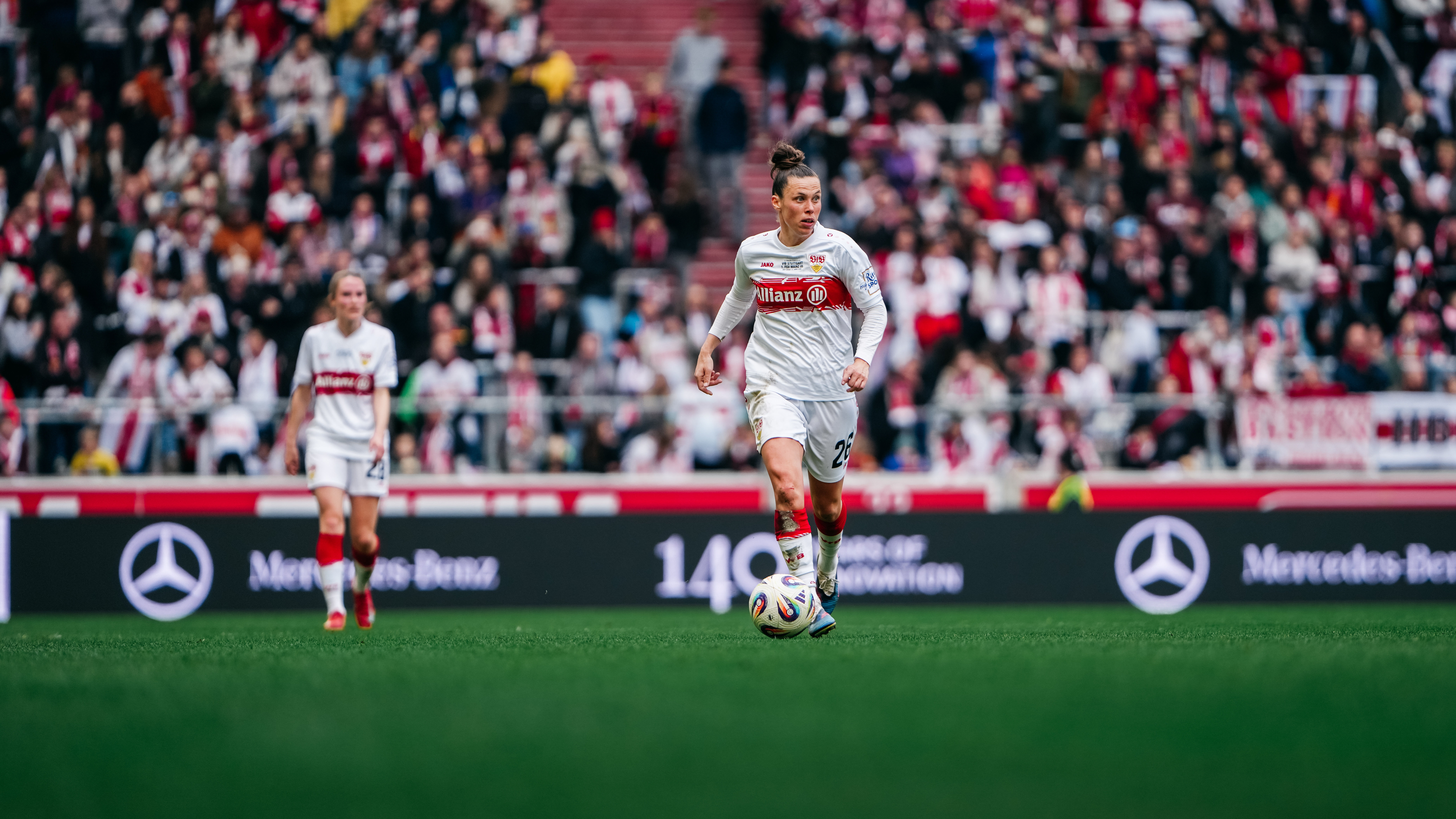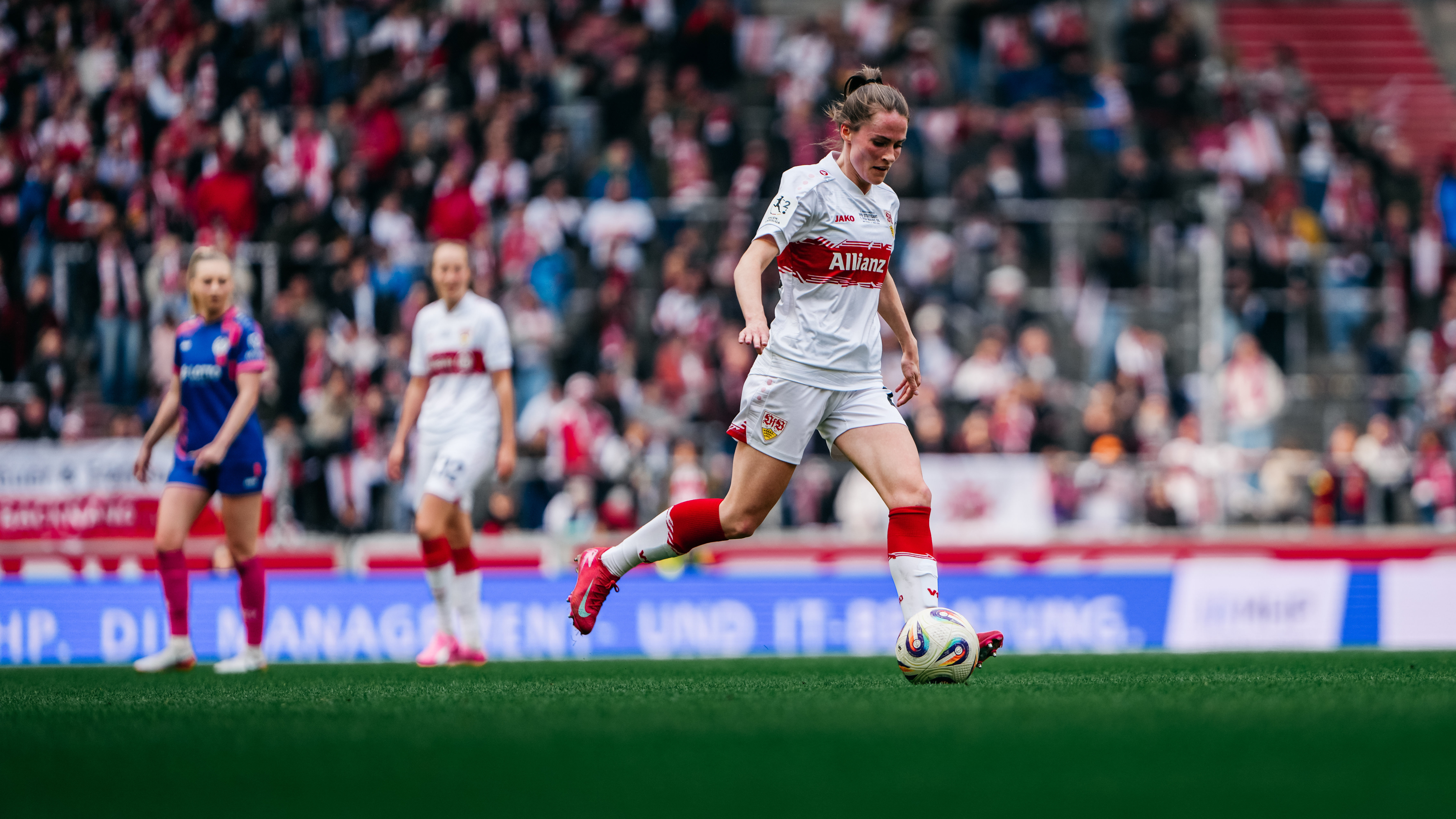 Premiere in der MHP Arena: Erstmals seit ihrer Gründung liefen die VfB Frauen am Samstagnachmittag im größten Stadion Baden-Württembergs auf. Cheftrainer Heiko Gerber nahm drei Startelf-Wechsel im Vergleich zum 3:2-Auswärtssieg in Ingolstadt am vergangenen Wochenende vor. Kiara Beck, die zuletzt aufgrund einer Rotsperre gefehlt hatte, kehrte anstelle von Eve Boettcher ins VfB-Tor zurück, außerdem rückten Reena Wichmann für Julia Glaser sowie Rosa Rückert für Daphina Rezepi ins erste Aufgebot.