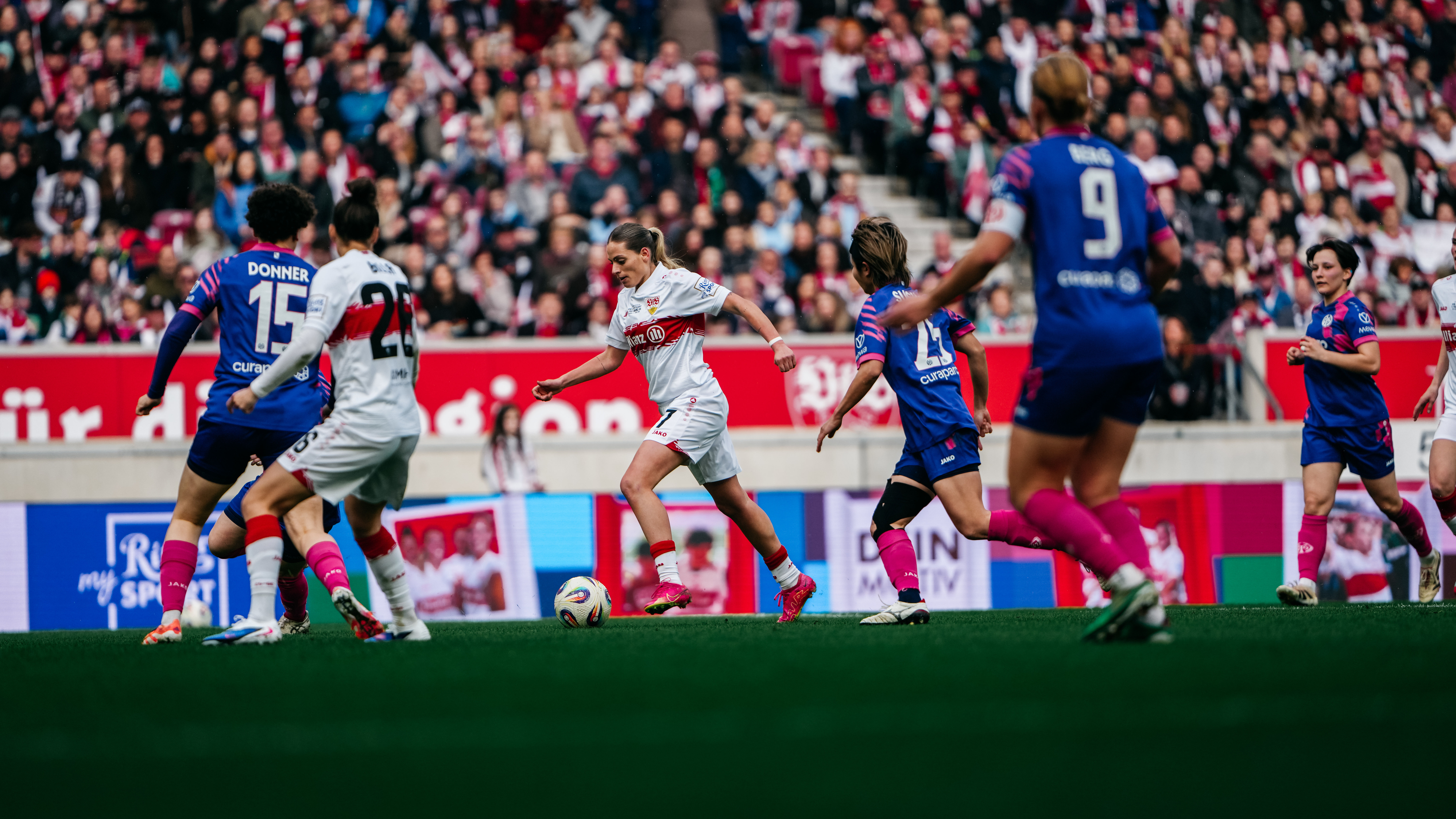Dafina Redzepi: „Es war ein großartiges Gefühl und ein Traum, heute in der MHP Arena aufzulaufen. Es war mein erstes Spiel vor so vielen Zuschauern – unglaublich, wie viele uns angefeuert haben. Wir sind mit einem Plan ins Spiel, aber es war schwierig. Aber alle haben sich reingehauen. Natürlich freue ich mich über mein Tor und bin auch ein bisschen stolz darauf, vor dieser besonderen Kulisse. Schade, dass es am Ende nicht gereicht hat.“