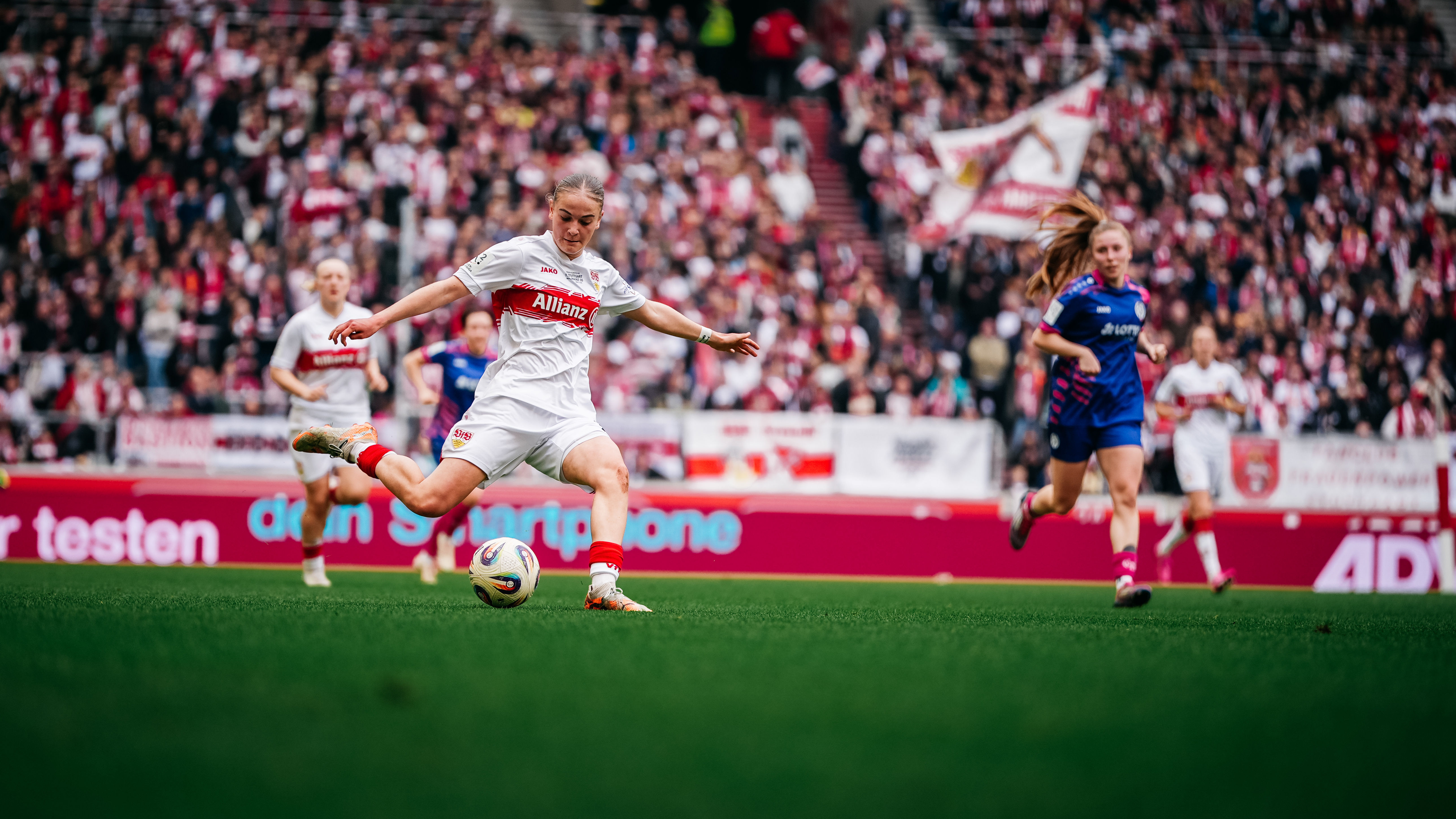 Nach dem Highlightspiel in der MHP Arena folgen für die VfB Frauen zwei Auswärtsspiele. Am Sonntag, den 29. März, gastiert der Club aus Cannstatt beim 1. FFC Turbine Potsdam. Spielbeginn im Karl-Liebknecht-Stadion in Potsdam ist um 14 Uhr. Am Sonntag, den 5. April, spielen die VfB Frauen gegen den VfR Warbeyen. Anpfiff in Kleve ist ebenfalls um 14 Uhr.