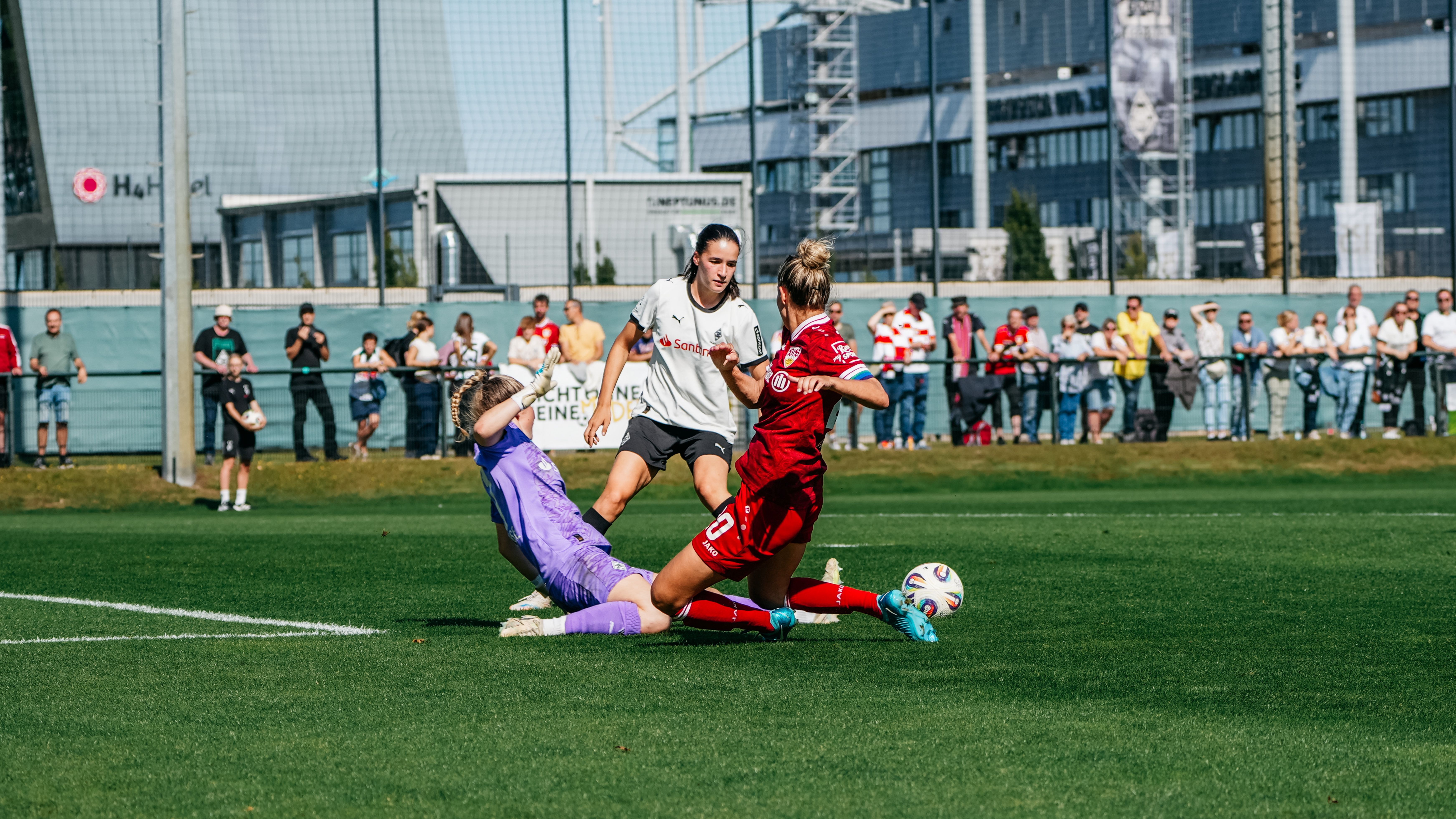 Fabienne Dongus: „Mit den ersten 60 Minuten können wir zufrieden sein. In der ersten Halbzeit haben wir dominiert. Vor allem im Vergleich zur vergangenen Partie gegen Andernach sind wir mit unserem Spiel mit dem Ball heute deutlich zufriedener. Wir hätten das zweite Tor machen und den Sack zumachen müssen, das haben wir leider verpasst. In der zweiten Hälfte hätten wir mehr Spielkontrolle gebraucht - stattdessen zeigten wir zu wenig Aktivität und spielten zu viele lange Bälle. Ich bin jedoch guten Mutes. Auch wenn das Ergebnis am Ende etwas enttäuschend ist, kann ich mit dem Unentschieden heute deutlich besser leben als letzte Woche.“