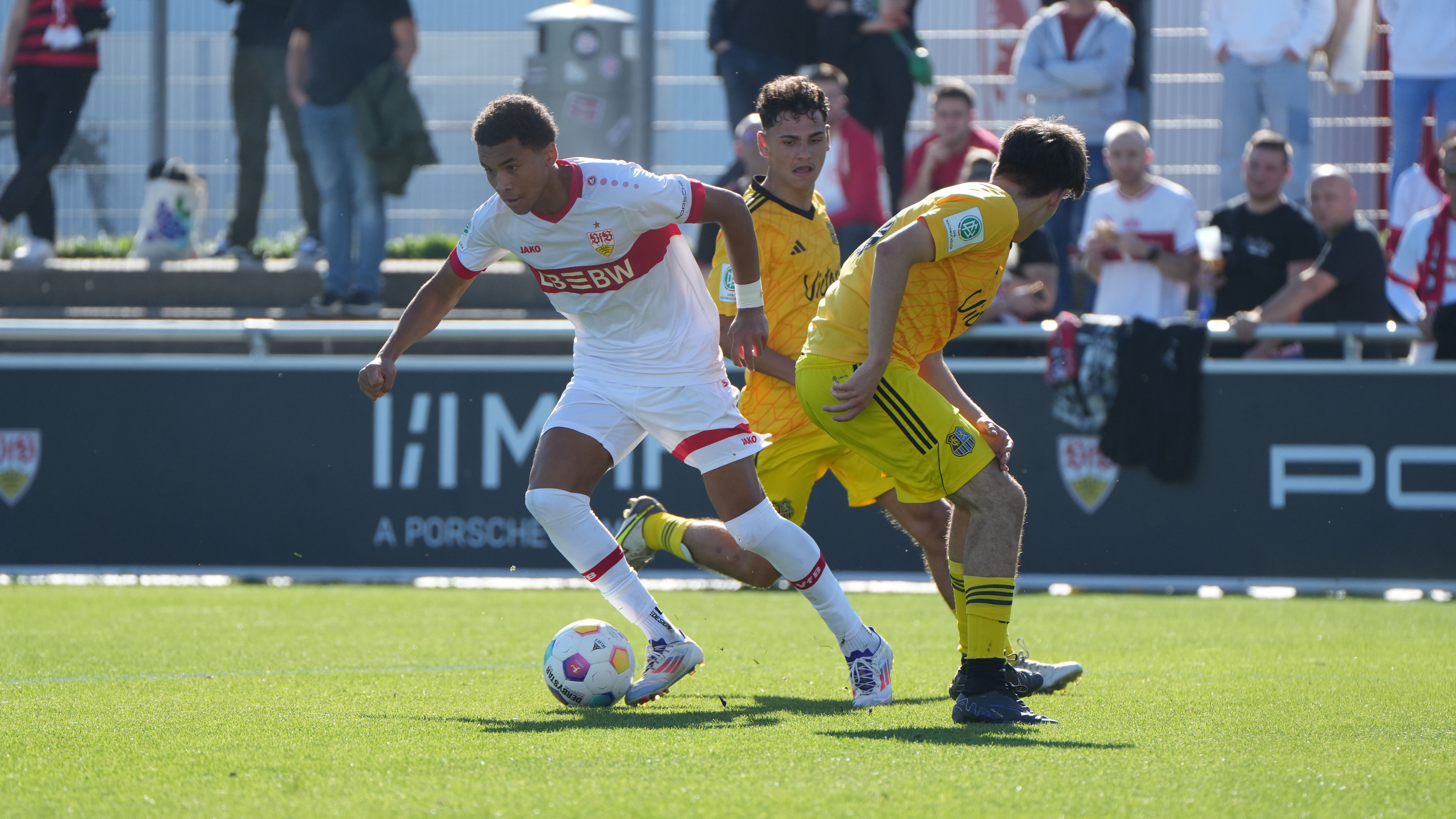 „Es hat phasenweise bei uns geruckelt, man hat gemerkt, dass wir viel getauscht haben und nicht alle Spieler im Rhythmus sind. Und wenn es dann auch noch so blöd läuft, dass der Gegner zweimal vors Tor kommt und führt, ist es kurz schwierig. Wir haben uns dann aber bis zur Halbzeit noch ganz ordentlich aus der Affäre gezogen, auch wenn es keine Glanzleistung war. In der zweiten Halbzeit haben wir es kontrolliert, aber ohne Freude und Spaß zu entfachen, was ich bemängele. Es wäre mehr möglich gewesen, das haben wir ein bisschen verpasst“, sagte U19-Trainer Nico Willig nach dem 6:2-Erfolg seiner Mannschaft gegen den 1. FC Saarbrücken. In der ersten Hälfte brachte Tuncay Durna (4. Minute) den VfB in Führung, die Gäste aus dem Saarland drehten den Rückstand durch zwei Tore aber postwendend in eine 2:1-Führung (9.). Mathaios Tsigkas gelang der Ausgleich (31.) und Tuncay Durna traf noch vor der Halbzeitpause zum 4:2 (33. und 45.). In einem einseitigen zweiten Durchgang sorgte ein Eigentor (75.) und der Treffer von Kenny Freßle (82.) für ein standesgemäßes 6:2 gegen das Tabellenschlusslicht.