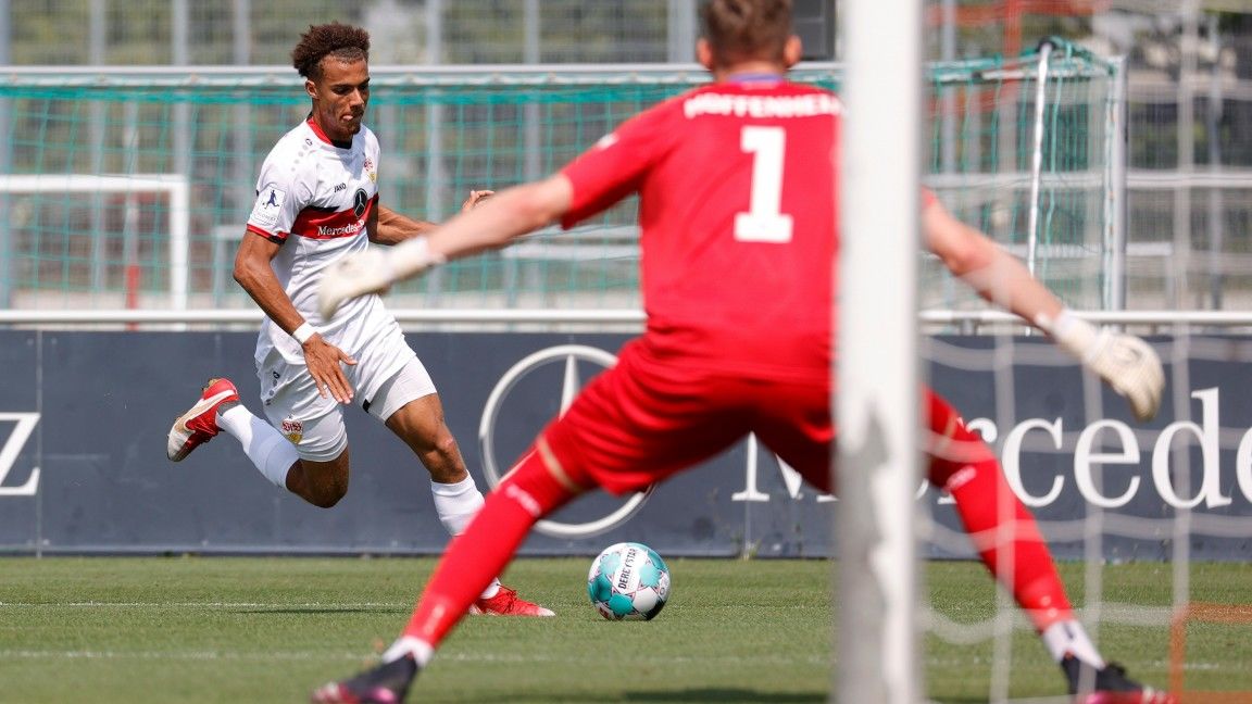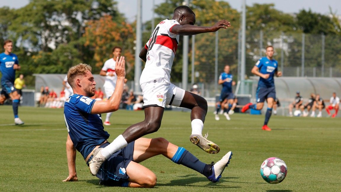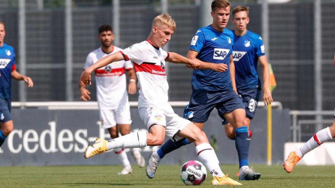 Einen denkbar ungünstigen Start in die Partie zwischen den beiden Zweitvertretungen erwischte der VfB. Bereits in der zweiten Minute gingen die Gäste aus Hoffenheim mit 1:0 in Führung. Diese hatte allerdings nur vier Minuten Bestand, dann köpfte Dominik Nothnagel nach einem Eckball zum Ausgleich ein. Beide Mannschaften hielten das Tempo hoch und Matej Maglica klärte einen Schuss noch vor der Linie (10. Minute). Auf der Gegenseite strich ein Kopfball von Luca Bazzoli nur knapp am Tor vorbei (15.). Mit dem nächsten nennenswerten Angriff ging die TSG erneut in Führung – Nick Proschwitz traf zum 1:2 (19.). Danach verflachte die Begegnung etwas, Torraumszenen blieben Mangelware. Bis zur 40. Minute, da setzte sich Falko Michel auf der rechten Seite bis zur Grundlinie durch, passte in die Mitte, doch die Direktabnahme von Alou Kuol aus zwölf Metern ging über das Tor.