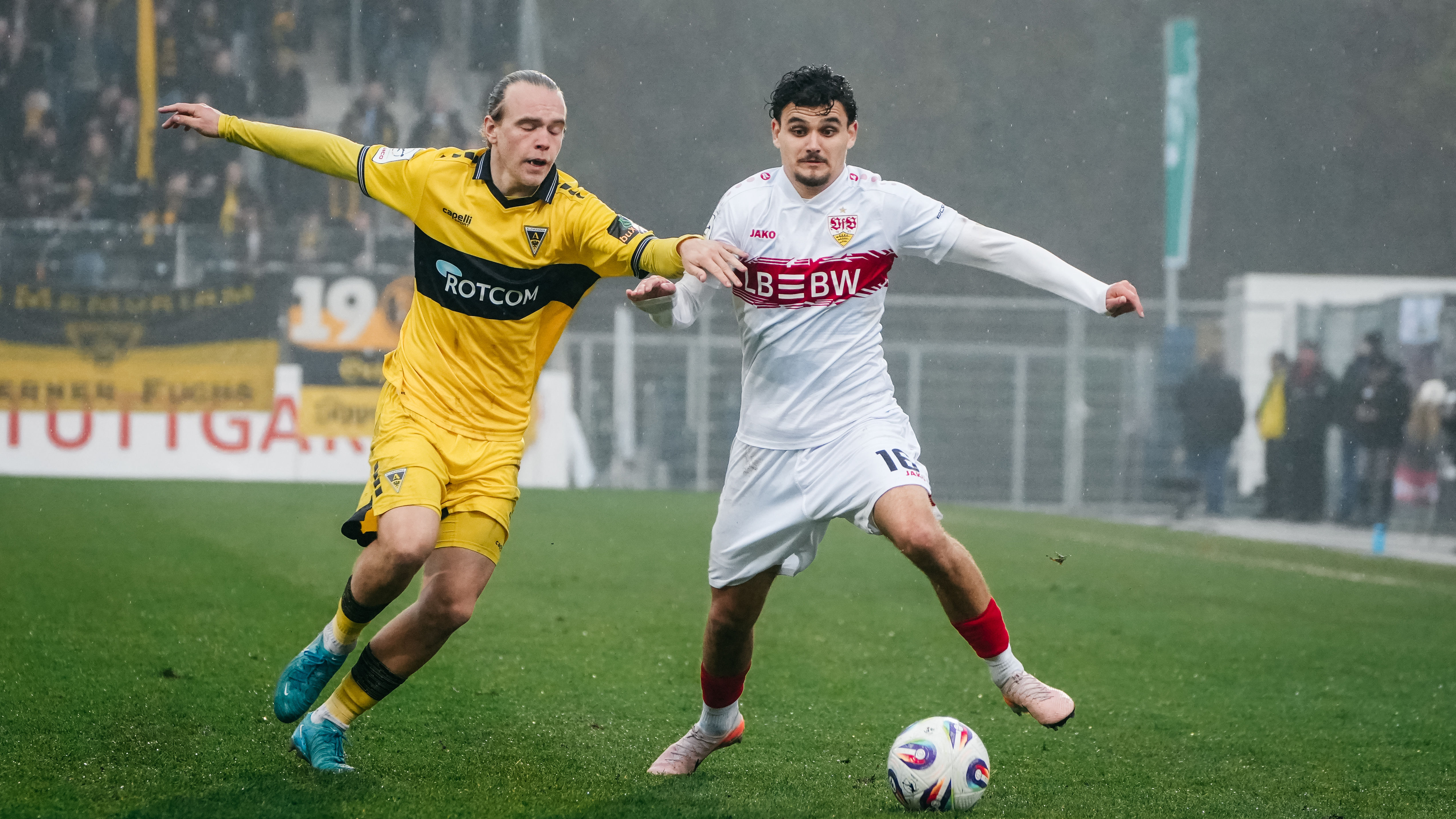 Vor 2.000 Zuschauern in der WIRmachenDRUCK Arena in Aspach feierten zwei VfB-Talente ihr Startelf-Debüt in der 3. Liga: Julian Lüers und U19-Kapitän Yanik Spalt.