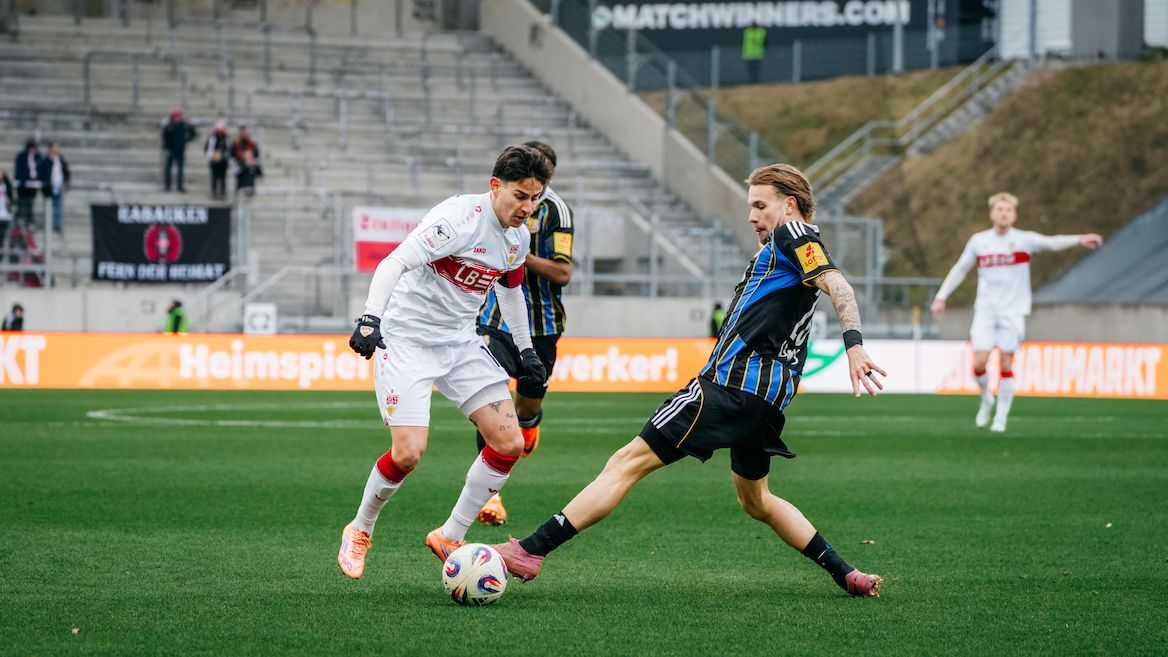 U19-Flügelspieler Antonijo Janjic feierte beim Gastspiel beim 1. FC Saarbrücken nicht nur sein U21-Debüt, sondern stand dabei direkt in der Startelf. Vor 10.900 Zuschauern im Ludwigsparkstadion erwischte der VfB den besseren Start, hatte ein Plus an Spielanteilen, gewann mehr Zweikämpfe und kam immer wieder ins Angriffsdrittel. Allerdings kamen in der ersten Hälfte zu selten klare Abschlüsse dabei heraus. In Minute 14 konnten die Jungs mit dem Brustring kontern, die Ablage von Nicolas Sessa ins Zentrum geriet aber zu kurz und machte eine gute Chance zunichte. Zwölf Minuten später brach Mansour Ouro-Tagba über links durch, brachte den Ball aus spitzem Winkel allerdings nicht an FCS-Keeper Menzel vorbei ins Tor. Gegen Ende der ersten Hälfte wurden dann die Saarbrücker besser. In Minute 32 musste VfB-Keeper Florian Hellstern mit einer Parade gegen Rizzuto erstmals eingreifen, in Minute 41 fischte er eine abgerutschte Flanke, die bereits Richtung Winkel segelte, gerade noch von der Linie. In der Nachspielzeit der ersten Hälfte war er allerdings machtlos, als Rodney Elongo-Yombo das 1:0 für den 1. FCS erzielte (siehe: Die Tore).