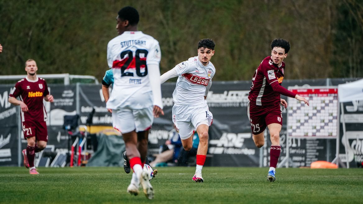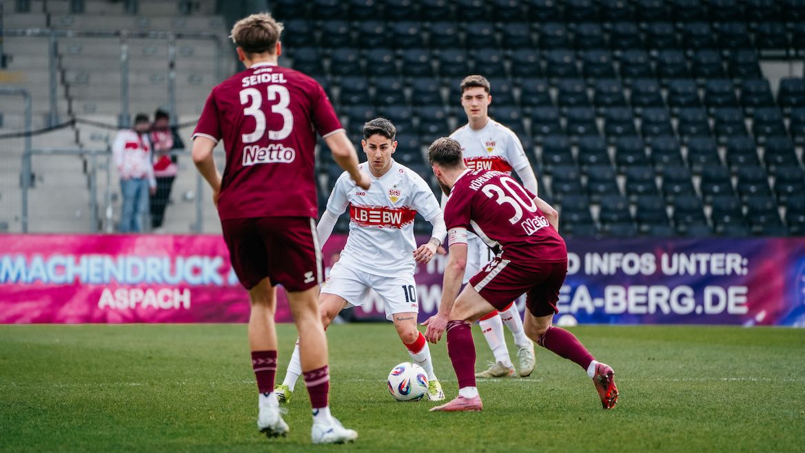 Für Catovic ging es nach dem Tritt kurz vor der Pause dann nicht mehr weiter. Er wurde in Durchgang zwei durch Yanik Spalt auf der Doppelsechs ersetzt. Den Gästen gehörte vor 1050 Zuschauer die erste Chance nach Wiederbeginn. Ex-VfB-Spieler Eric Hottmann prüfte Dominik Draband aus spitzem Winkel. Die Stuttgarter Antwort gab Noah Darwich nach 55 Minuten, als er von rechts gefährlich in Richtung zweitem Pfosten flankte, am Ende aber keinen Mitspieler fand. Wenig später war es abermals Darwich, der auf sich aufmerksam machte und auf Vorlage von Mansour Ouro-Tagba zu einem Abschluss kam (59.). Auf der Gegenseite entschärfte Dominik Draband einen Schuss von Noel Eichinger.