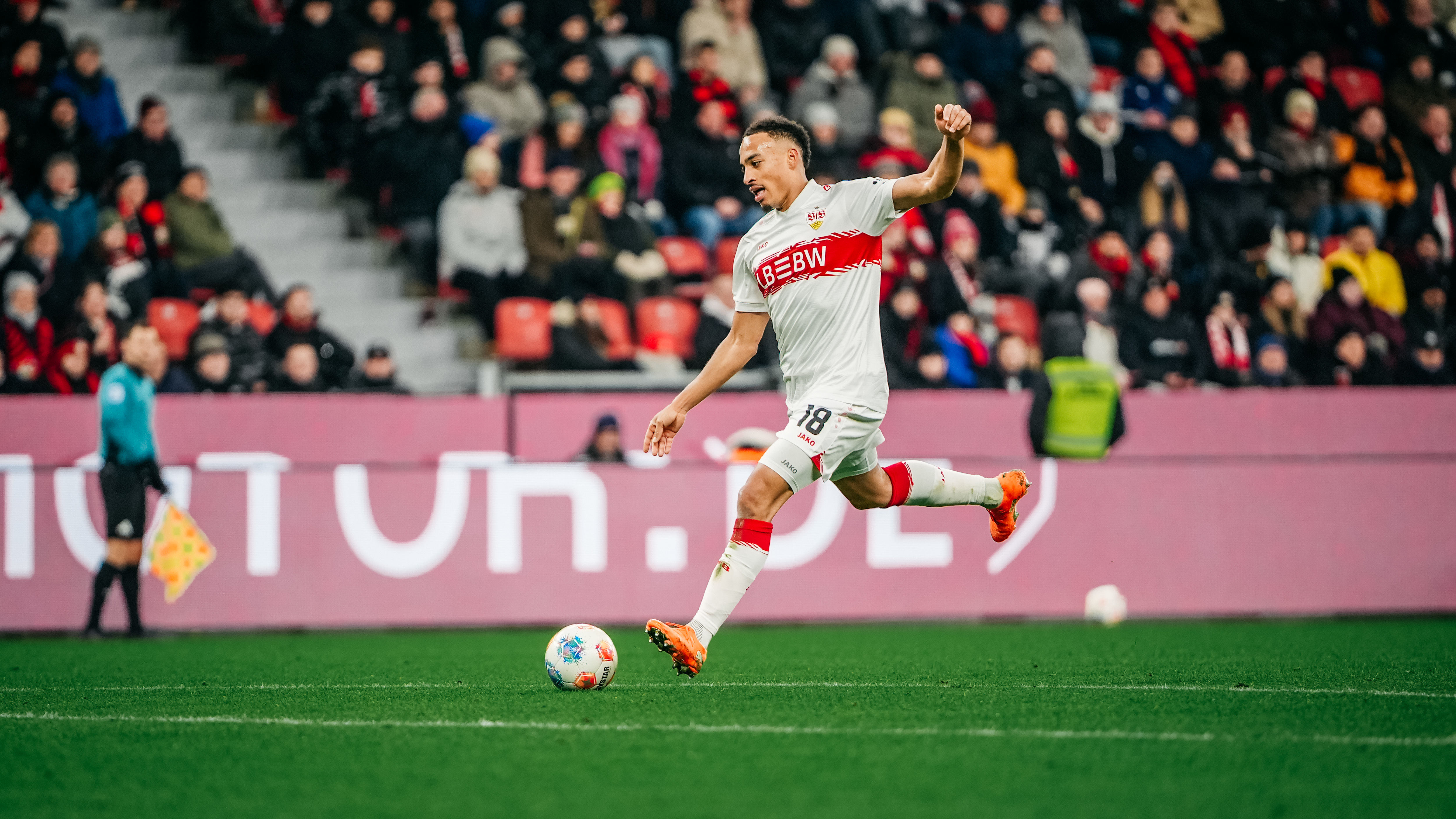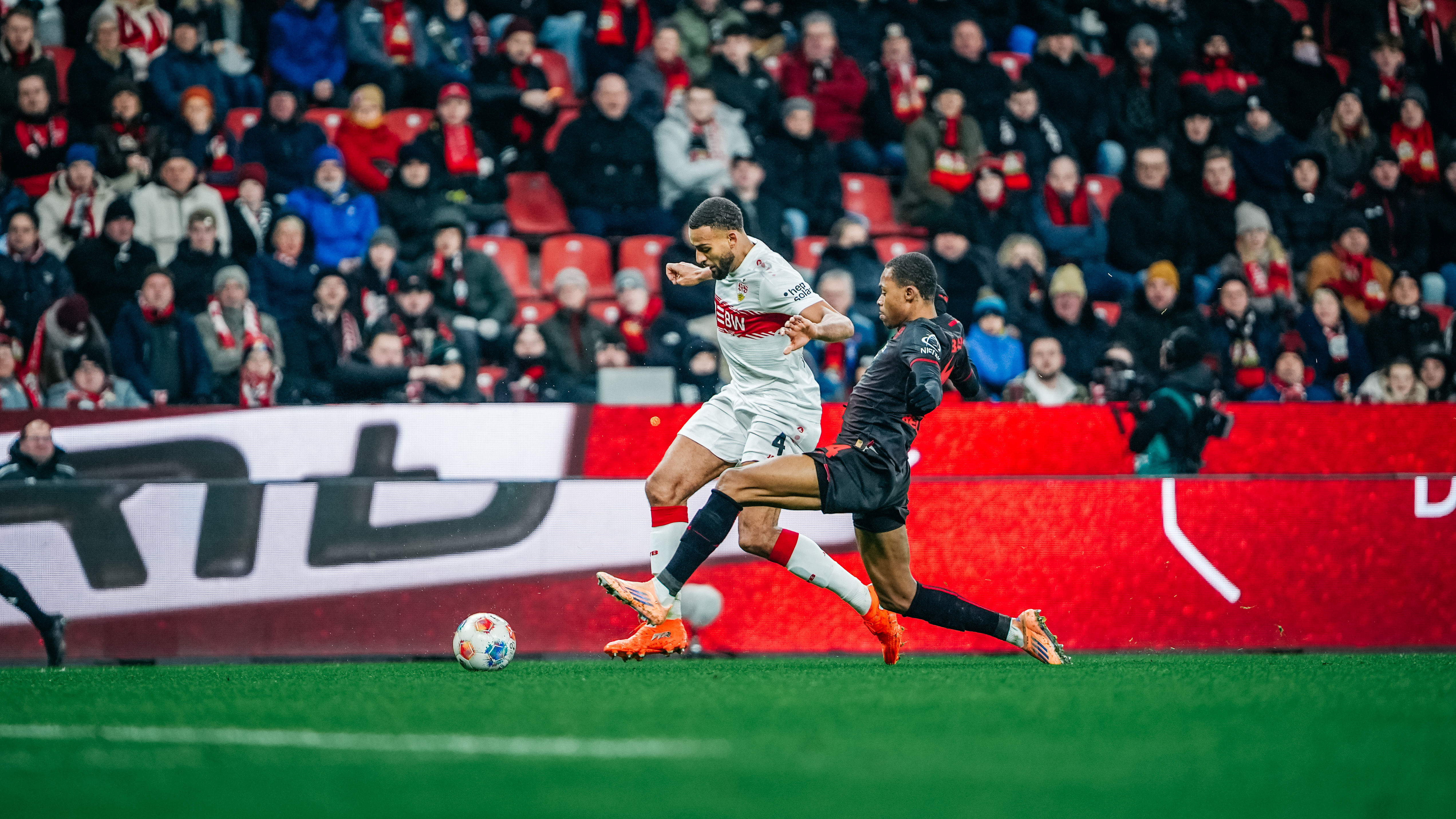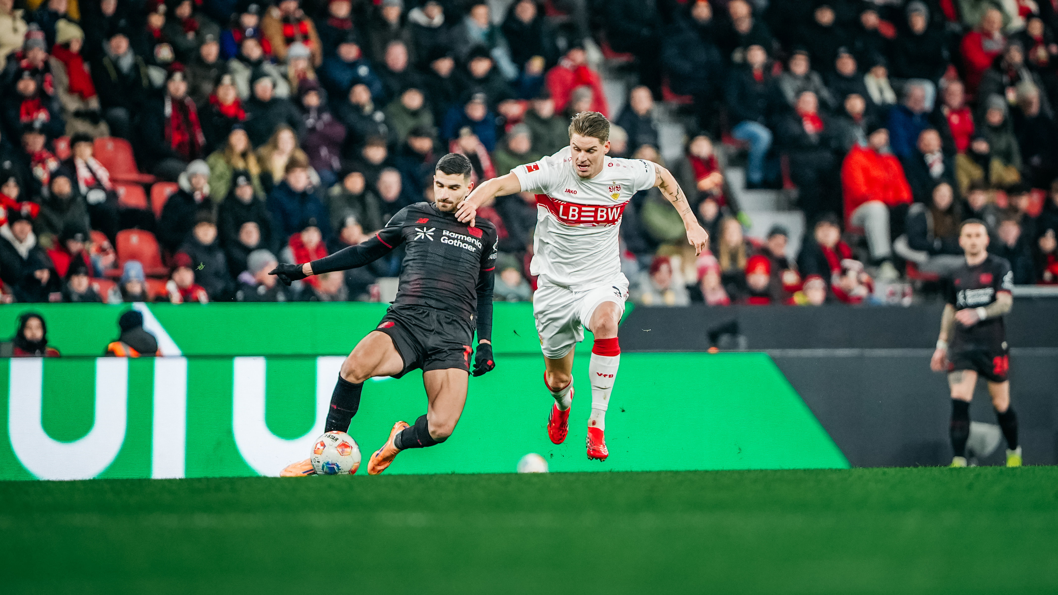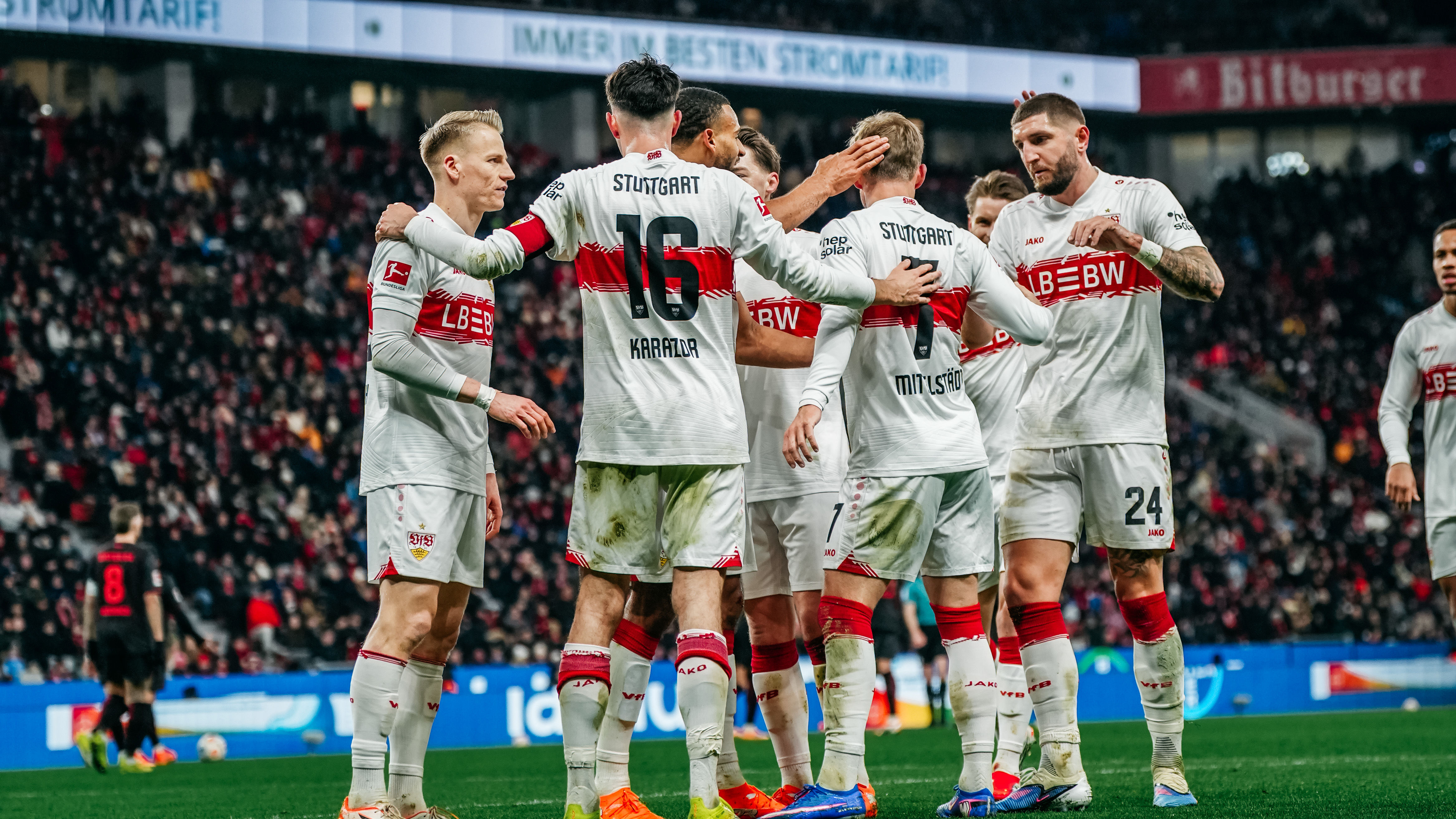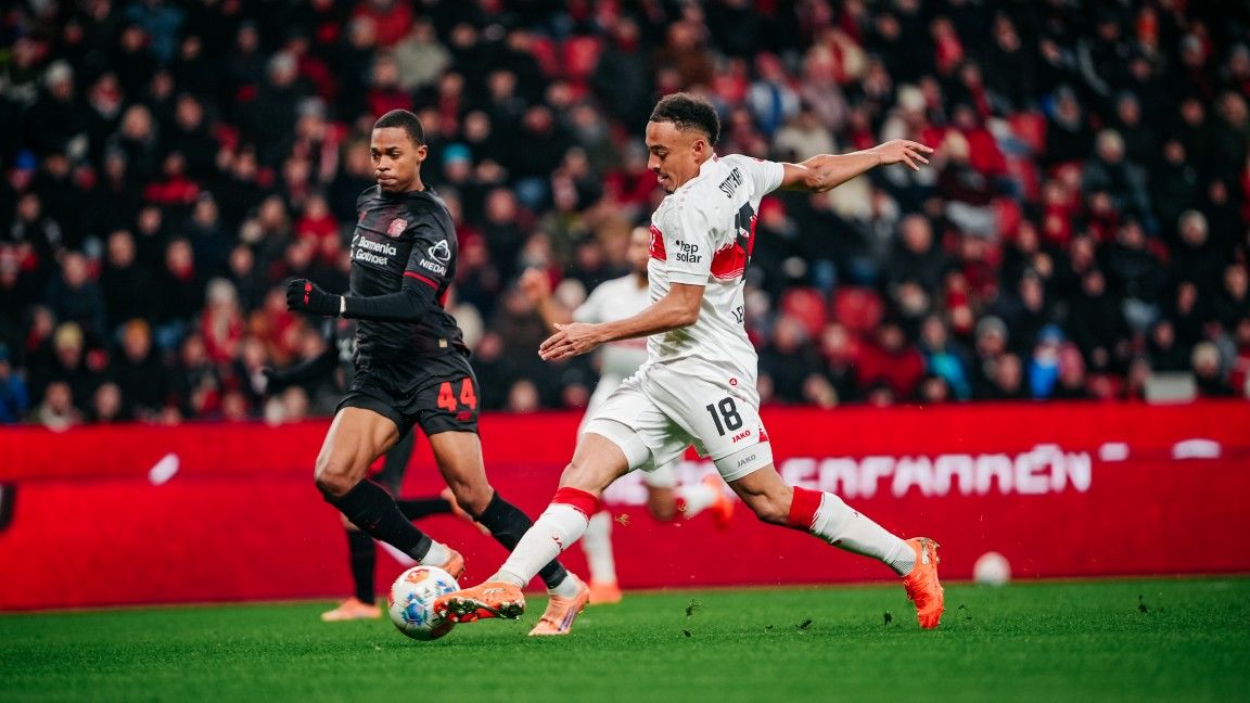 Exakt 60 Sekunden waren im Topspiel des 16. Bundesliga-Spieltags vergangen, ehe die Jungs aus Cannstatt ein erstes Ausrufezeichen setzten: Josha Vagnoman verwertete am zweiten Pfosten eine hohe Hereingabe von Chris Führich aus dem linken Halbfeld per Kopf und scheiterte aus wenigen Metern denkbar knapp an Leverkusens Torhüter Mark Flekken (1.). Nur sechs Minuten später belohnte sich der VfB für seinen engagierten Auftritt in der Frühphase des Spiels, als Jamie Leweling, der zum 100. Mal in einem Pflichtspiel für den VfB auf dem Platz stand, eine Umschaltaktion nach Vorarbeit von Deniz Undav zur Führung vollendete (7., siehe „die Tore“).