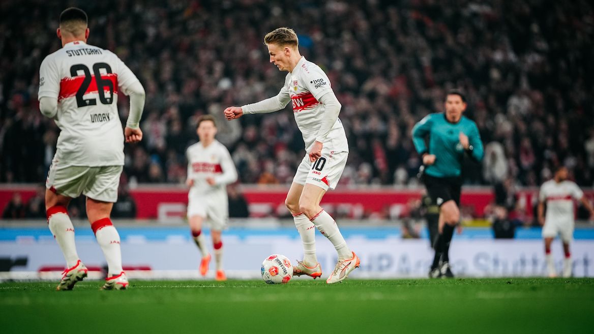 Fast hätte es vor der Halbzeit noch den Jubelschrei in der mit 59.500 Fans gefüllten MHP Arena gegeben, aber der stramme Schuss von Deniz Undav zappelte nur am Außennetz (38.). Pausenstand: 0:0, optische Vorteile für den VfB. Kurz nach Wiederanpfiff ereignete sich die bis dato größte Möglichkeit für das Team mit dem roten Brustring: Atakan Karazor spielte Deniz Undav frei – der Stürmer scheiterte am glänzend reagierenden Union-Torwart Frederik Rönnow (48.). Die weiß-roten Fans spürten, dass der VfB einerseits viel probierte und andererseits Geduld gefragt war. Das wurde nach knapp einer Stunde belohnt.