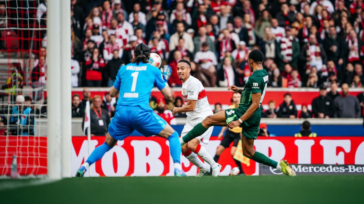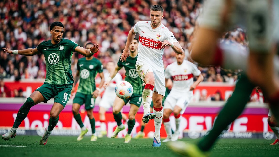 Zurück im Bundesliga-Alltag. Nach dem Achtelfinal-Einzug in der UEFA Europa League hat der VfB rasch den Fokus auf den nationalen Wettbewerb gerichtet. Mit dem VfL Wolfsburg gastierte am Sonntagnachmittag ein Team in der MHP Arena, das zweifelsfrei über mehr Qualität verfügt, als es deren Form ausdrückt. „Wir wollen mit den Fans im Rücken von Beginn an dominant und spielfreudig auftreten“, verlangte Sebastian Hoeneß daher vor Anpfiff von seiner Mannschaft. Im Vergleich zum Europacup-Spiel am Donnerstagabend gegen den Celtic FC (0:1) veränderte der Chefcoach seine Startelf auf fünf Positionen. Ramon Hendriks, Angelo Stiller, Chris Führich, Bilal El Khannouss und Ermedin Demirovic begannen – Maximilian Mittelstädt, Chema, Badredine Bouanani und Tiago Tomás nahmen zunächst auf der Bank Platz; Jeff Chabot (Rückenprobleme) und Josha Vagnoman (Oberschenkelprobleme) fehlten im Kader. Wem gehörte die erste Chance?