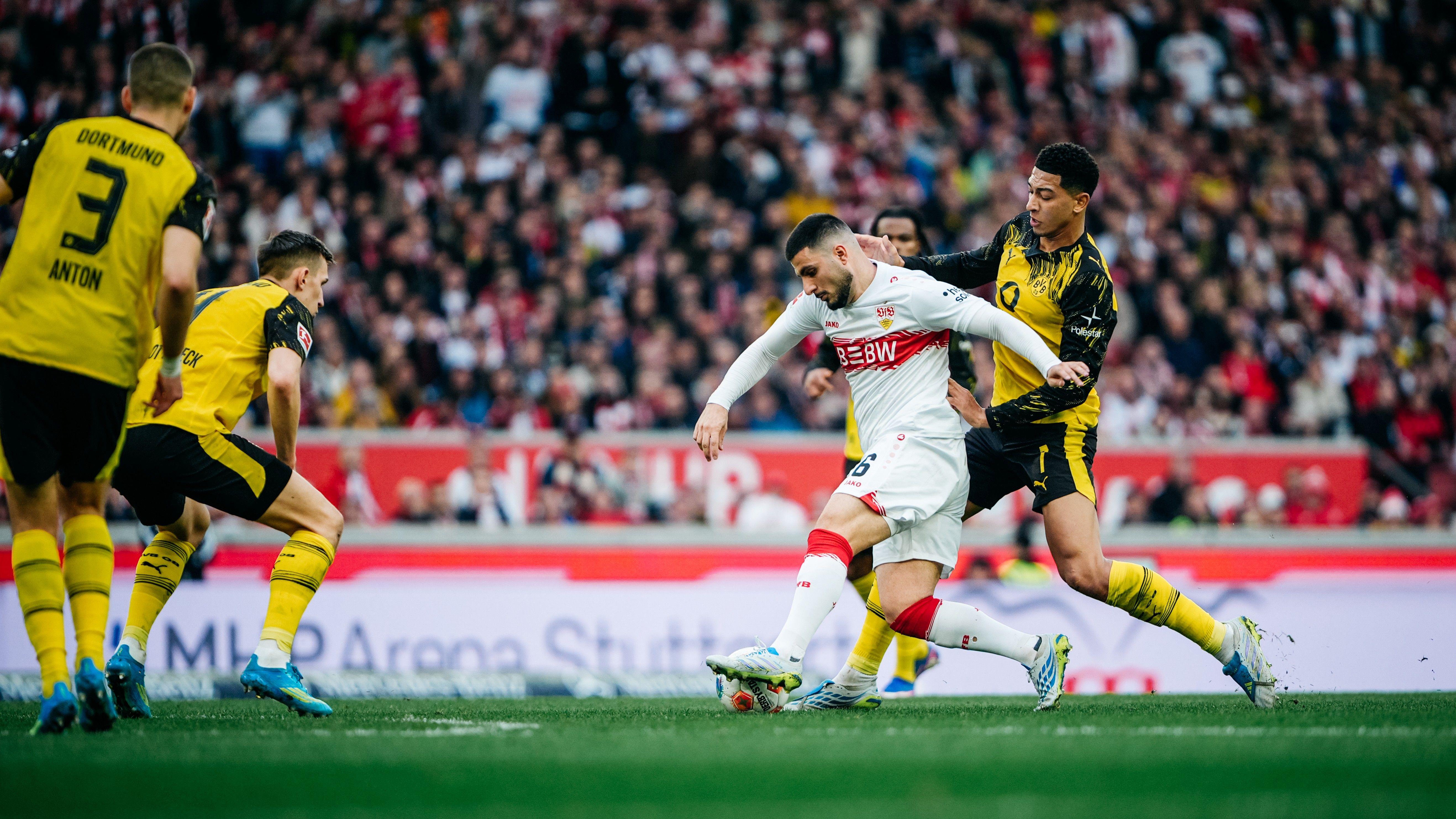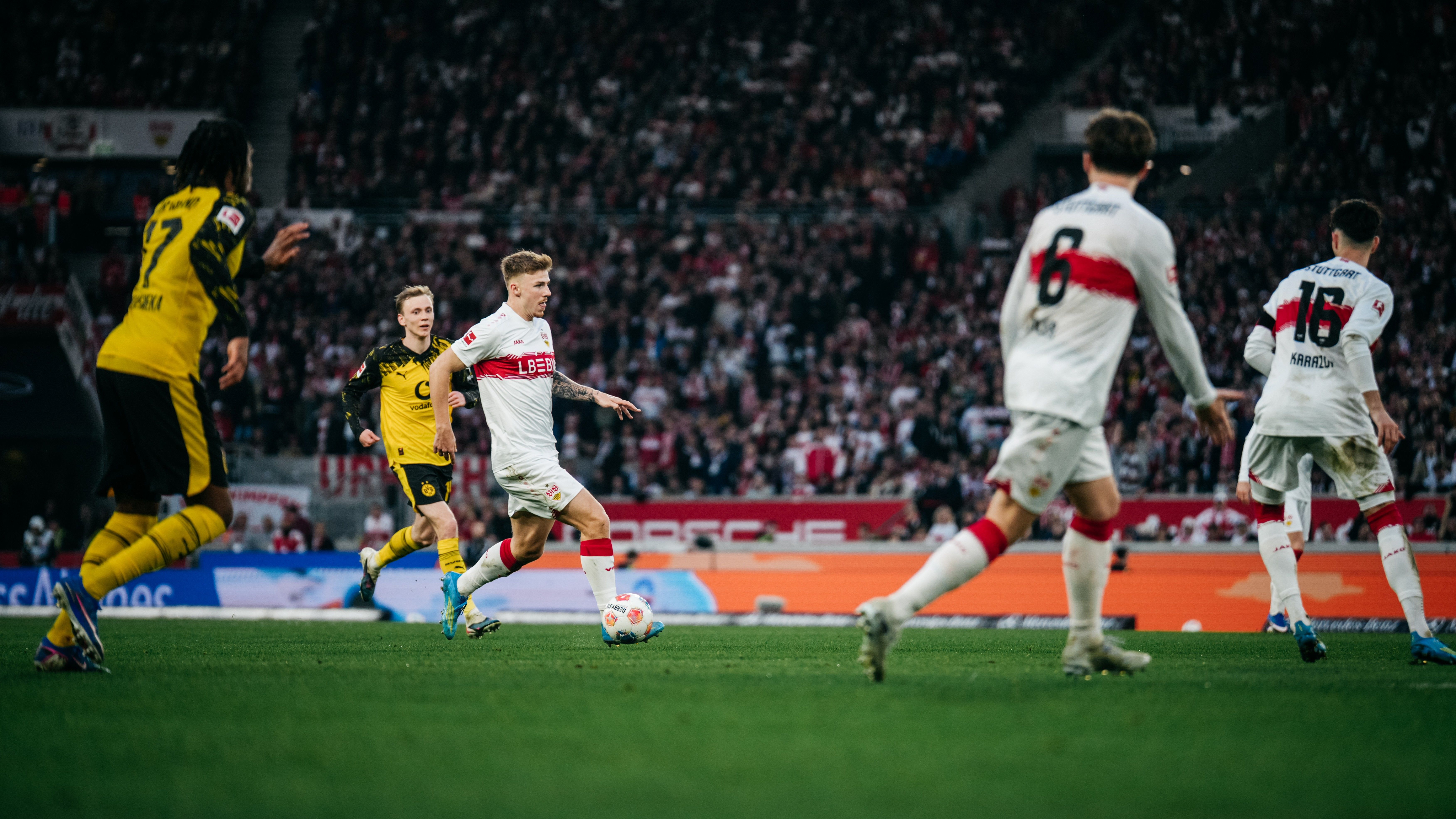 Für den VfB verbuchte Chris Führich einen weiteren Abschluss, der über das Tor ging (44.). Die Gäste vom BVB kamen lediglich zu einem Torschuss in Hälfte eins. Dass es zur Halbzeitpause 0:0 stand, war schmeichelhaft für den Ligazweiten. Der zweite Abschnitt begann verhaltener, aber ebenso mit einem aktiveren VfB, der defensiv weiterhin wenig zuließ. Lorenz Assignon verzeichnete die erste Gelegenheit (56.). Der Partie war mit zunehmender Dauer anzumerken, dass beide Teams mehr und mehr auf den Sieg drangen. Das Spiel in der mit 60.000 Fans ausverkauften MHP Arena gestaltete sich offener. Was geschah in der Schlussphase?
