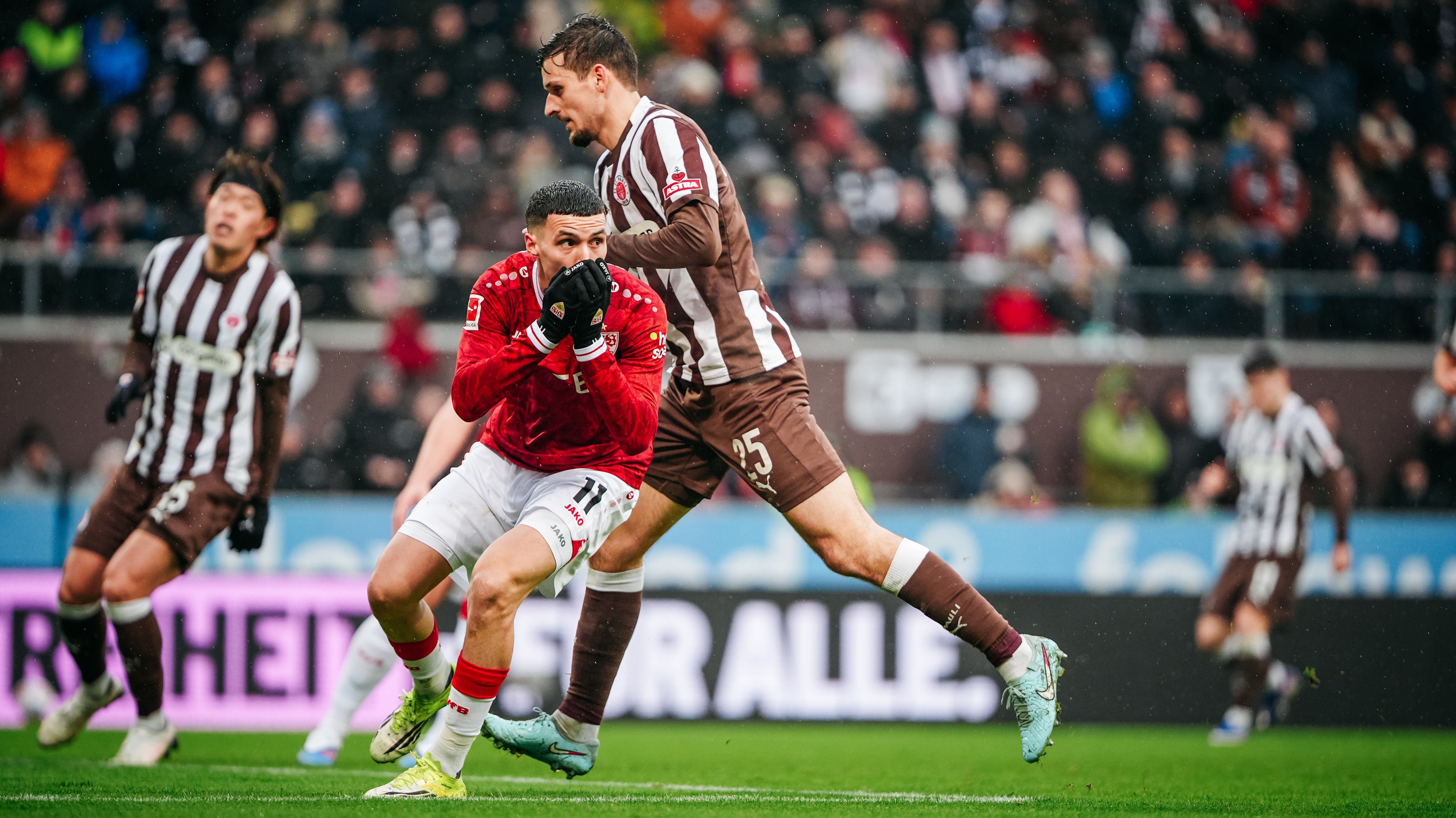 Chris Führich: „Wir hatten uns viel vorgenommen und sind mit großer Motivation in das Spiel gegangen, haben das jedoch teils nicht auf den Platz übertragen bekommen. St. Pauli hat sich hereingeworfen und gefightet. Die Elfmetersituation war unglücklich, die Bilder zeigen, dass null Absicht bei der Handbewegung dabei war, sondern ich den Ball mit dem Oberschenkel nach vorne mitnehmen möchte – umso bitterer, dass anschließend auf Strafstoß entschieden wurde. Wir haben nun eine volle Trainingswoche vor uns, in der wir Kraft tanken werden. Es ist klar, dass wir das nächste Spiel unbedingt wieder erfolgreich gestalten möchten.“